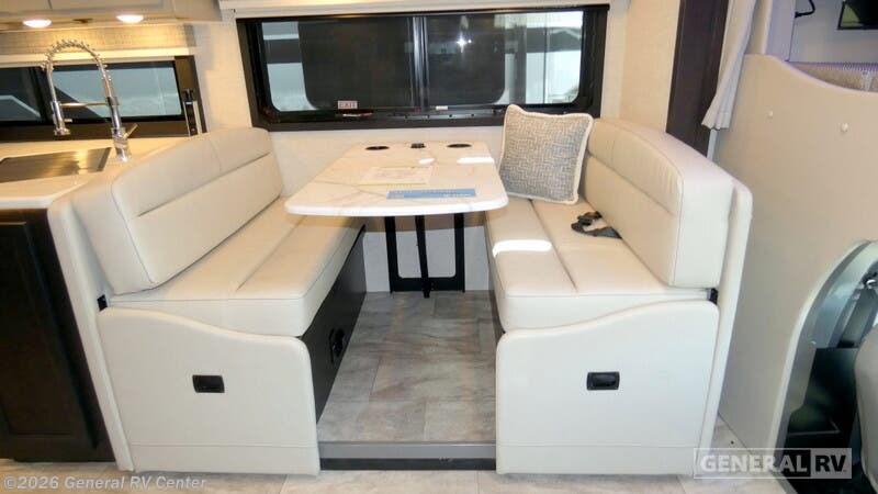 Thor Motor Coach Magnitude GRAND Super C diesel motorhome R36 highlights: Rear Bedroom Bunk Beds Full Bathroom Exterior TV 68” theater seating area The rear bedroom is a peaceful oasis, featuring a plush king bed, a spacious closet with a washer and dryer prep, a dresser, and a 32” Smart TV. You can accommodate the whole family with 26” x 72” bunk beds which also convert to a closet, in front, you will find a full bathroom with linen closet which ensures everyone stays fresh on the go. The kitchen is a gourmet's delight, boasting a residential refrigerator, a pantry perfect for keeping your stuff organized, a three-burner cooktop, microwave, and a 70” dream dinette ideal for grabbing meals with family and friends. Relax in the 68” theater seating area, while watching a movie in the 40” Smart TV. Additional sleeping space is available in the front bunk over the cab, plus you can spend entertaining yourself on the outside thanks to the 32” Smart TV on the exterior. The Magnitude GRAND Super C diesel motorhomes by Thor Motor Coach are built to last, featuring Vacu-bond laminated roofs and floors with block foam insulation for unparalleled durability and climate control which ensures a comfortable and quiet living space. Stay connected and entertained on the go with the innovative sync-enhanced voice recognition communication and entertainment system. With just the sound of your voice, you can control everything from navigation to music playlists. Setting up camp has never been easier, thanks to our automatic leveling jacks with a touchpad, simply press a button and let the system do the work for you. Inside, you'll enjoy incredible interior features like a spacious 84” interior ceiling height, perfect for comfortable living, solid countertops, designer headboard, bedspread, and pillow shams. Plus you can beat the heat with the dual 13,500 BTU roof air conditioners, providing superior cooling power to keep you comfortable in even the warmest climates. Explore our motorhome collection today and discover a new standard of luxury and adventure.