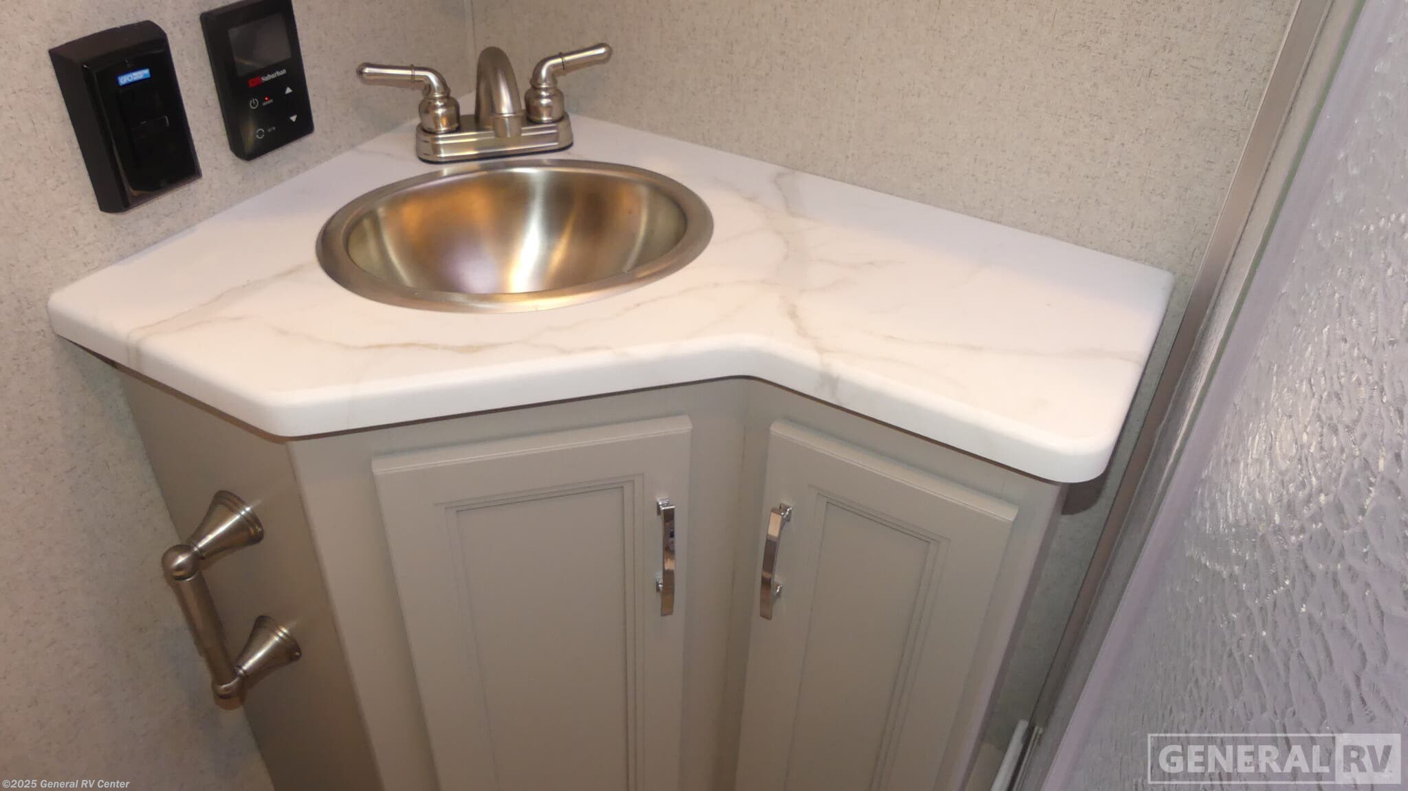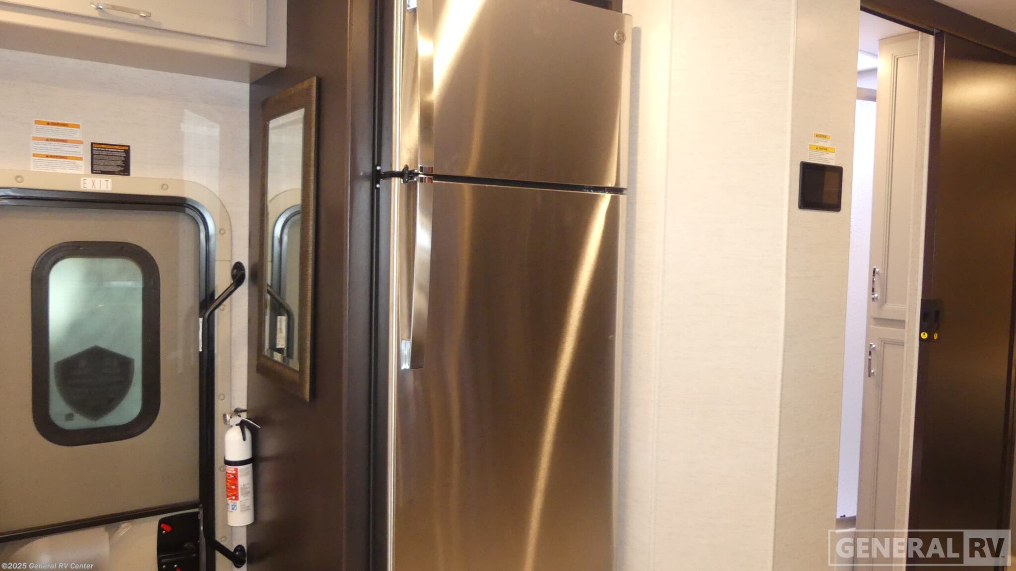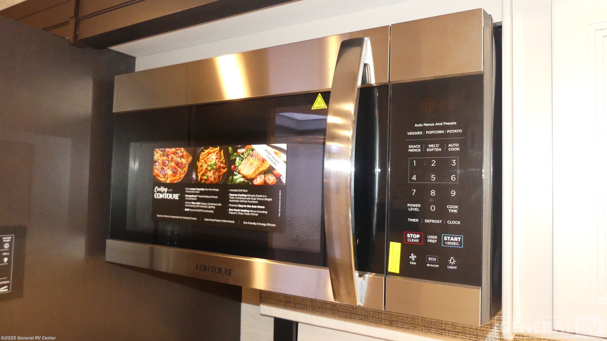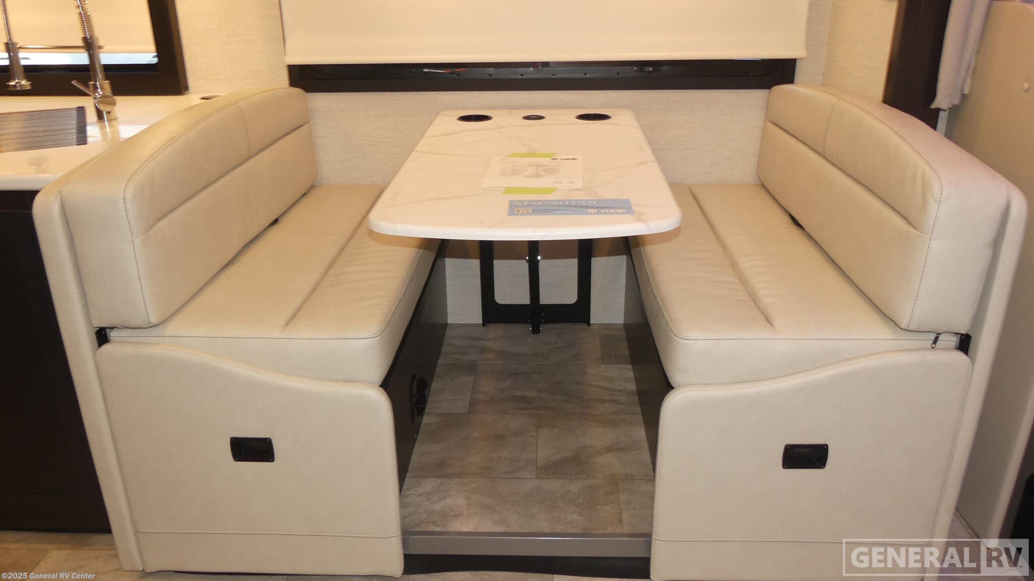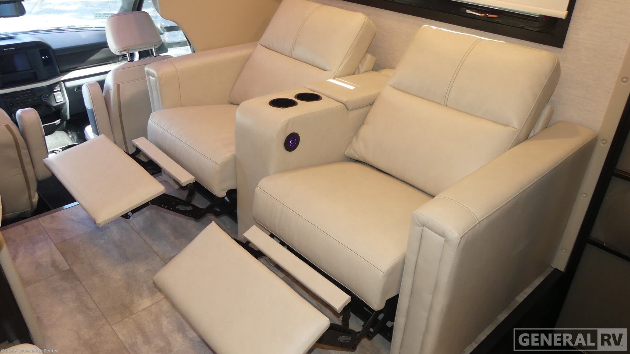 Thor Motor Coach Magnitude GRAND Super C diesel motorhome L35 highlights: Rear Bedroom Bed Over Bunk Full Bathroom Exterior TV This motorhome has everything you need to create unforgettable memories on the road. Retreat to the serene rear bedroom, featuring a plush queen bed, dual wardrobe beside the bed, and a 32” Smart TV. Conveniently located in the hallway are a closet with washer and dryer prep, and a pantry for storing all your essentials. In front of it, you'll find a spacious full bathroom with a linen closet, perfect for freshening up on the go. The kitchen boasts a residential refrigerator, three-burner cooktop, microwave, and 70” Dream Dinette. Relax and unwind in the 68” theater seating, while watching the 40” Smart TV located over the cab, plus, additional sleeping space is available in the 52” x 80” bunk over cab. And when you're ready to take the party outside, enjoy your favorite shows and movies on the exterior 32” Smart TV. The Magnitude GRAND Super C diesel motorhomes by Thor Motor Coach are built to last, featuring Vacu-bond laminated roofs and floors with block foam insulation for unparalleled durability and climate control which ensures a comfortable and quiet living space. Stay connected and entertained on the go with the innovative sync-enhanced voice recognition communication and entertainment system. With just the sound of your voice, you can control everything from navigation to music playlists. Setting up camp has never been easier, thanks to our automatic leveling jacks with a touchpad, simply press a button and let the system do the work for you. Inside, you'll enjoy incredible interior features like a spacious 84” interior ceiling height, perfect for comfortable living, solid countertops, designer headboard, bedspread, and pillow shams. Plus you can beat the heat with the dual 13,500 BTU roof air conditioners, providing superior cooling power to keep you comfortable in even the warmest climates. Explore our motorhome collection today and discover a new standard of luxury and adventure.