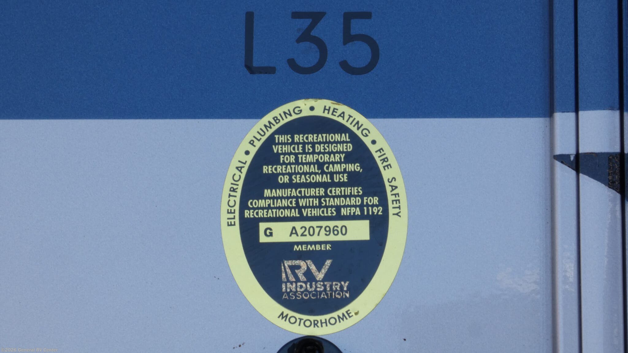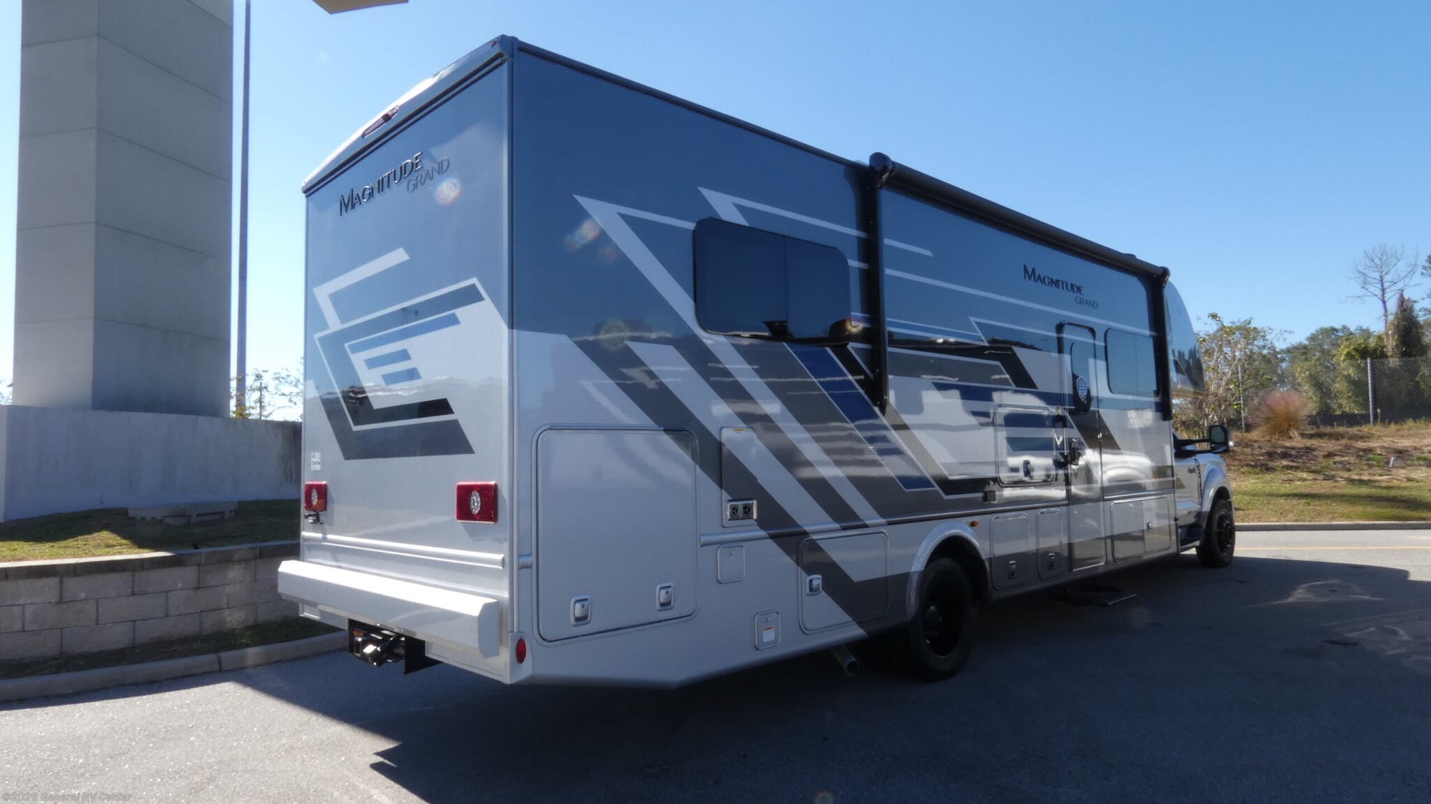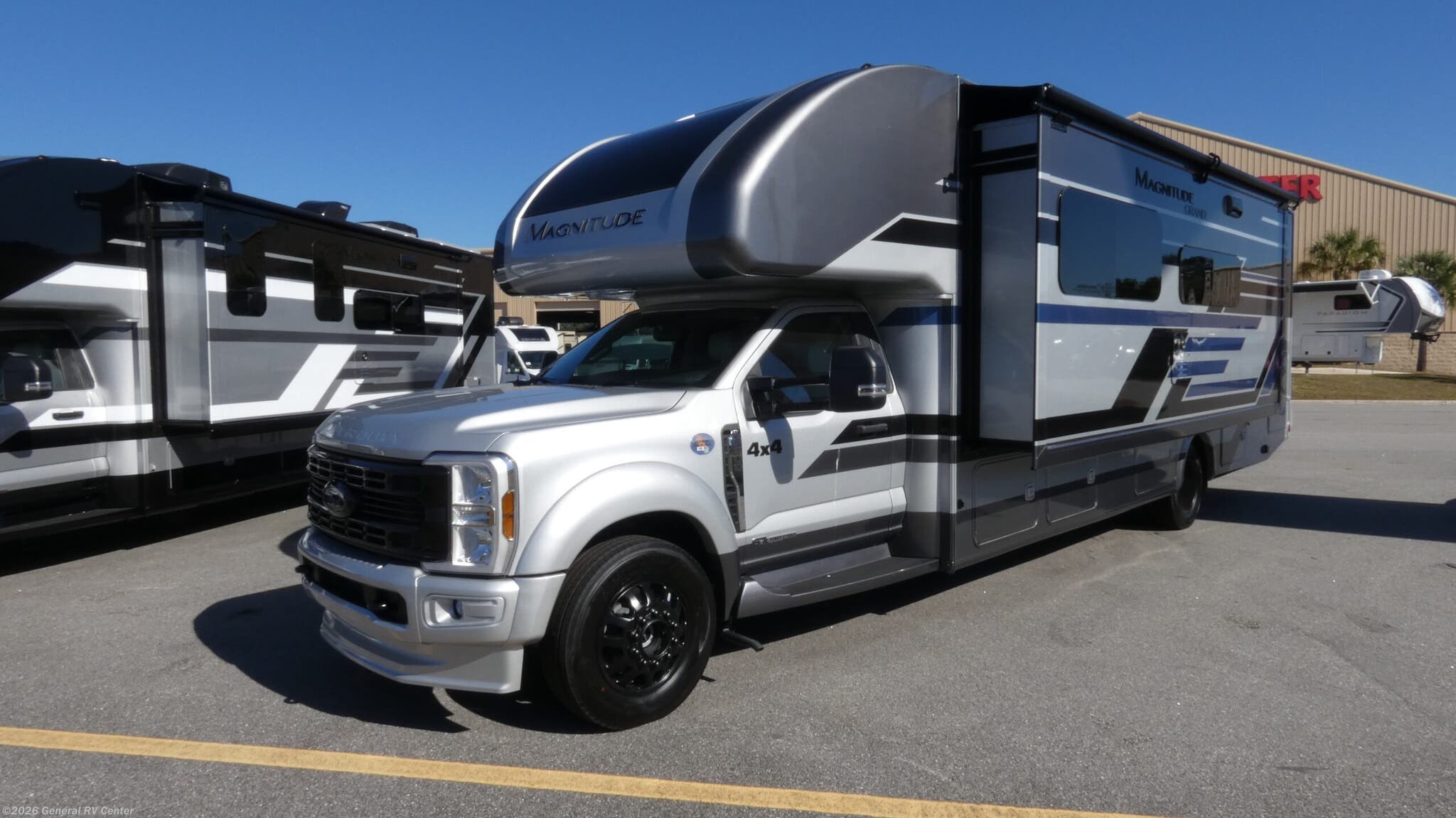 **Thor Motor Coach Magnitude GRAND Super C diesel motorhome L35 highlights:** * Rear Bedroom * Bed Over Bunk * Full Bathroom * Exterior TV This motorhome has everything you need to create unforgettable memories on the road. Retreat to the serene rear bedroom, featuring a plush queen bed, dual wardrobe beside the bed, and a 32” Smart TV. Conveniently located in the hallway are a closet with washer and dryer prep, and a pantry for storing all your essentials. In front of it, you'll find a spacious full bathroom with a linen closet, perfect for freshening up on the go. The kitchen boasts a residential refrigerator, three-burner cooktop, microwave, and 70” Dream Dinette. Relax and unwind in the 68” theater seating, while watching the 40” Smart TV located over the cab, plus, additional sleeping space is available in the 52” x 80” bunk over cab. And when you're ready to take the party outside, enjoy your favorite shows and movies on the exterior 32” Smart TV. The Magnitude GRAND Super C diesel motorhomes by Thor Motor Coach are built to last, featuring Vacu-bond laminated roofs and floors with block foam insulation for unparalleled durability and climate control which ensures a comfortable and quiet living space. Stay connected and entertained on the go with the innovative sync-enhanced voice recognition communication and entertainment system. With just the sound of your voice, you can control everything from navigation to music playlists. Setting up camp has never been easier, thanks to our automatic leveling jacks with a touchpad, simply press a button and let the system do the work for you. Inside, you'll enjoy incredible interior features like a spacious 84” interior ceiling height, perfect for comfortable living, solid countertops, designer headboard, bedspread, and pillow shams. Plus you can beat the heat with the dual 13,500 BTU roof air conditioners, providing superior cooling power to keep you comfortable in even the warmest climates. Explore our motorhome collection today and discover a new standard of luxury and adventure.
