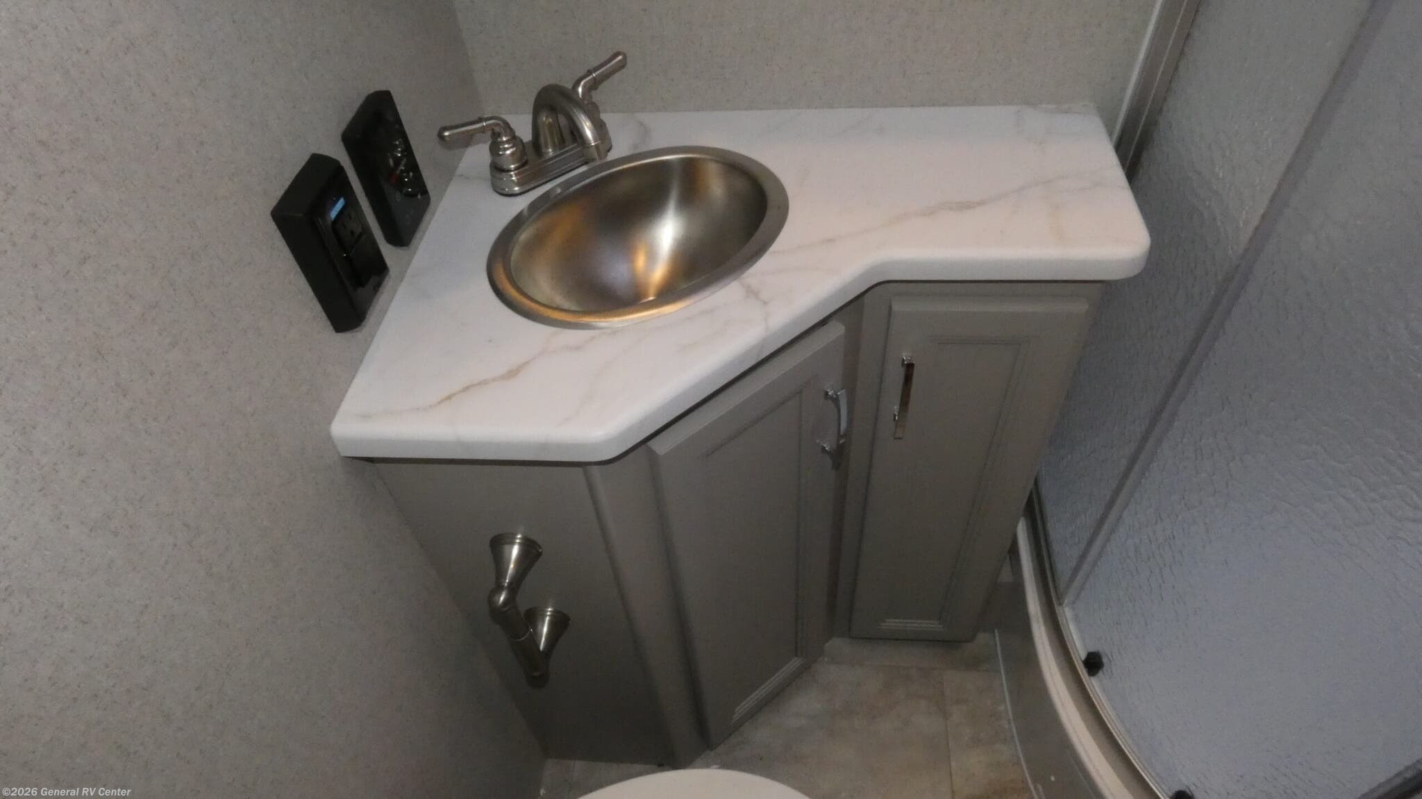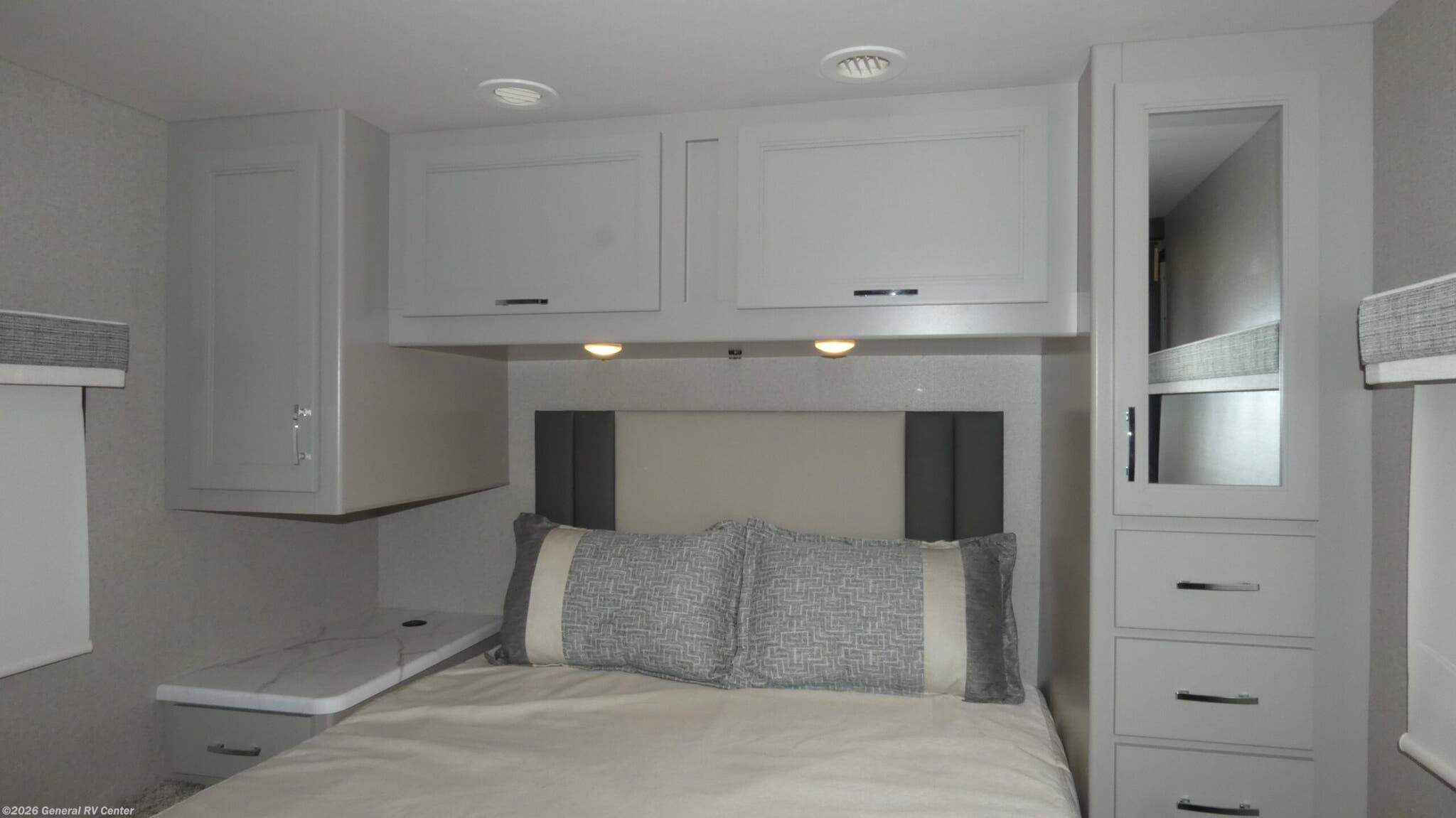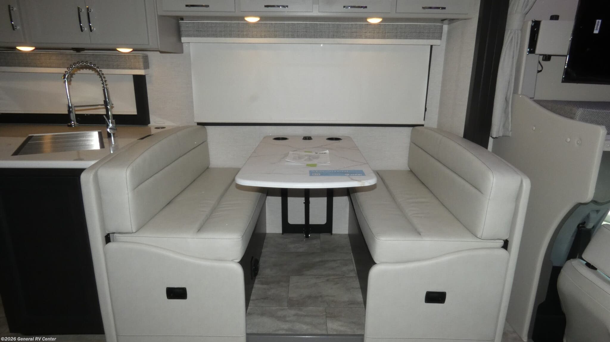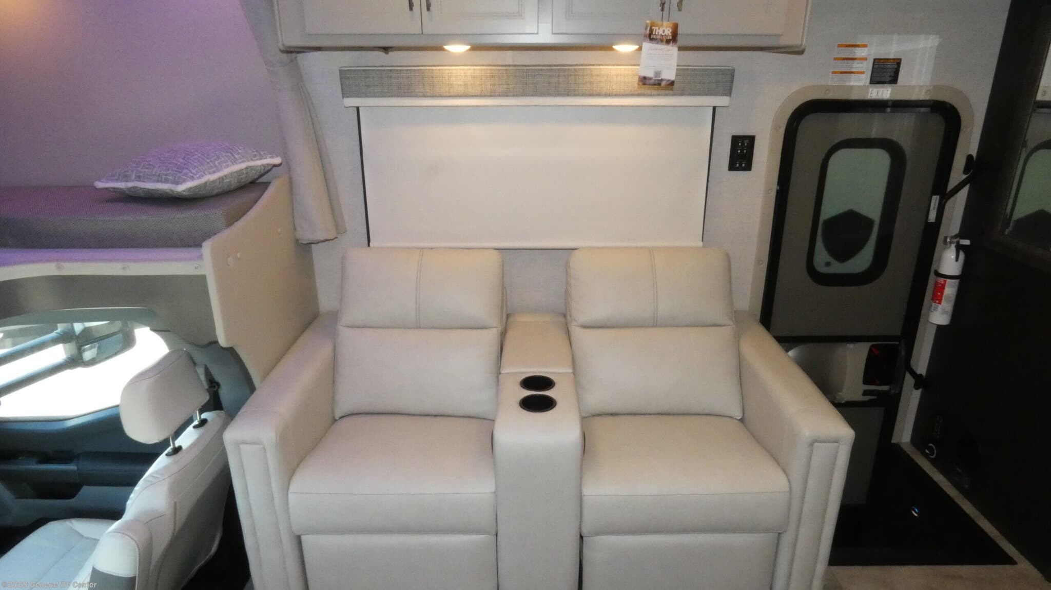 **Thor Motor Coach Magnitude GRAND Super C diesel motorhome L35 highlights:** * Rear Bedroom * Bed Over Bunk * Full Bathroom * Exterior TV This motorhome has everything you need to create unforgettable memories on the road. Retreat to the serene rear bedroom, featuring a plush queen bed, dual wardrobe beside the bed, and a 32” Smart TV. Conveniently located in the hallway are a closet with washer and dryer prep, and a pantry for storing all your essentials. In front of it, you'll find a spacious full bathroom with a linen closet, perfect for freshening up on the go. The kitchen boasts a residential refrigerator, three-burner cooktop, microwave, and 70” Dream Dinette. Relax and unwind in the 68” theater seating, while watching the 40” Smart TV located over the cab, plus, additional sleeping space is available in the 52” x 80” bunk over cab. And when you're ready to take the party outside, enjoy your favorite shows and movies on the exterior 32” Smart TV. The Magnitude GRAND Super C diesel motorhomes by Thor Motor Coach are built to last, featuring Vacu-bond laminated roofs and floors with block foam insulation for unparalleled durability and climate control which ensures a comfortable and quiet living space. Stay connected and entertained on the go with the innovative sync-enhanced voice recognition communication and entertainment system. With just the sound of your voice, you can control everything from navigation to music playlists. Setting up camp has never been easier, thanks to our automatic leveling jacks with a touchpad, simply press a button and let the system do the work for you. Inside, you'll enjoy incredible interior features like a spacious 84” interior ceiling height, perfect for comfortable living, solid countertops, designer headboard, bedspread, and pillow shams. Plus you can beat the heat with the dual 13,500 BTU roof air conditioners, providing superior cooling power to keep you comfortable in even the warmest climates. Explore our motorhome collection today and discover a new standard of luxury and adventure.