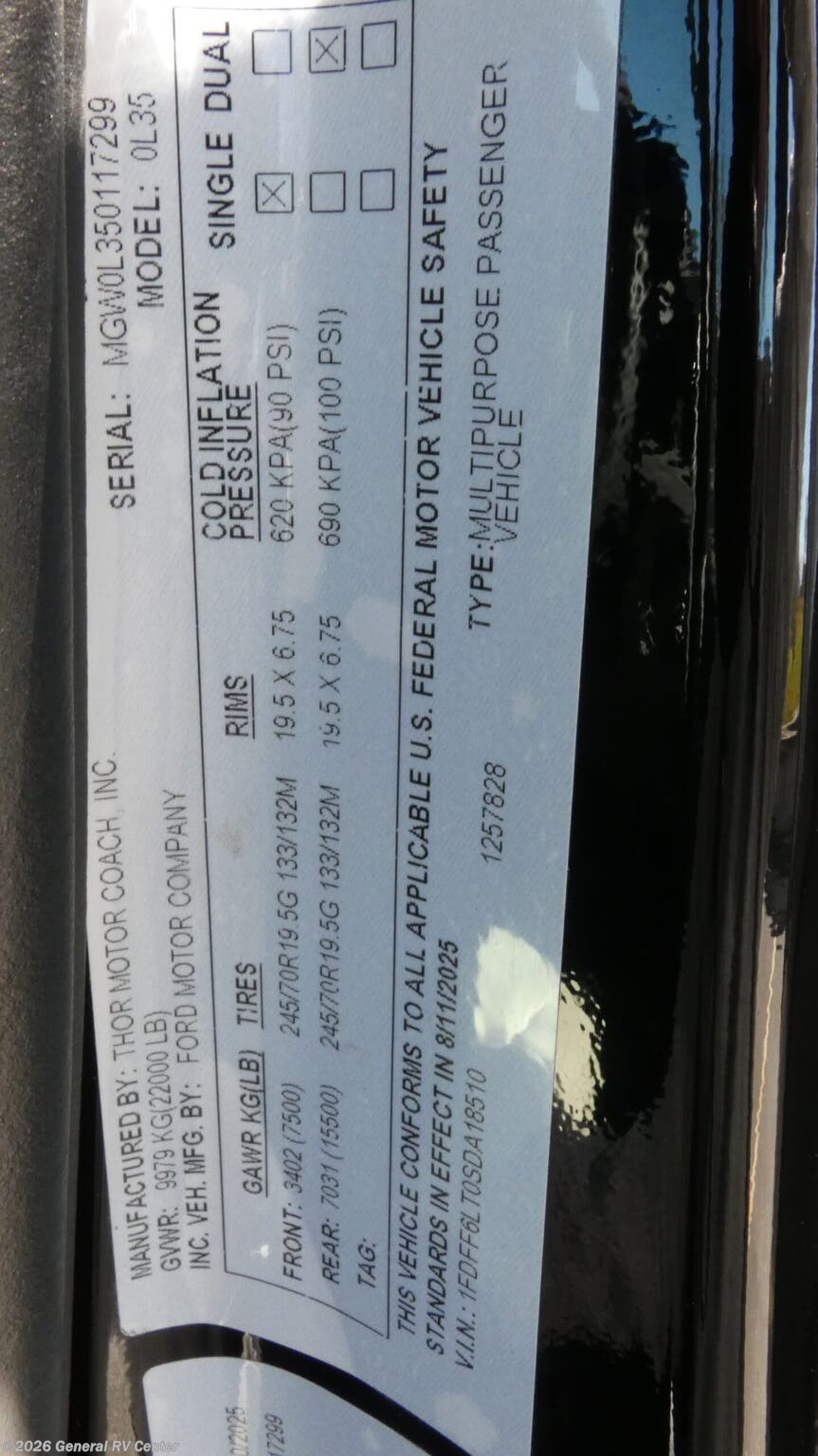 Request More Info on this 2026 Thor Motor Coach Magnitude L35 Offered for sale by General RV Center