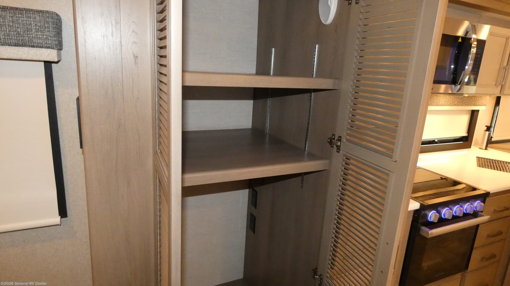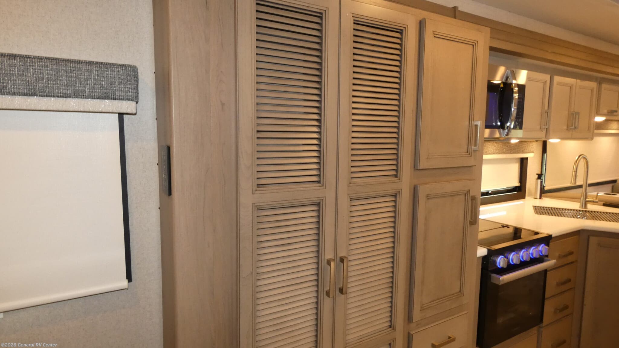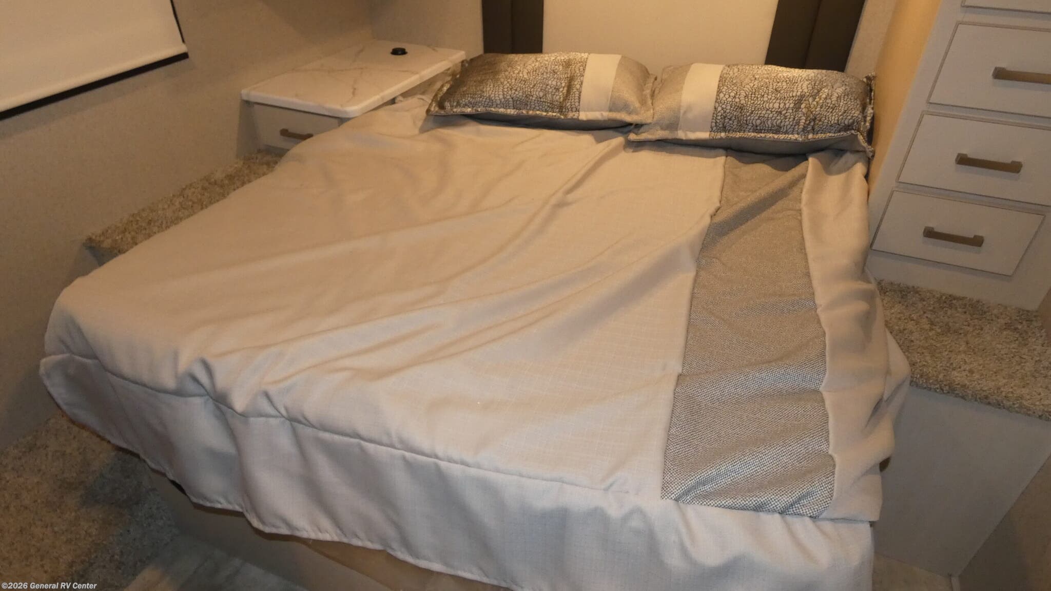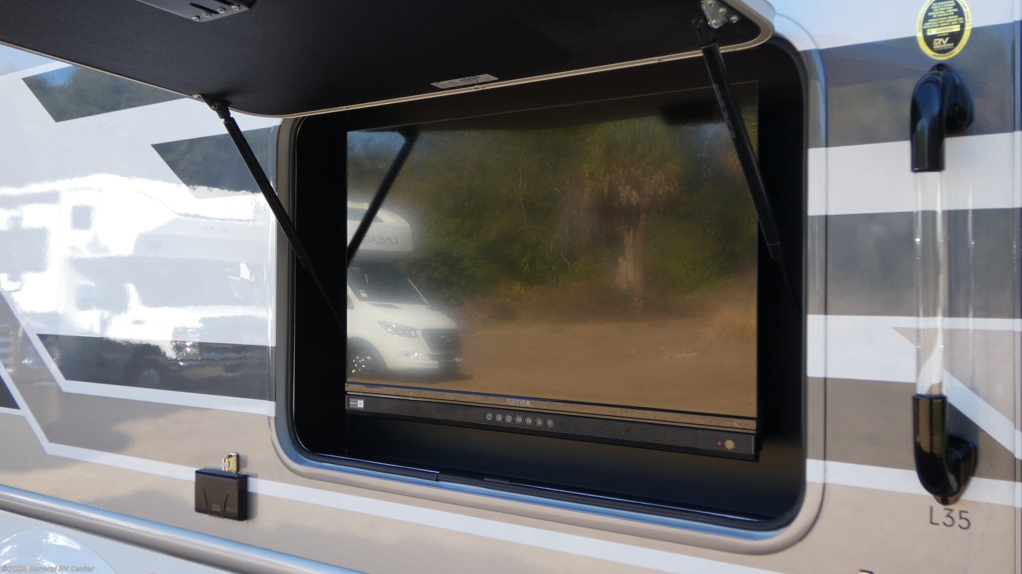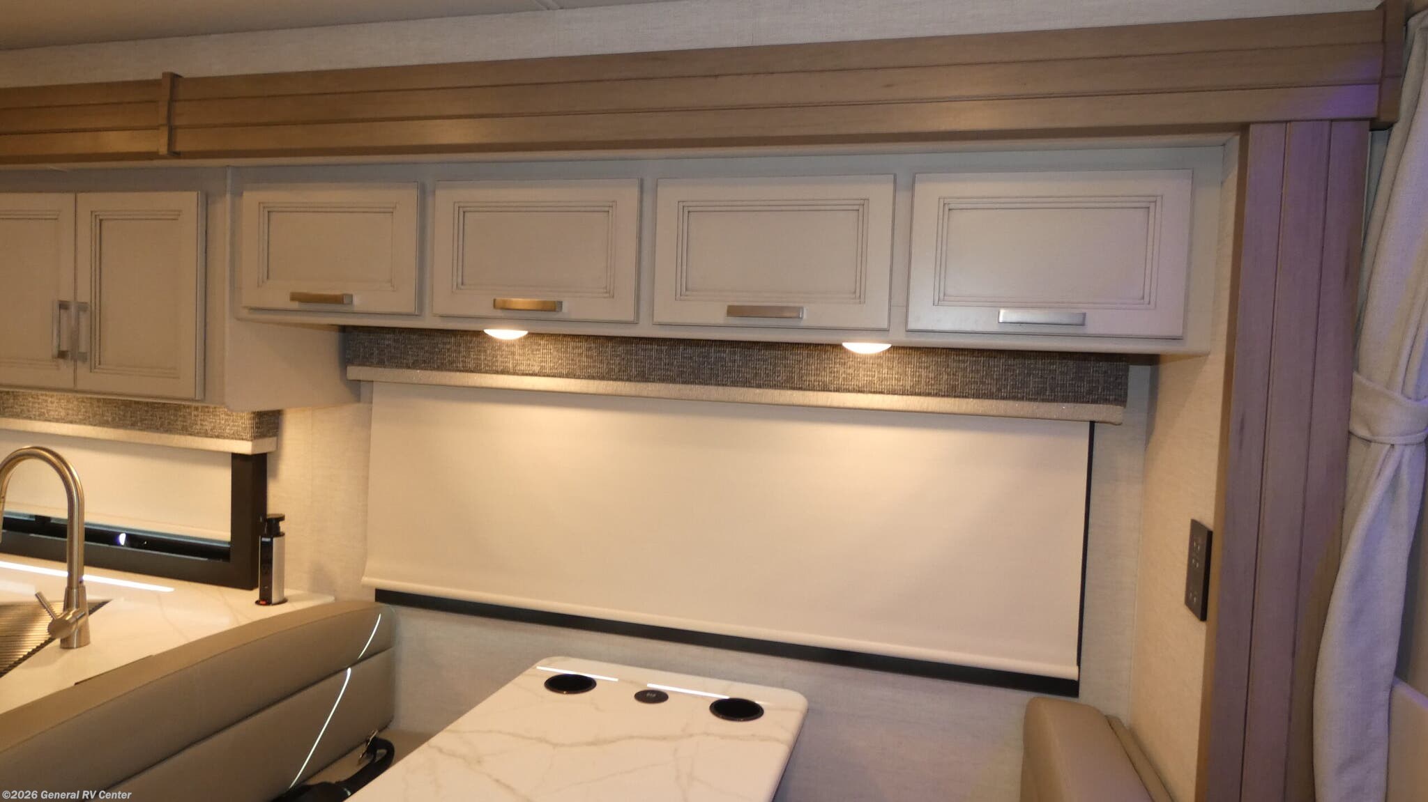 **Thor Motor Coach Magnitude GRAND Super C diesel motorhome L35 highlights:** * Rear Bedroom * Bed Over Bunk * Full Bathroom * Exterior TV This motorhome has everything you need to create unforgettable memories on the road. Retreat to the serene rear bedroom, featuring a plush queen bed, dual wardrobe beside the bed, and a 32” Smart TV. Conveniently located in the hallway are a closet with washer and dryer prep, and a pantry for storing all your essentials. In front of it, you'll find a spacious full bathroom with a linen closet, perfect for freshening up on the go. The kitchen boasts a residential refrigerator, three-burner cooktop, microwave, and 70” Dream Dinette. Relax and unwind in the 68” theater seating, while watching the 40” Smart TV located over the cab, plus, additional sleeping space is available in the 52” x 80” bunk over cab. And when you're ready to take the party outside, enjoy your favorite shows and movies on the exterior 32” Smart TV. The Magnitude GRAND Super C diesel motorhomes by Thor Motor Coach are built to last, featuring Vacu-bond laminated roofs and floors with block foam insulation for unparalleled durability and climate control which ensures a comfortable and quiet living space. Stay connected and entertained on the go with the innovative sync-enhanced voice recognition communication and entertainment system. With just the sound of your voice, you can control everything from navigation to music playlists. Setting up camp has never been easier, thanks to our automatic leveling jacks with a touchpad, simply press a button and let the system do the work for you. Inside, you'll enjoy incredible interior features like a spacious 84” interior ceiling height, perfect for comfortable living, solid countertops, designer headboard, bedspread, and pillow shams. Plus you can beat the heat with the dual 13,500 BTU roof air conditioners, providing superior cooling power to keep you comfortable in even the warmest climates. Explore our motorhome collection today and discover a new standard of luxury and adventure.