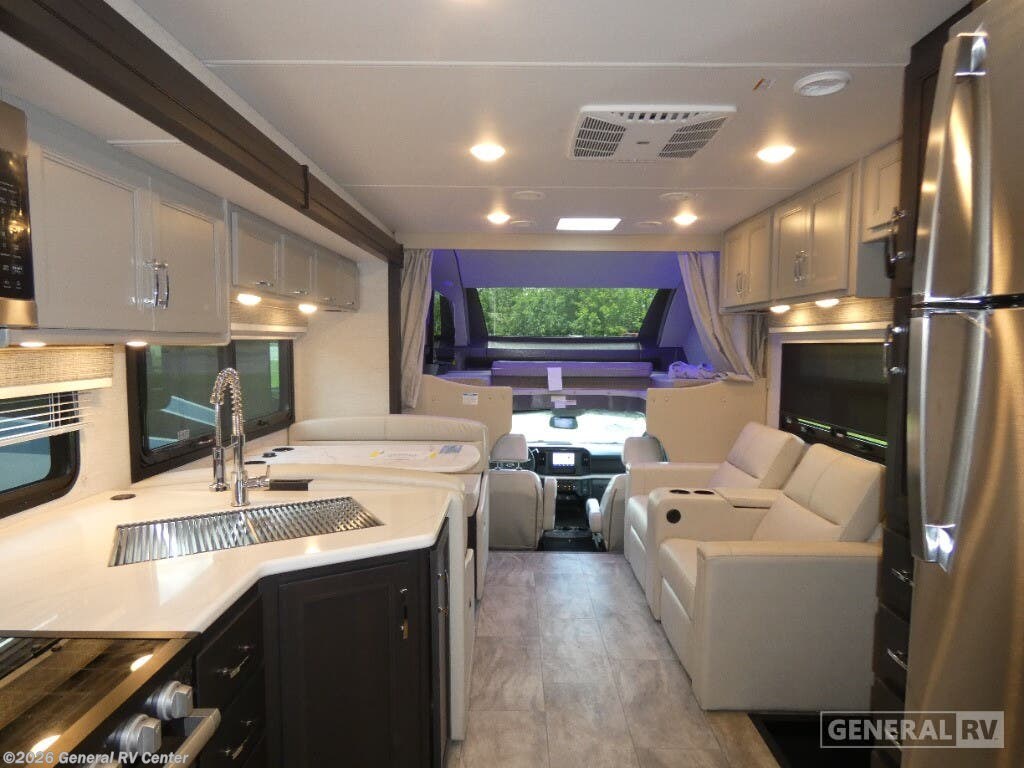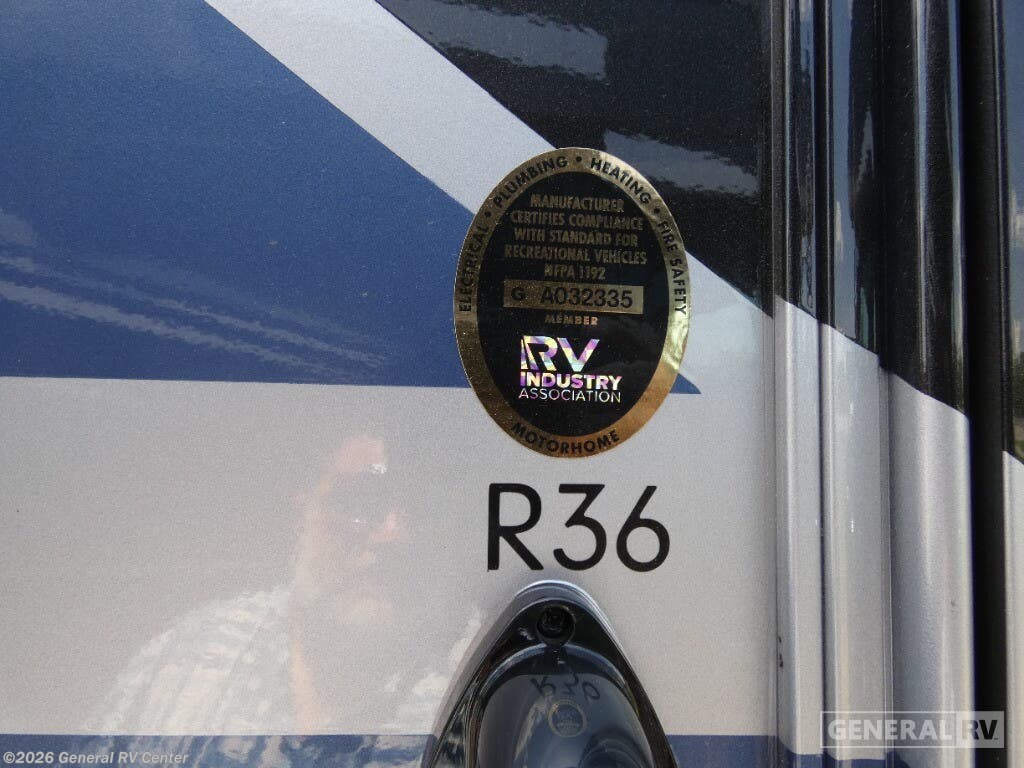 The Thor Motor Coach Magnitude® GRAND R36 is a Super C diesel motorhome that combines power, luxury, and modern amenities to provide an exceptional travel experience. Built on the Ford® F-600 chassis, it features a 6.7-liter Power Stroke® V8 turbo diesel engine, delivering 330 horsepower and 950 lb-ft of torque, ensuring robust performance and reliability on the road. With a length of 37 feet 2 inches (446 inches), the R36 offers spacious interiors while maintaining maneuverability, making it suitable for both short trips and extended journeys.