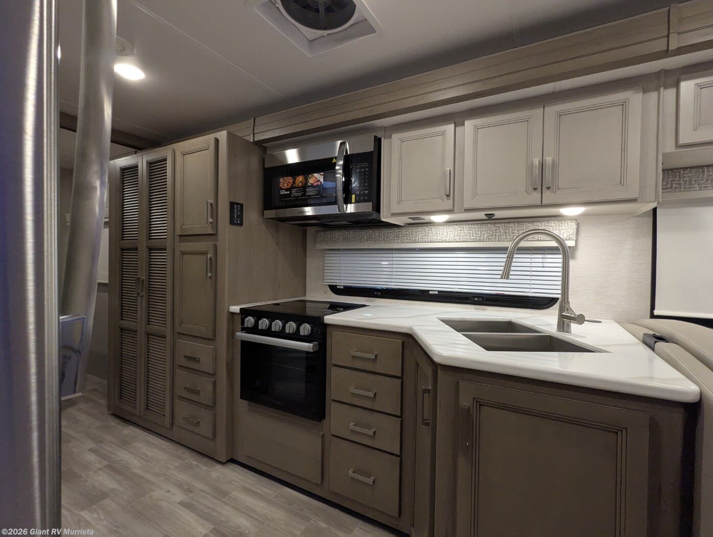 - Modern Kitchen: 12 cu. ft. 12V fridge keeps cuisine fresh, 3-burner cooktop for tasty meals, microwave for quick snacks.