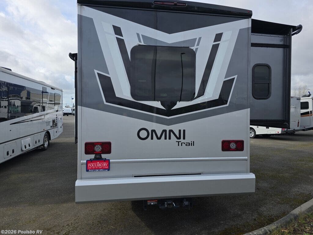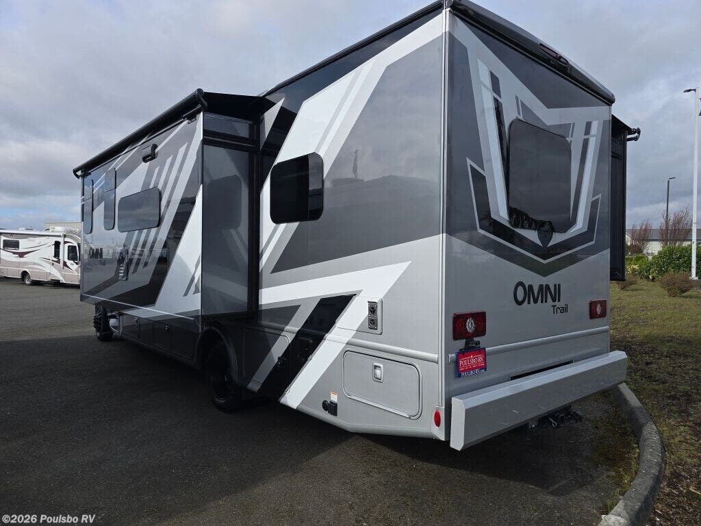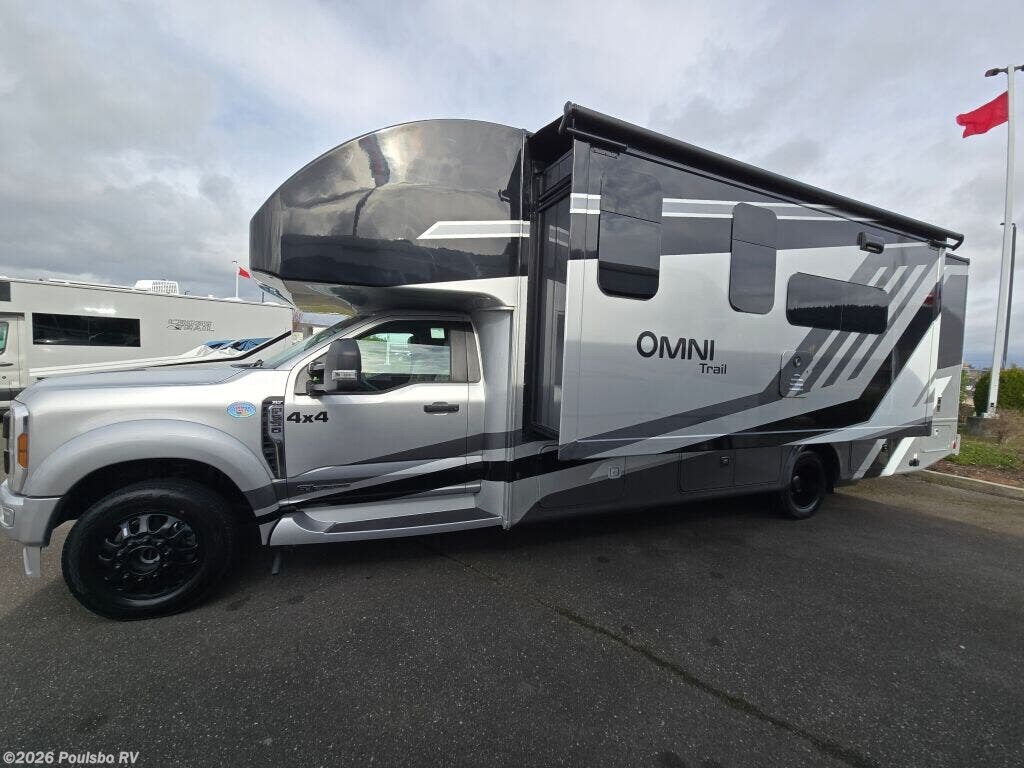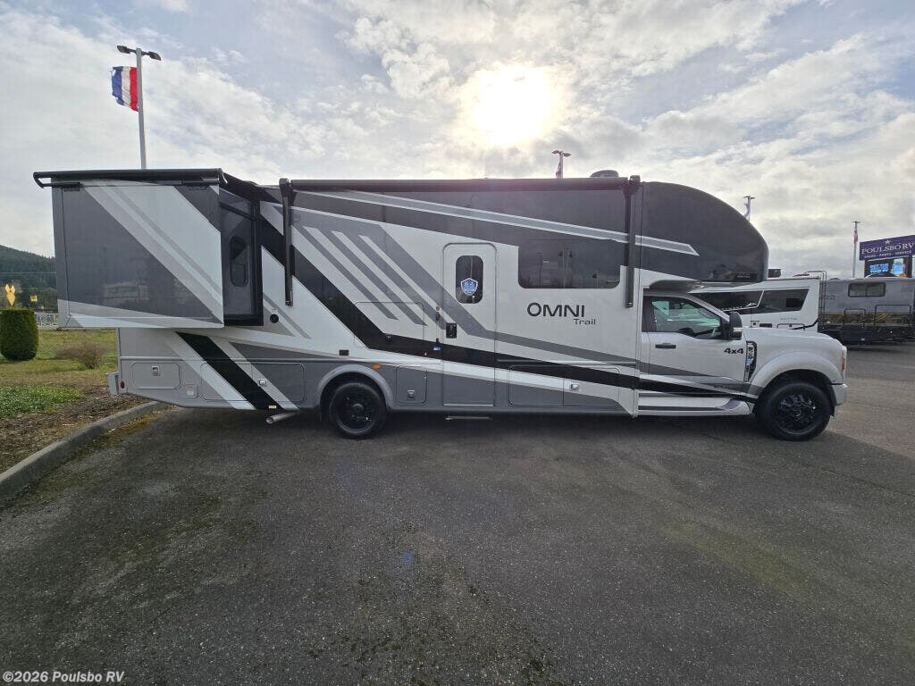 The 2026 Thor Motor Coach Omni Trail X32 offers a spacious and versatile living area designed for families and groups seeking comfort on the road. This new diesel-powered motorhome stretches over 33 feet, providing ample room to relax and enjoy the journey. With two slide-outs, the interior space expands to create an open atmosphere that enhances daily living and sleeping arrangements. It comfortably accommodates up to eight people, making it ideal for family adventures or group trips. The well-appointed interior includes thoughtful features for convenience and entertainment, including an awning for outdoor shade and leveling jacks for easy setup on varied terrain. The Omni Trail X32 handles towing demands with a capacity over 10,000 pounds, supporting additional gear or trailers you may want to bring along. It also includes significant wastewater capacity with 47 gallons for gray water and 40 gallons for black water, enabling extended stays without frequent utility stops. As a durable motorhome built for extended travel, it blends functionality and design to meet diverse needs while on the road. As a family-owned, award-winning local RV dealer with multiple locations in Sumner, Everett, Kent, and Mt Vernon Washington, Poulsbo RV here to help you find the perfect RV. Stock#: M3807, VIN: 1FDFF5HT9SDA17438.
