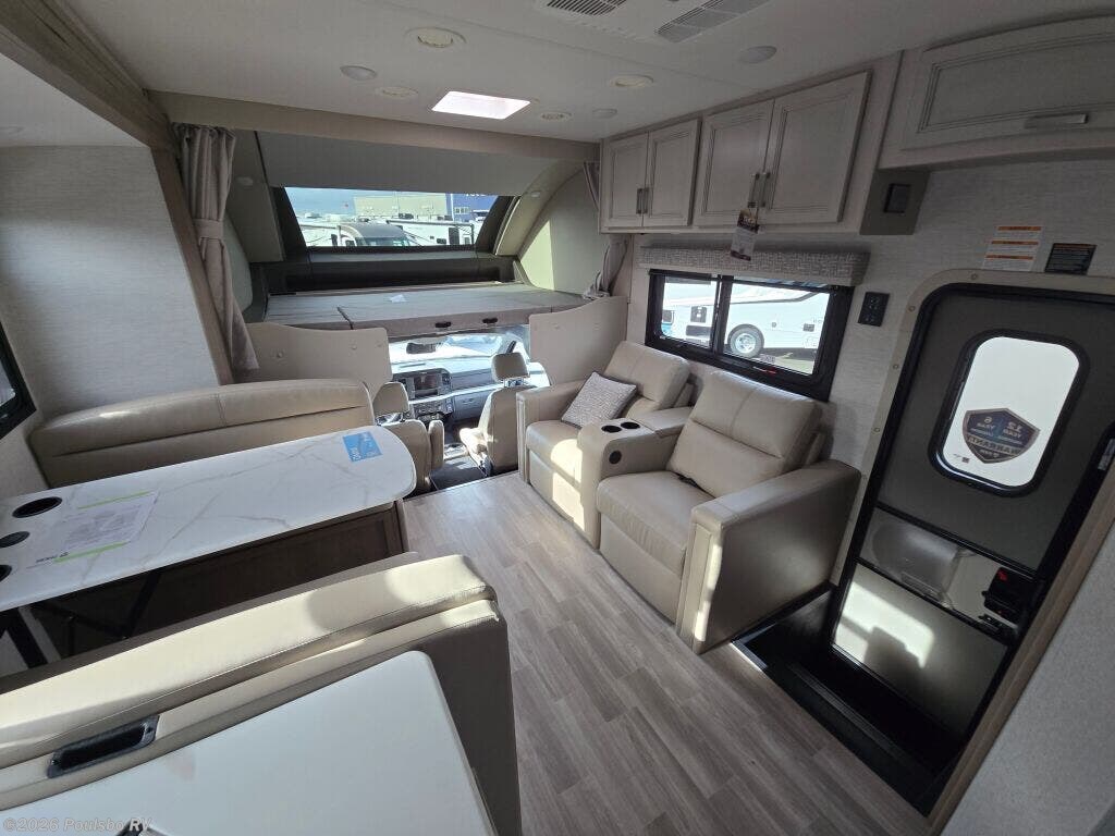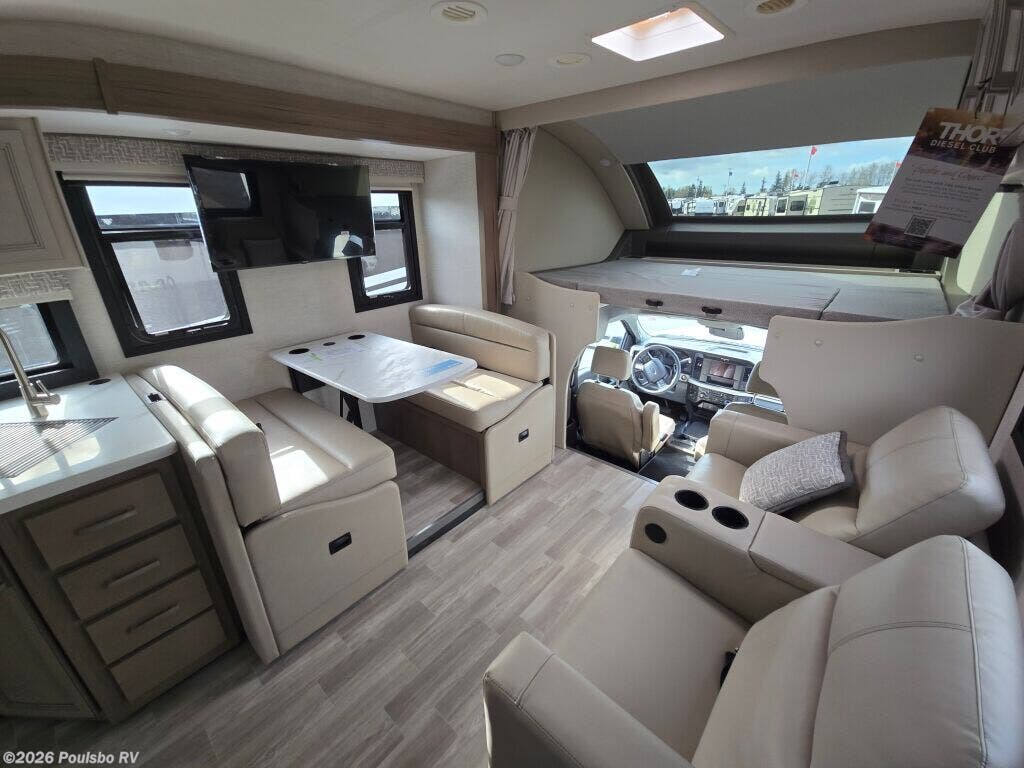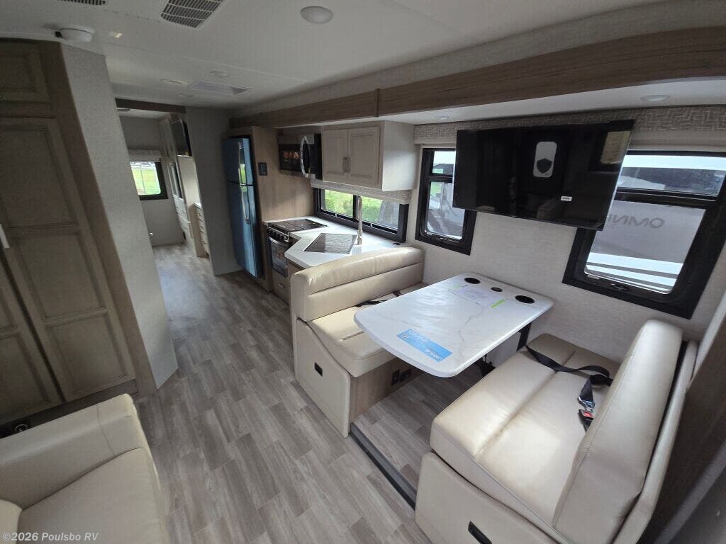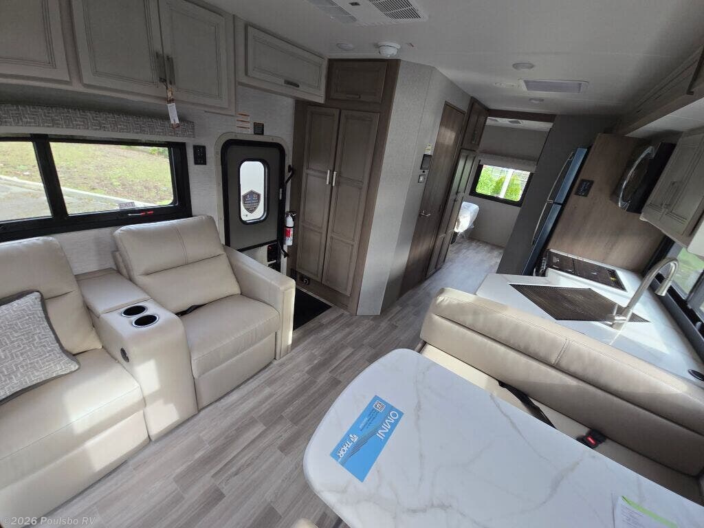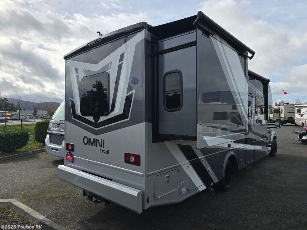 The 2026 Thor Motor Coach Omni Trail X32 offers a spacious and versatile living area designed for families and groups seeking comfort on the road. This new diesel-powered motorhome stretches over 33 feet, providing ample room to relax and enjoy the journey. With two slide-outs, the interior space expands to create an open atmosphere that enhances daily living and sleeping arrangements. It comfortably accommodates up to eight people, making it ideal for family adventures or group trips. The well-appointed interior includes thoughtful features for convenience and entertainment, including an awning for outdoor shade and leveling jacks for easy setup on varied terrain. The Omni Trail X32 handles towing demands with a capacity over 10,000 pounds, supporting additional gear or trailers you may want to bring along. It also includes significant wastewater capacity with 47 gallons for gray water and 40 gallons for black water, enabling extended stays without frequent utility stops. As a durable motorhome built for extended travel, it blends functionality and design to meet diverse needs while on the road. As a family-owned, award-winning local RV dealer with multiple locations in Sumner, Everett, Kent, and Mt Vernon Washington, Poulsbo RV here to help you find the perfect RV. Stock#: M3807, VIN: 1FDFF5HT9SDA17438.