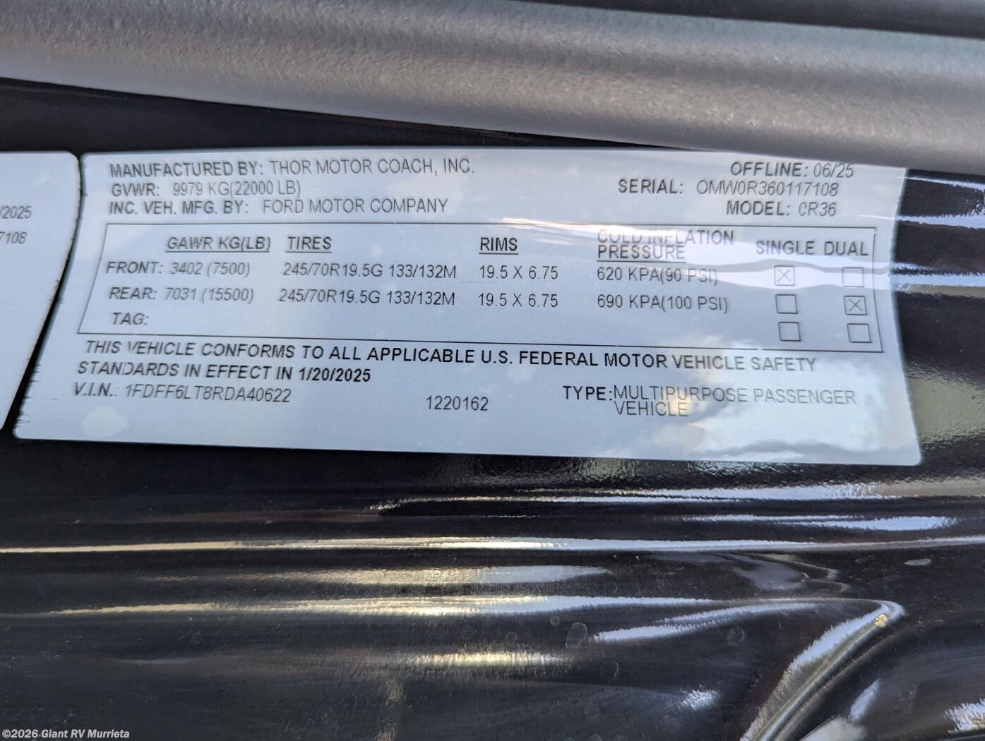 - VIN1FDFF6LT8RDA40622