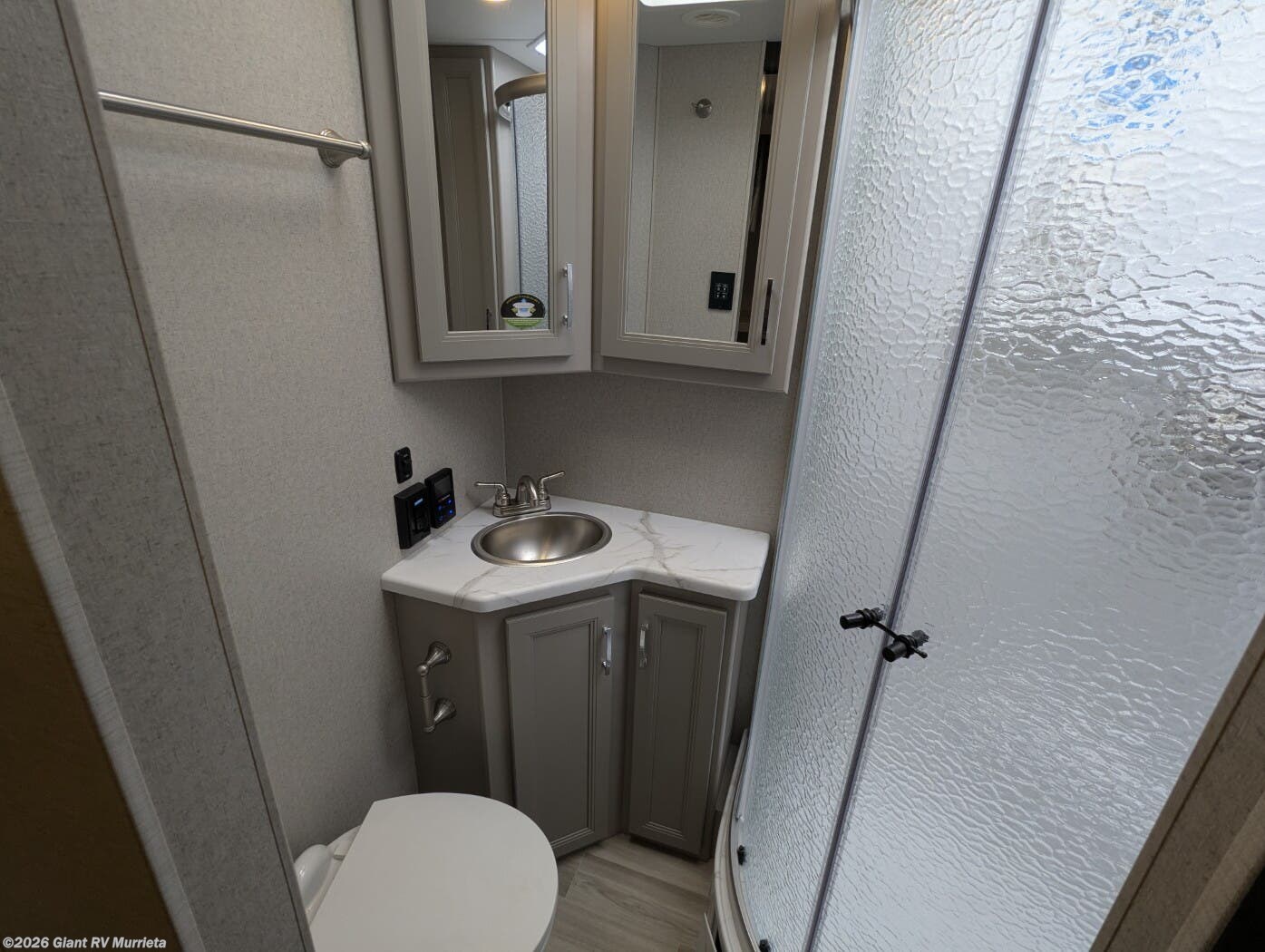 - Bath-and-a-Half Design: Features a full rear bath with a skylit shower and a mid-coach half bath for guest convenience and family-friendly travel.