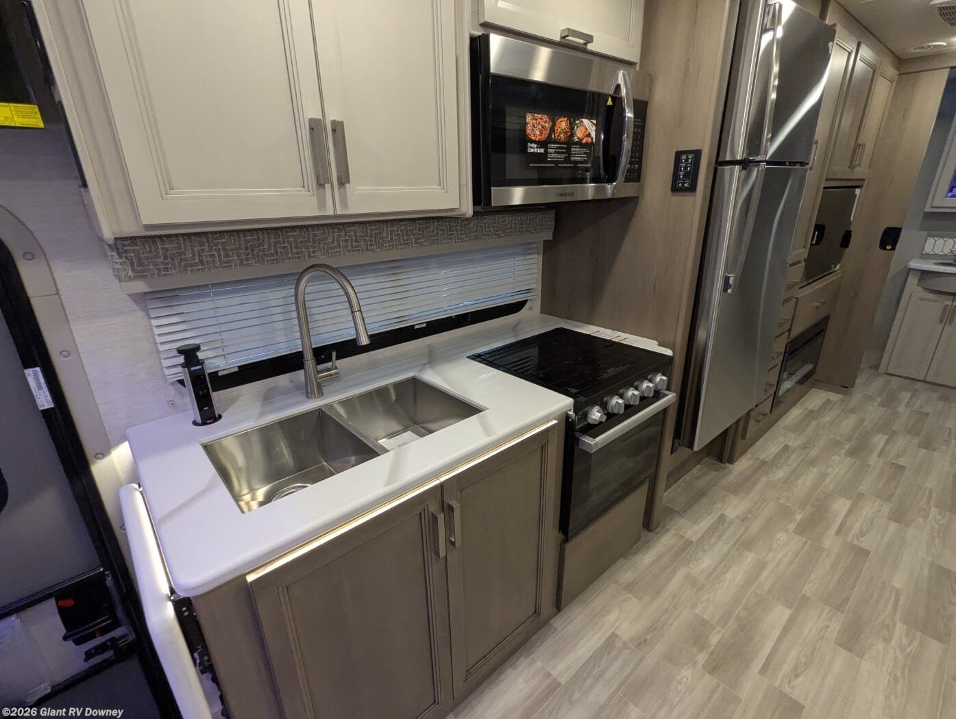 - Modern Kitchen: 12 cu. ft. 12V fridge keeps cuisine fresh, 3-burner cooktop for tasty meals, microwave for quick snacks.