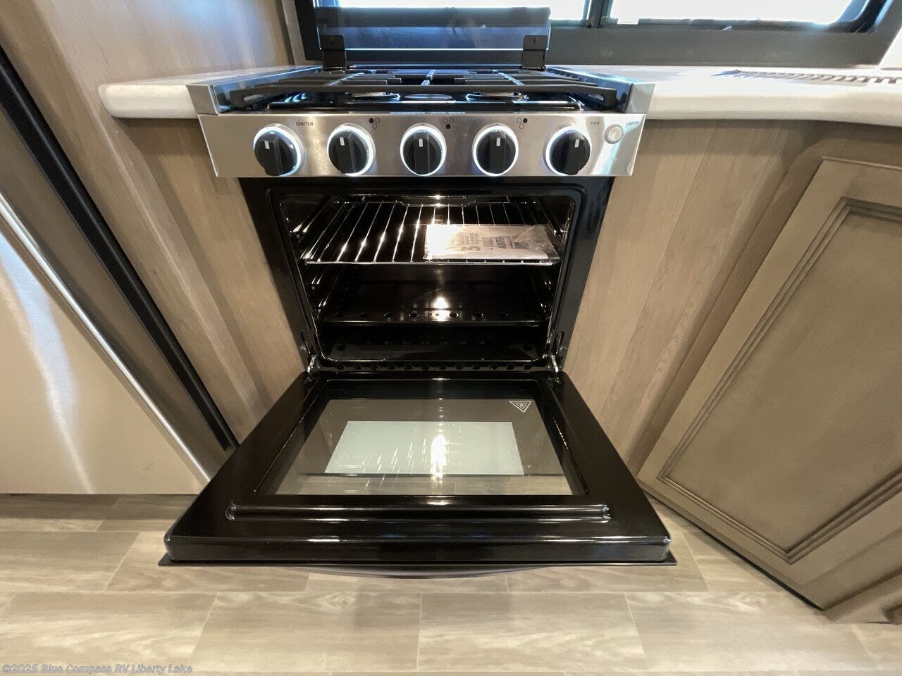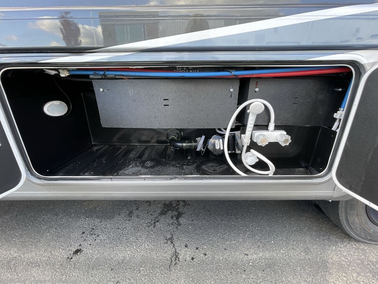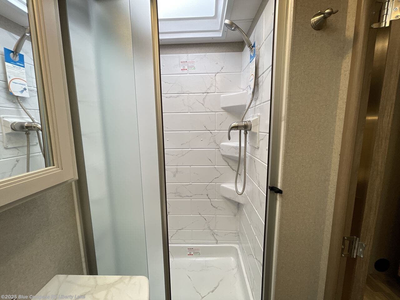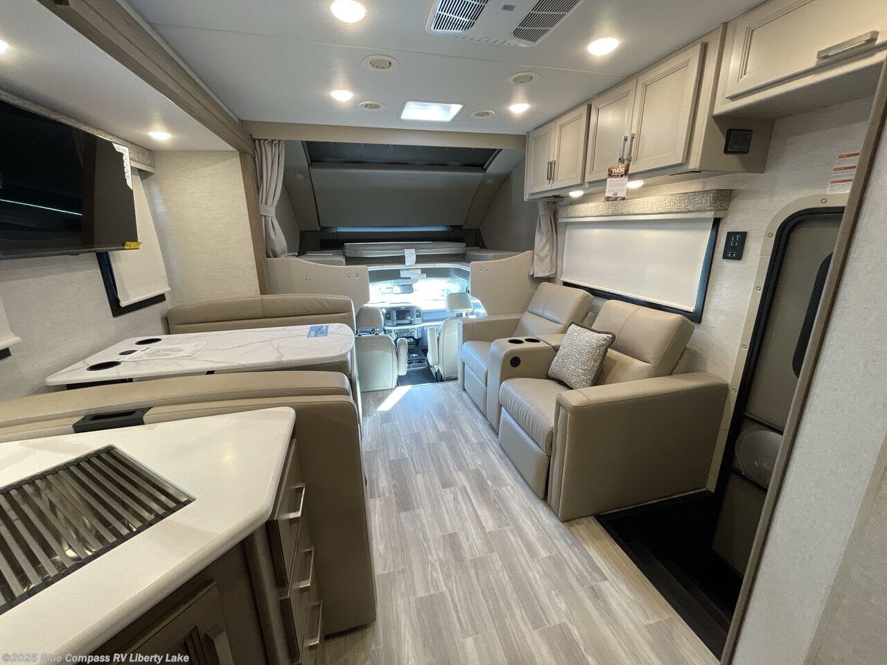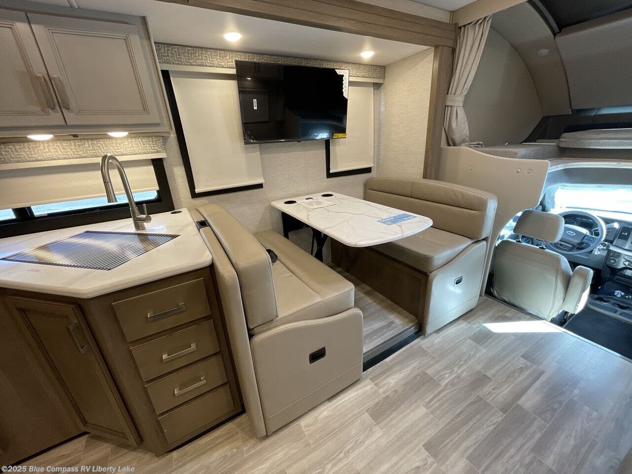 If you've been wanting to travel the country in style, now is the time with this motorhome that can sleep five people each night. The 40" living room Smart TV is directly across from the theater seating for easy viewing, plus there is a 32" bedroom Smart TV and an 32" exterior Smart TV for all your entertainment needs. The Dream Dinette will be the perfect place to enjoy breakfast each morning as you plan out your day, or you may just want to sit at the picnic table under the 14' power awning. This model includes a mid-ship full bath with a shower skylight that will not only provide more natural light, but will give you more head room as you wash up. The rear private bedroom will feel just like home with its 60" x 75" queen bed slide out, plus there is a wardrobe to keep your clothes tidy!