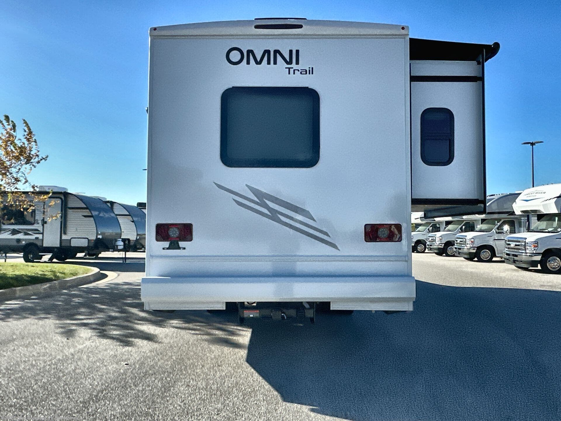 The Omni Trail Super C diesel motorhome by Thor Motor Coach starts with a durable welded tubular steel floor, vacu-bond laminated roof, walls, and floors with block foam insulation, and HD-MAX exterior with partial paint. Each model includes either a F550 or F600 Power Stroke 4 x 4 Turbo Diesel engine that will allow you to maneuver tougher terrain when the adventure calls for it. The cockpit is every captain's dream with its power adjustable driver's seat, side view camera system, heated remote exterior mirrors, and more. You can control all of your coach's functions with the RapidCamp+ multiplex wiring control system, and the Winegard ConnecT Wi-Fi extender with 5G will allow you to stay in touch with the outside world as you travel. Each model includes residential linoleum throughout, Leatherette furniture, solid surface countertops in the kitchen, and a glass shower door for that added touch of luxury. Come see all the other great features the Omni Trail Super C diesel motorhome has to offer!