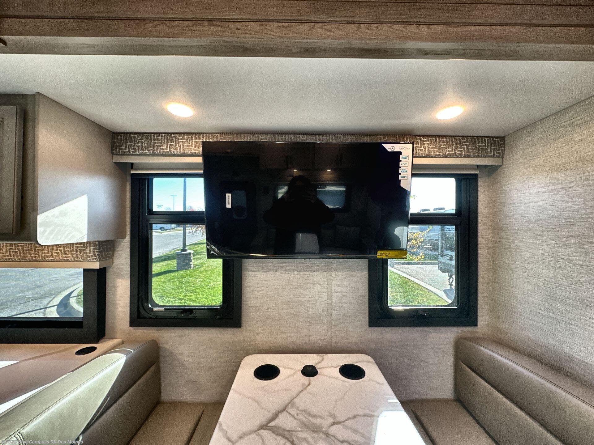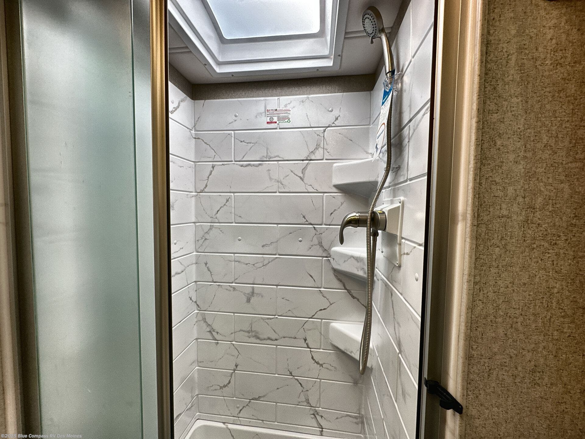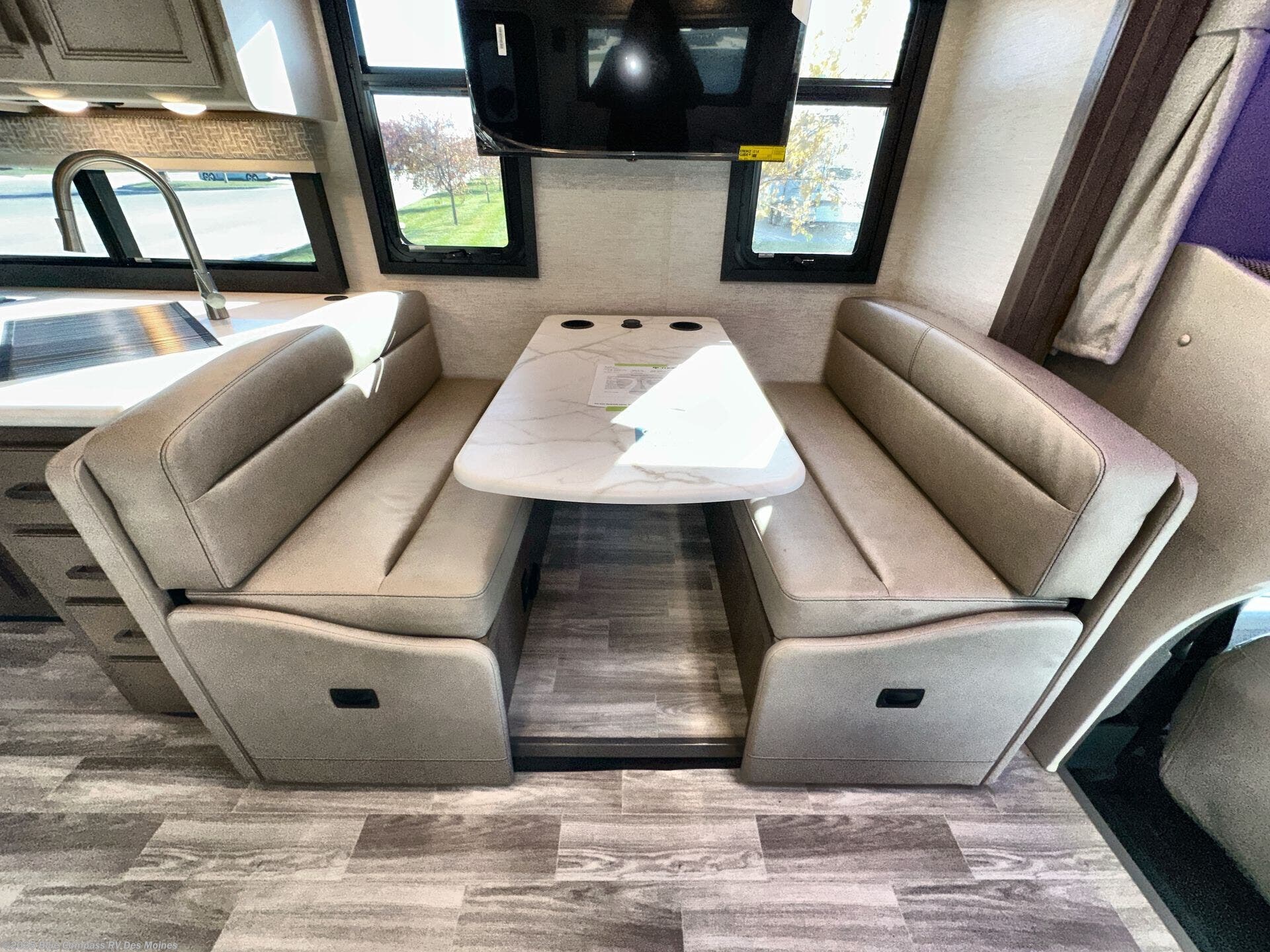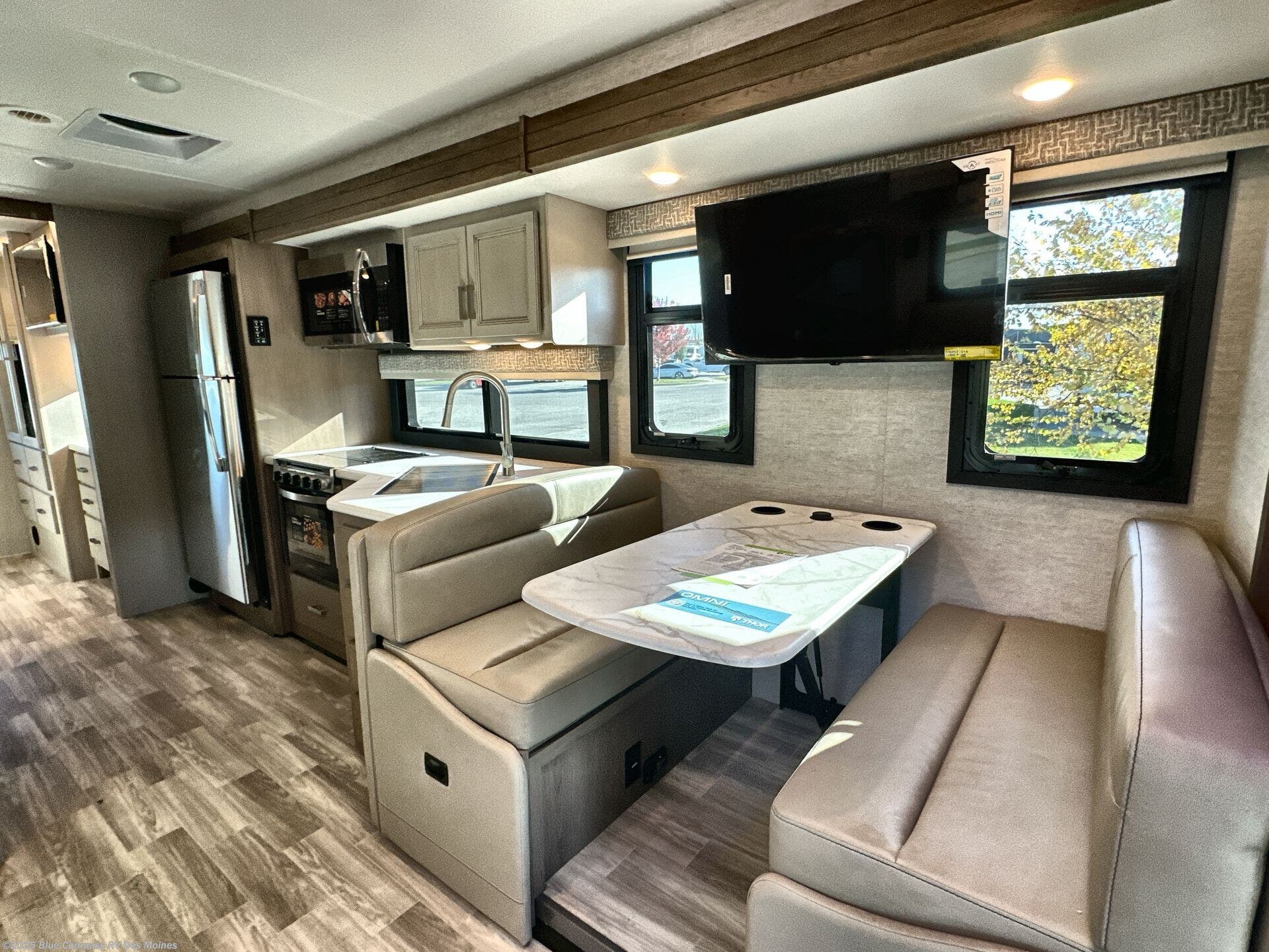 If you've been wanting to travel the country in style, now is the time with this motorhome that can sleep five people each night. The 40" living room Smart TV is directly across from the theater seating for easy viewing, plus there is a 32" bedroom Smart TV and an 32" exterior Smart TV for all your entertainment needs. The Dream Dinette will be the perfect place to enjoy breakfast each morning as you plan out your day, or you may just want to sit at the picnic table under the 14' power awning. This model includes a mid-ship full bath with a shower skylight that will not only provide more natural light, but will give you more head room as you wash up. The rear private bedroom will feel just like home with its 60" x 75" queen bed slide out, plus there is a wardrobe to keep your clothes tidy!