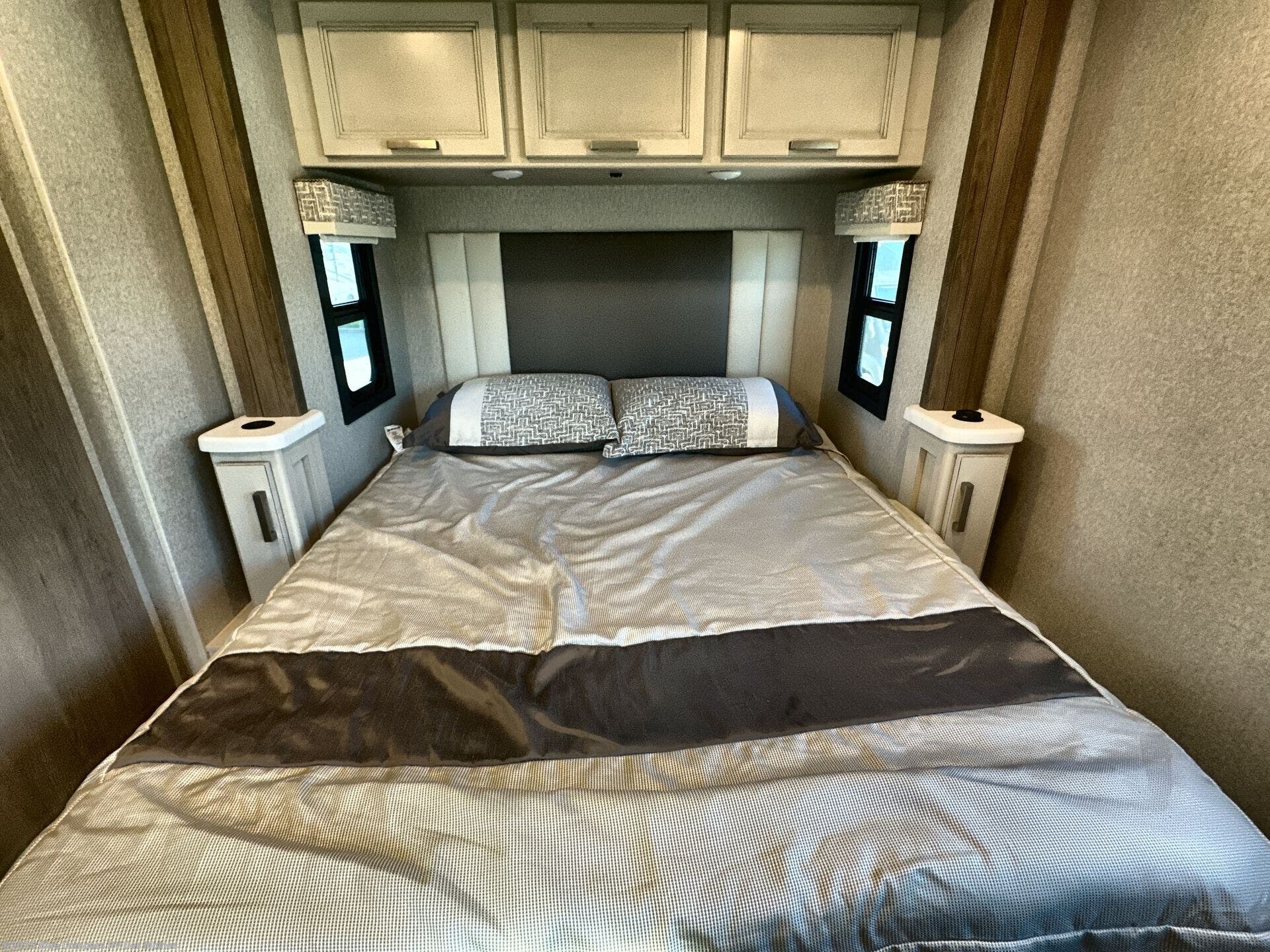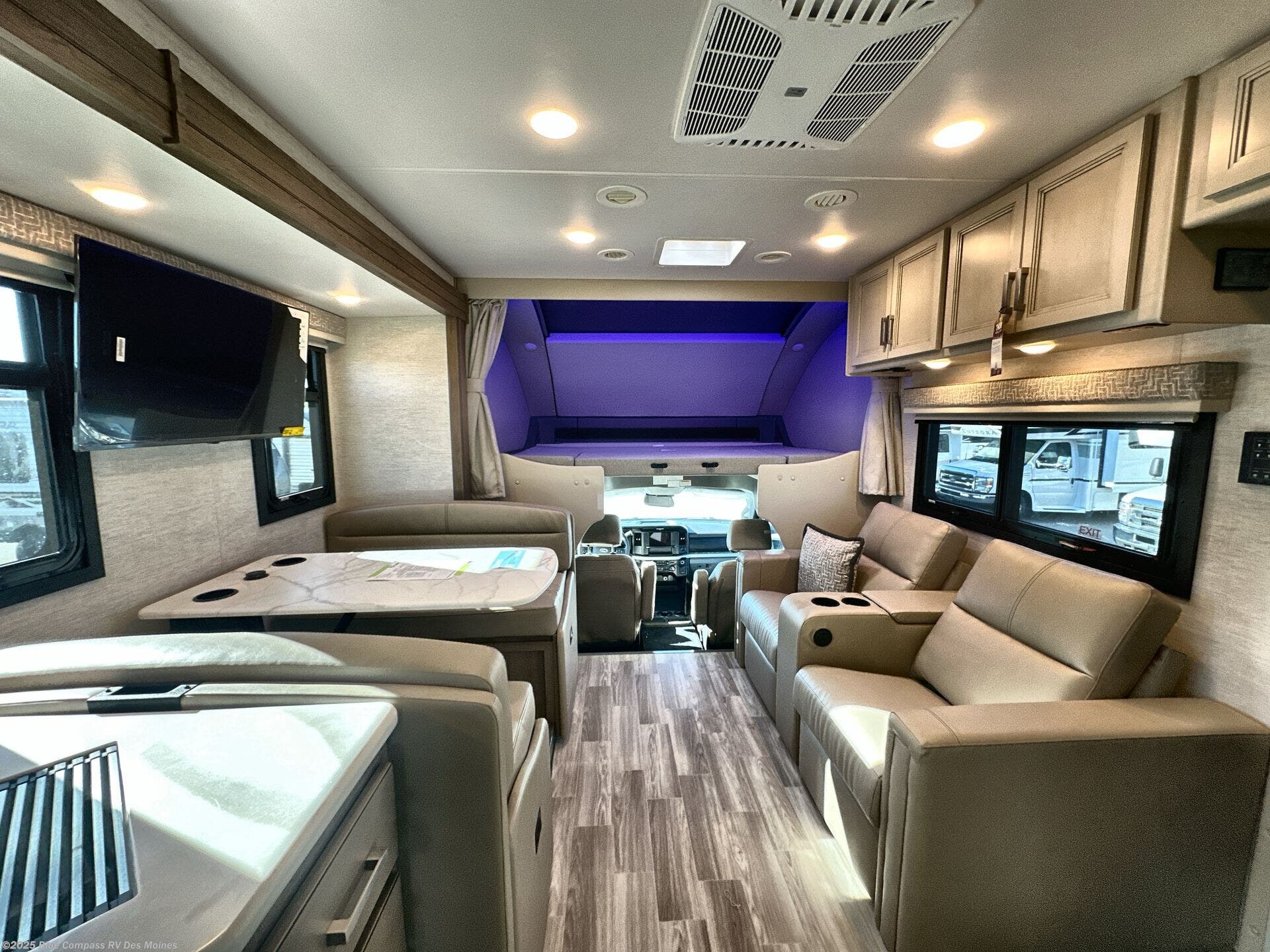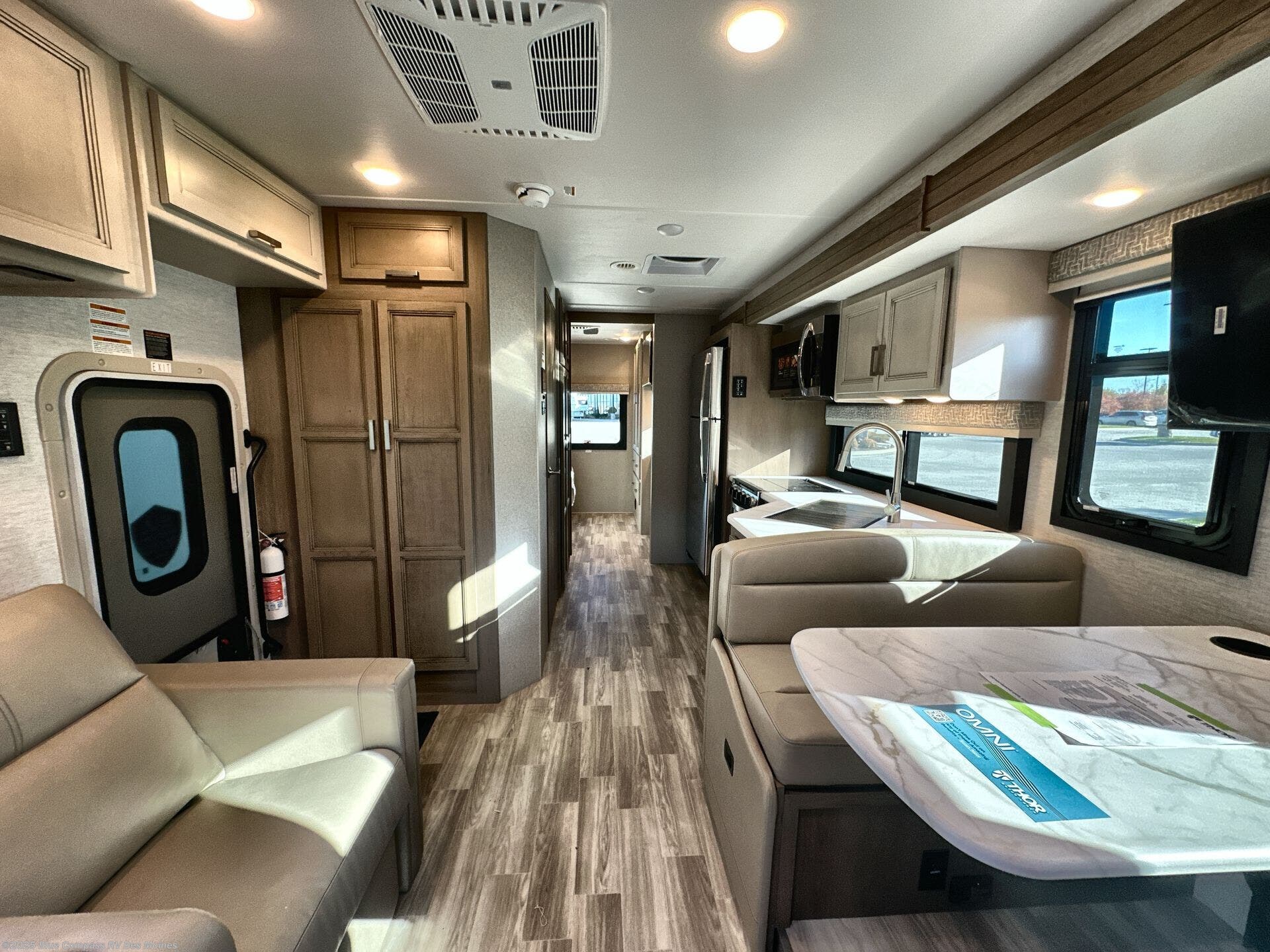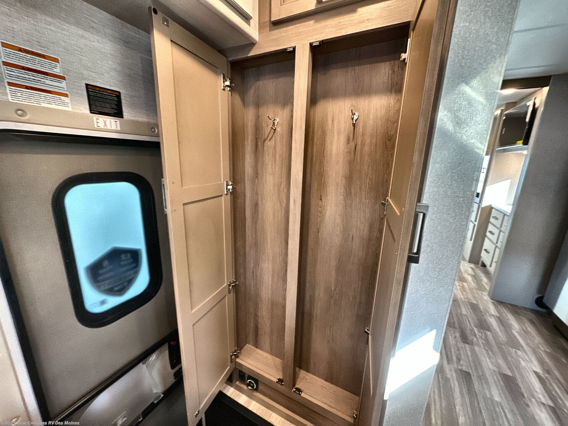 If you've been wanting to travel the country in style, now is the time with this motorhome that can sleep five people each night. The 40" living room Smart TV is directly across from the theater seating for easy viewing, plus there is a 32" bedroom Smart TV and an 32" exterior Smart TV for all your entertainment needs. The Dream Dinette will be the perfect place to enjoy breakfast each morning as you plan out your day, or you may just want to sit at the picnic table under the 14' power awning. This model includes a mid-ship full bath with a shower skylight that will not only provide more natural light, but will give you more head room as you wash up. The rear private bedroom will feel just like home with its 60" x 75" queen bed slide out, plus there is a wardrobe to keep your clothes tidy!