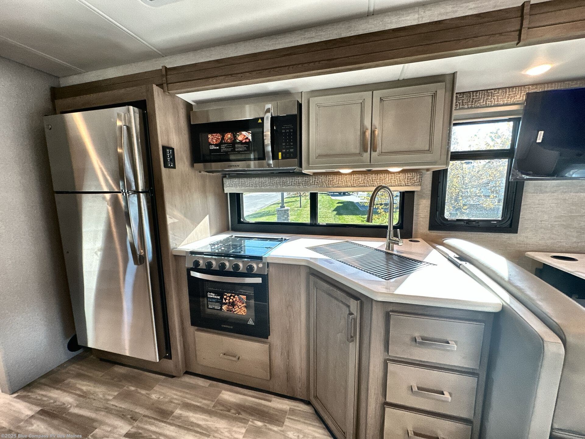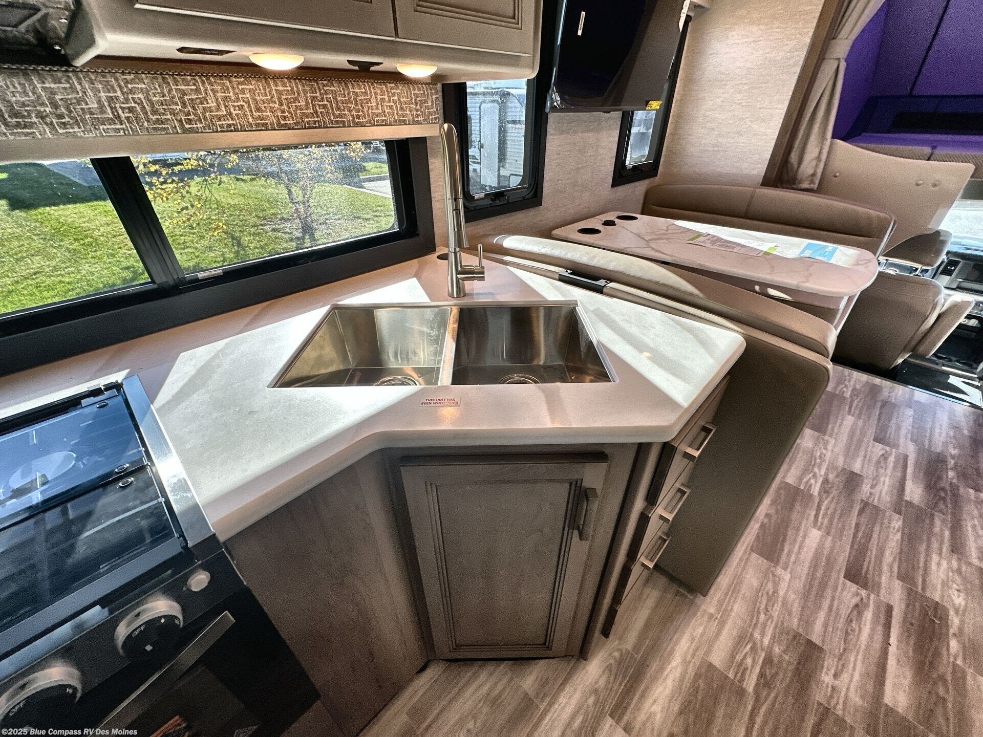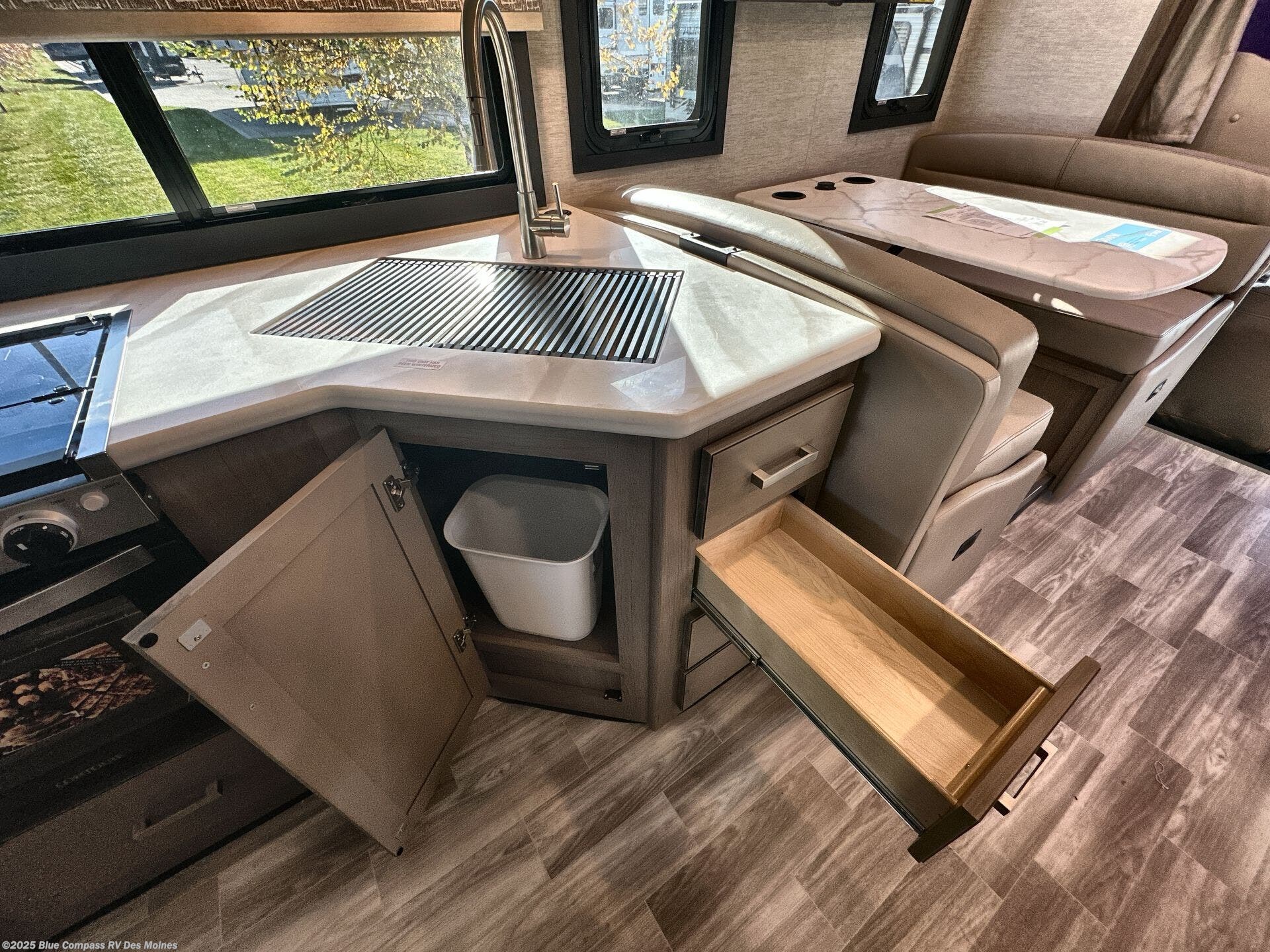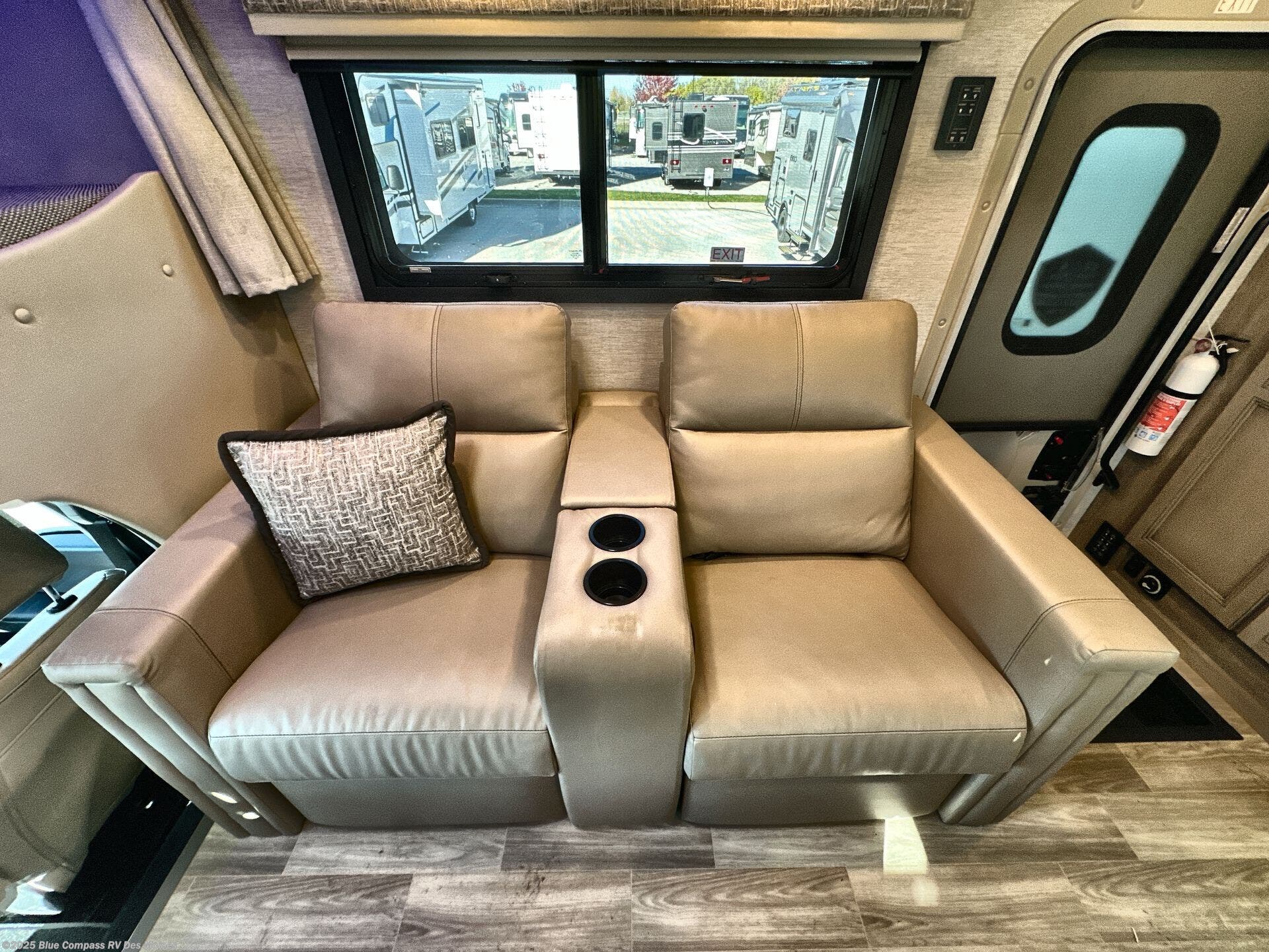 If you've been wanting to travel the country in style, now is the time with this motorhome that can sleep five people each night. The 40" living room Smart TV is directly across from the theater seating for easy viewing, plus there is a 32" bedroom Smart TV and an 32" exterior Smart TV for all your entertainment needs. The Dream Dinette will be the perfect place to enjoy breakfast each morning as you plan out your day, or you may just want to sit at the picnic table under the 14' power awning. This model includes a mid-ship full bath with a shower skylight that will not only provide more natural light, but will give you more head room as you wash up. The rear private bedroom will feel just like home with its 60" x 75" queen bed slide out, plus there is a wardrobe to keep your clothes tidy!