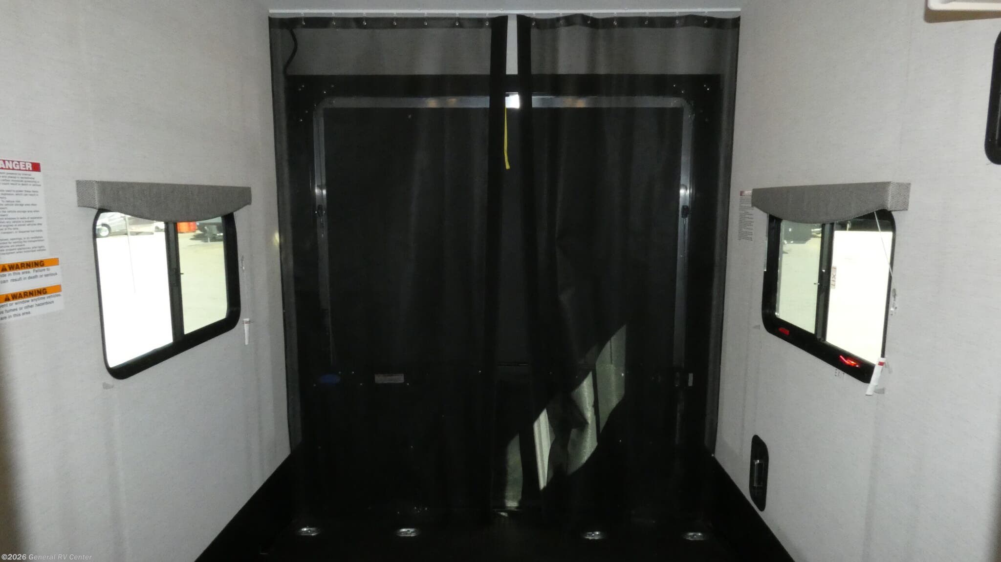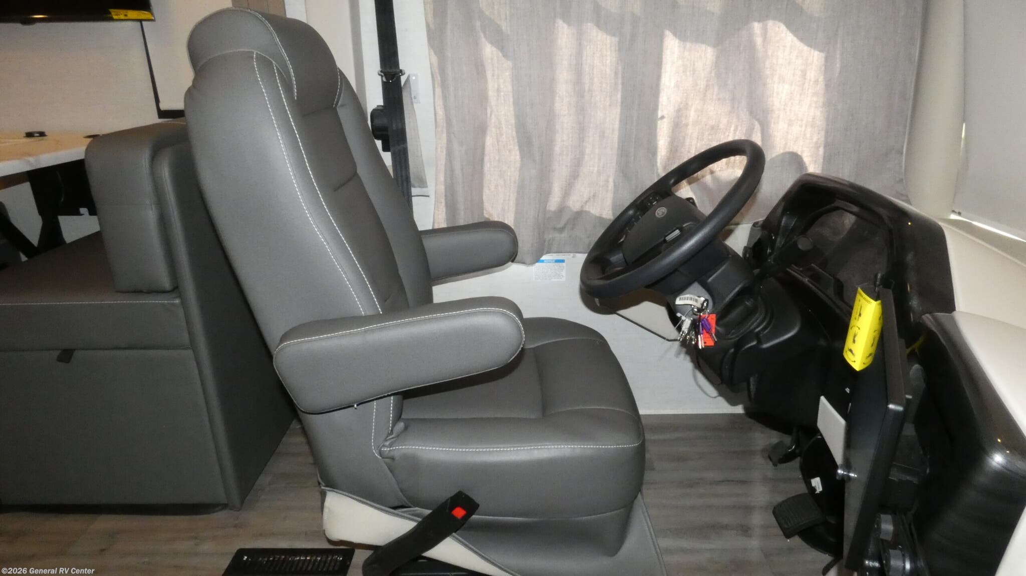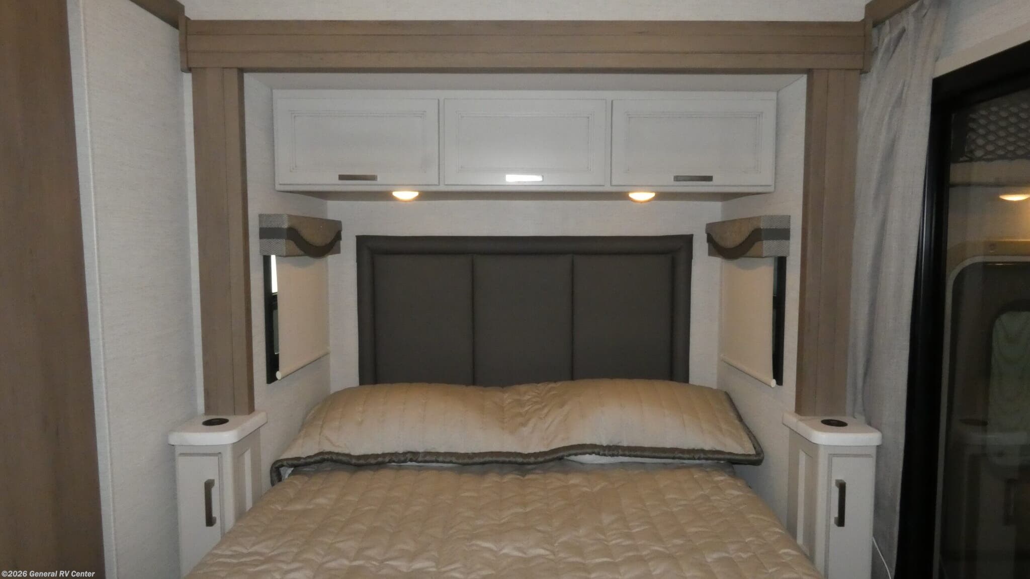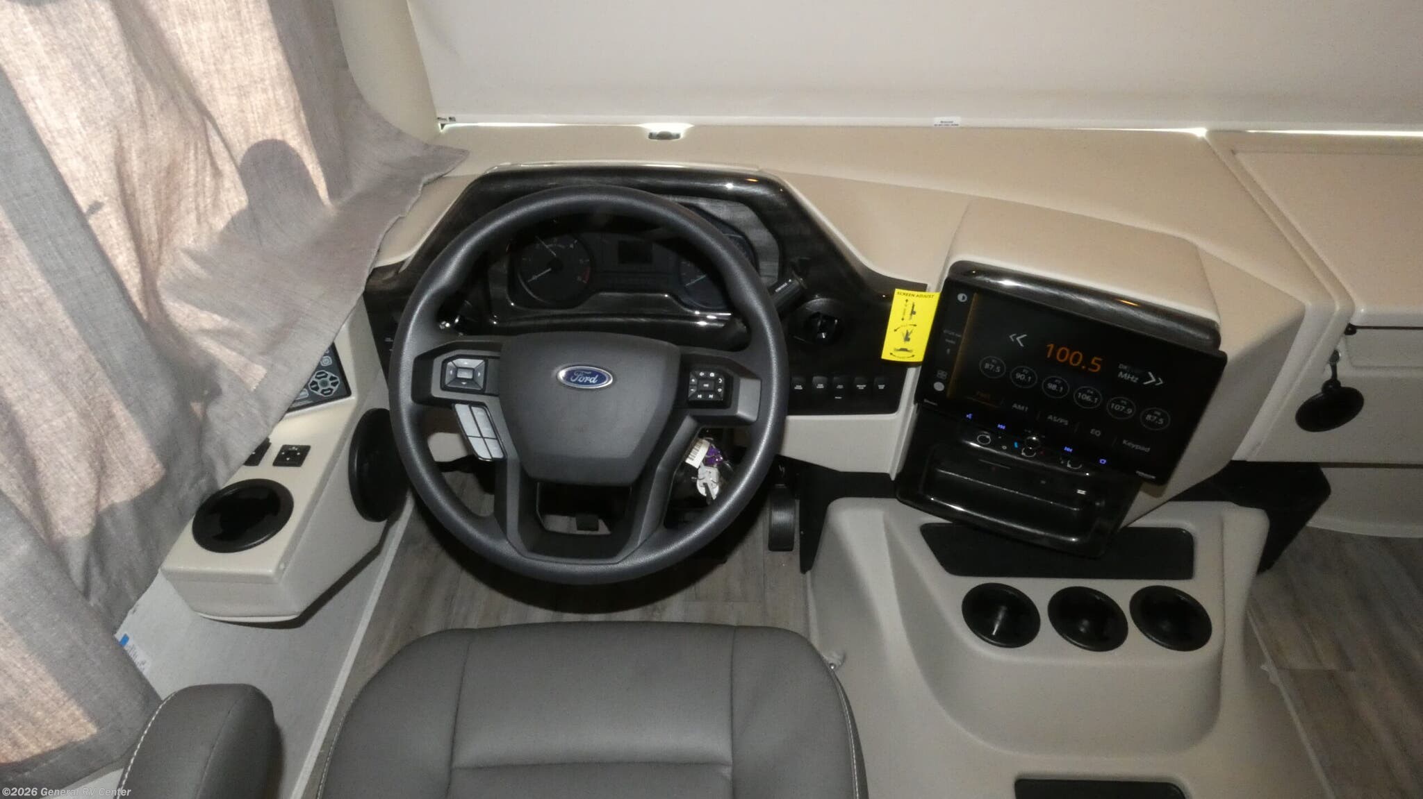 Step into the future of RV living with the 2026 Thor Motor Coach Outlaw 38MB. This dynamic motorhome is designed for those who crave adventure without sacrificing comfort. With the capacity to sleep up to 12, this RV is perfect for family getaways or traveling with friends. The thoughtfully designed floorplan features a front living area with a 72" Dream Dinette, perfect for dining or gathering around for game nights. The center kitchen is equipped with a full-size electric refrigerator and convection cooking, ensuring you can whip up your favorite meals with ease. The Outlaw 38MB shines with its unique features, including a rear garage area that transforms into a versatile patio deck, adding a new dimension to your outdoor experience. The center bedroom offers a cozy queen bed, while multiple convertible sleeping areas provide ample options for guests. With a generous fresh water capacity of 150 gallons and convenient amenities like a washer and dryer, this RV is ready for extended adventures. Powered by a robust Ford F53 chassis with 335 horsepower, the Outlaw ensures a smooth journey wherever the road takes you. For more information, visit your nearest General RV dealership and explore the possibilities of the Thor Outlaw 38MB.