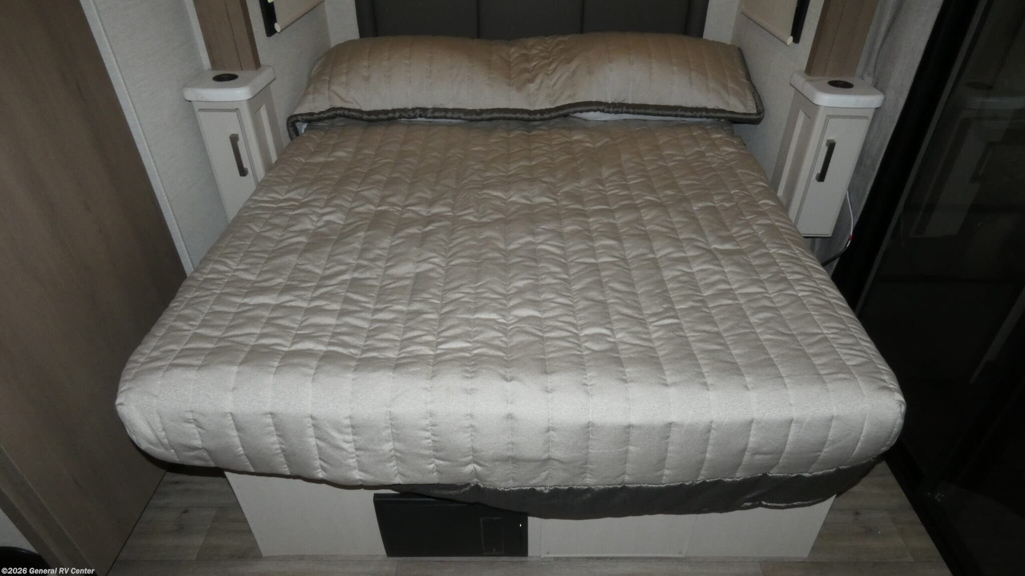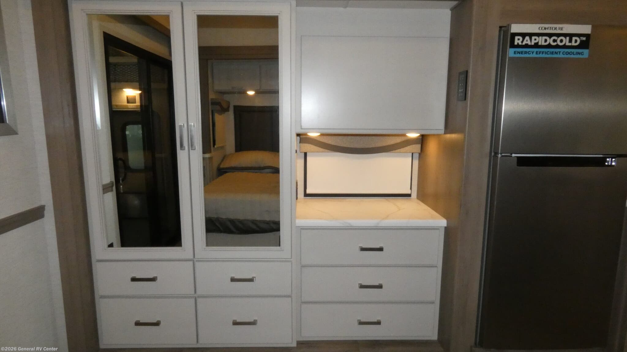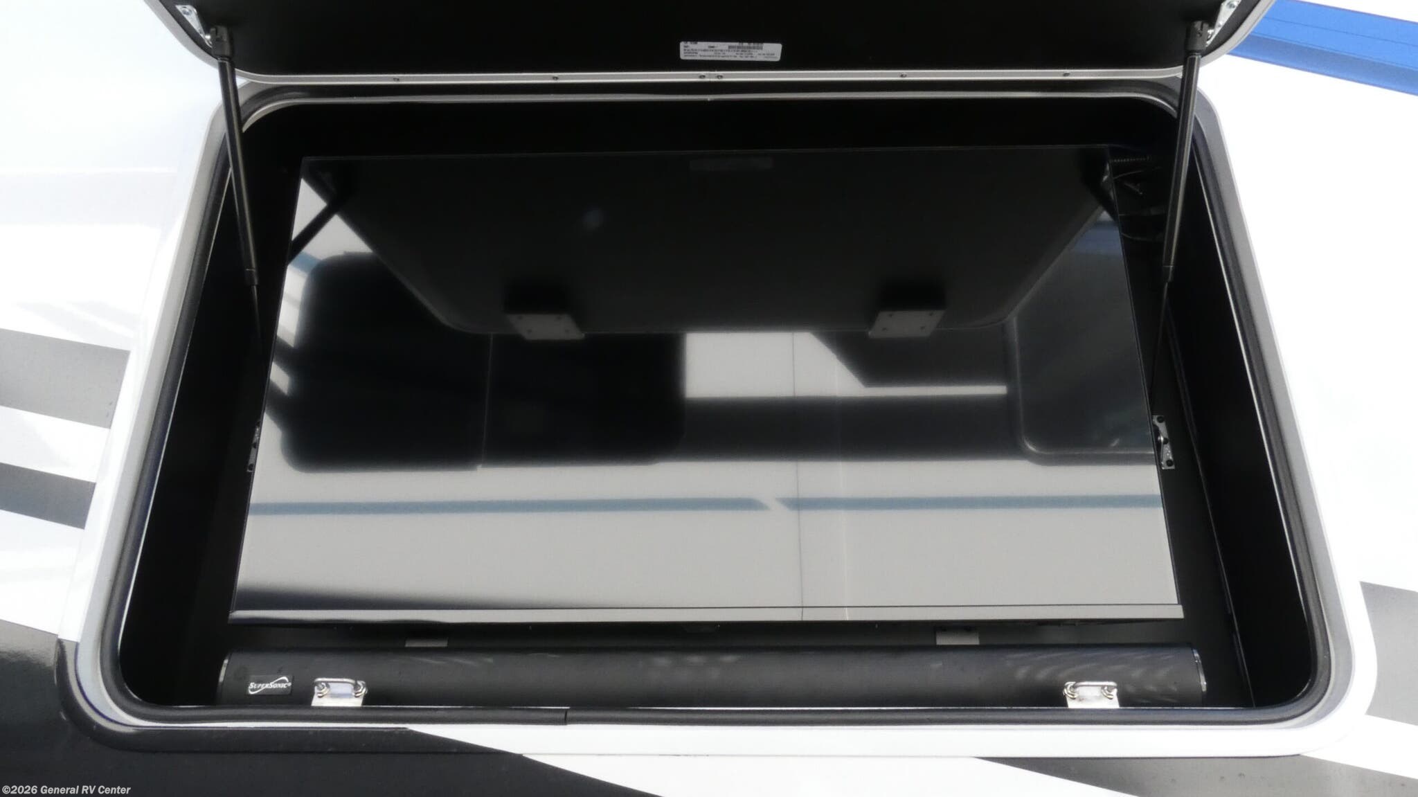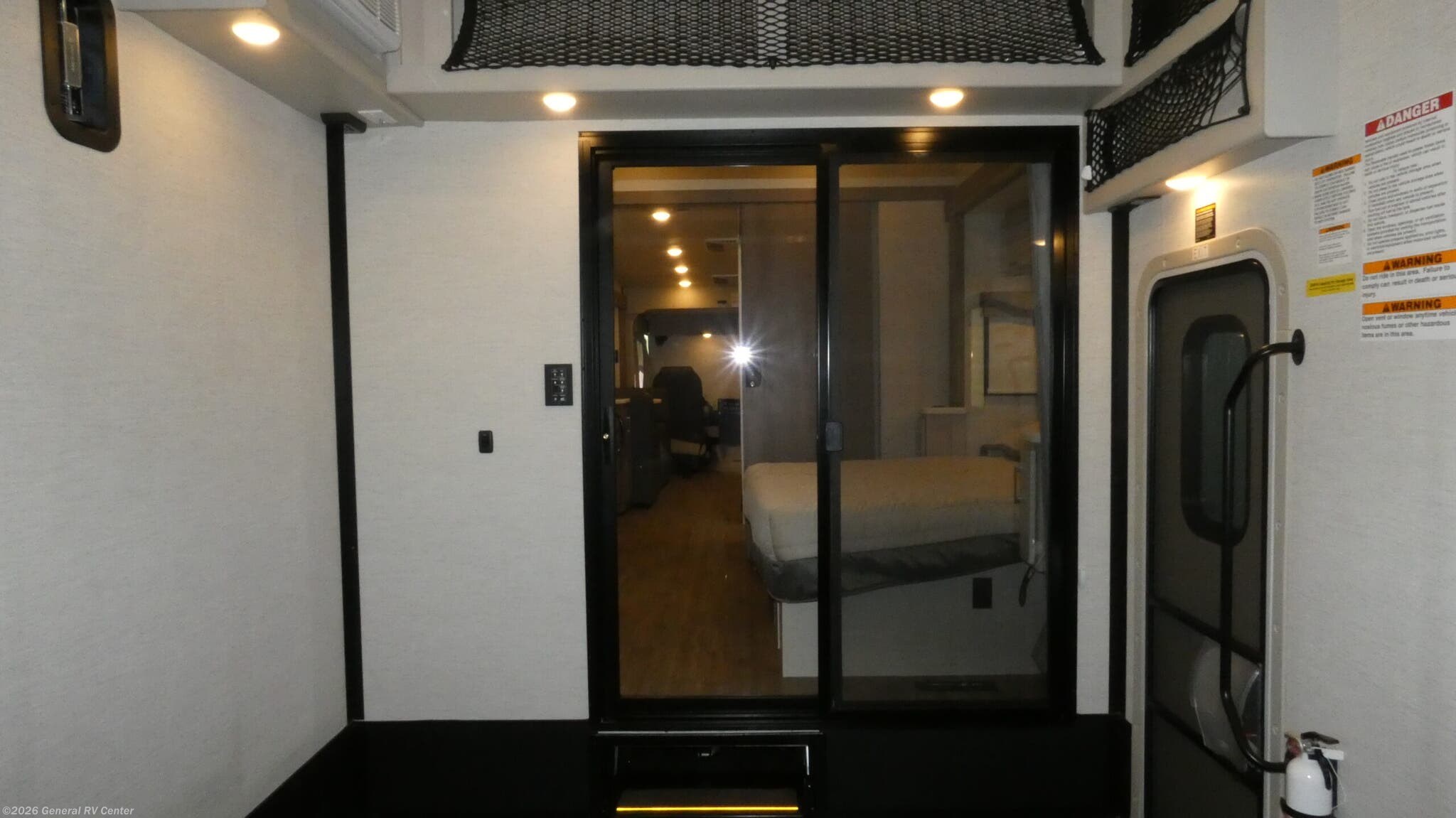 Step into the future of RV living with the 2026 Thor Motor Coach Outlaw 38MB. This dynamic motorhome is designed for those who crave adventure without sacrificing comfort. With the capacity to sleep up to 12, this RV is perfect for family getaways or traveling with friends. The thoughtfully designed floorplan features a front living area with a 72" Dream Dinette, perfect for dining or gathering around for game nights. The center kitchen is equipped with a full-size electric refrigerator and convection cooking, ensuring you can whip up your favorite meals with ease. The Outlaw 38MB shines with its unique features, including a rear garage area that transforms into a versatile patio deck, adding a new dimension to your outdoor experience. The center bedroom offers a cozy queen bed, while multiple convertible sleeping areas provide ample options for guests. With a generous fresh water capacity of 150 gallons and convenient amenities like a washer and dryer, this RV is ready for extended adventures. Powered by a robust Ford F53 chassis with 335 horsepower, the Outlaw ensures a smooth journey wherever the road takes you. For more information, visit your nearest General RV dealership and explore the possibilities of the Thor Outlaw 38MB.