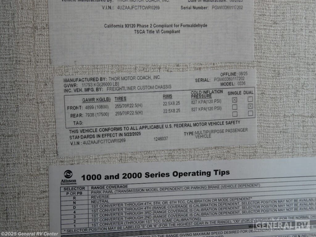 Request More Info on this 2026 Thor Motor Coach Palazzo GT 33.6 Offered for sale by General RV Center