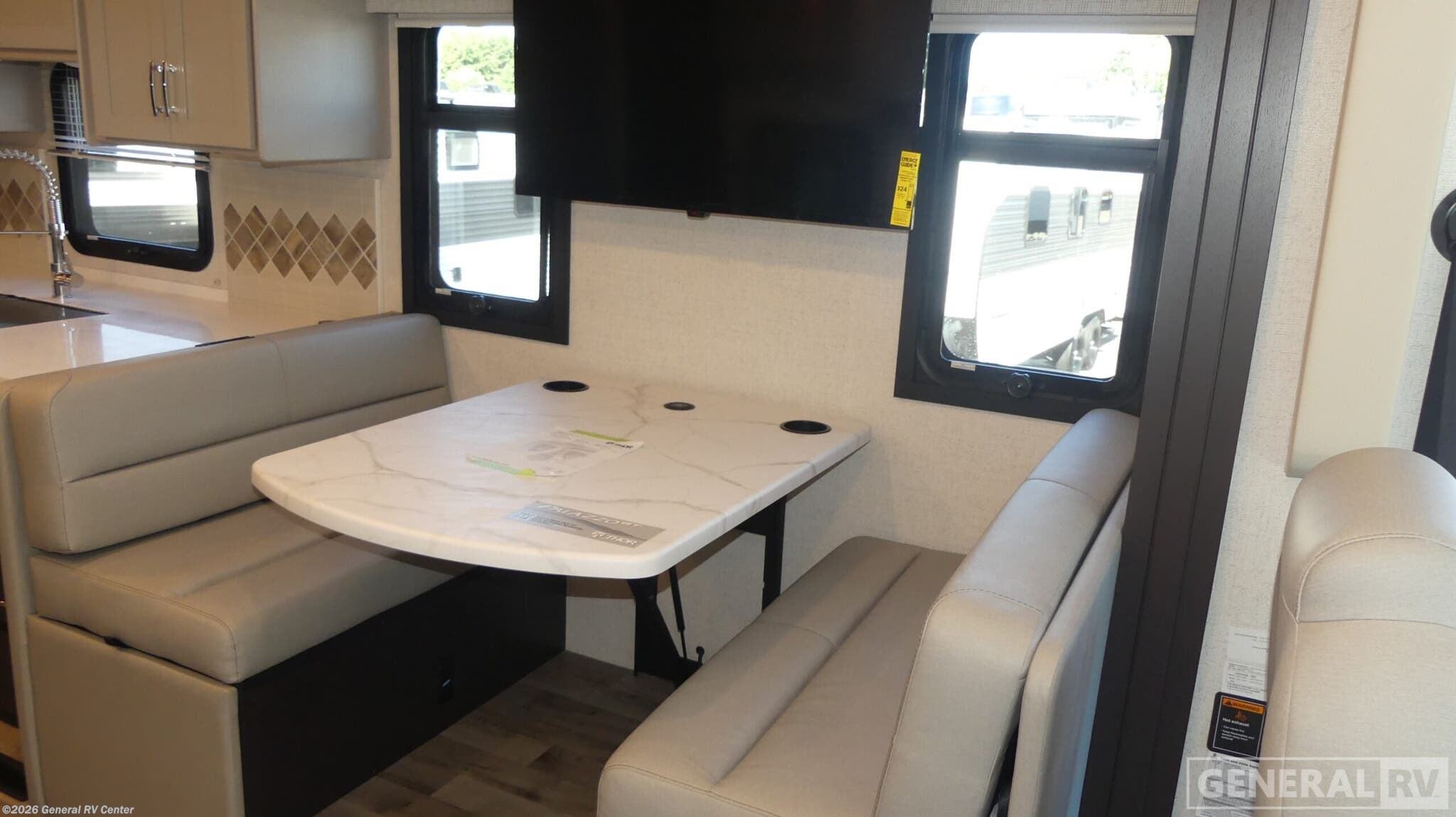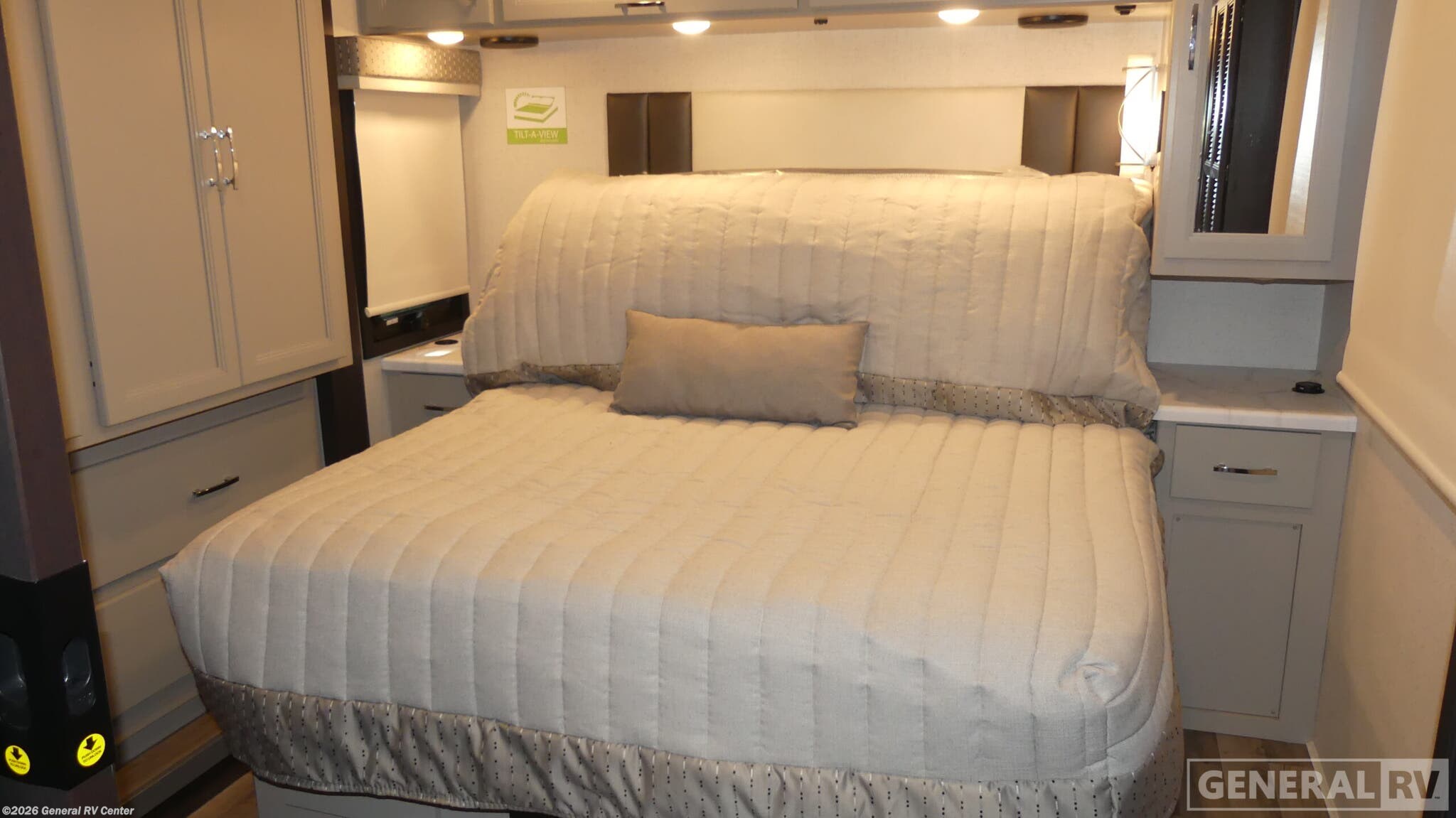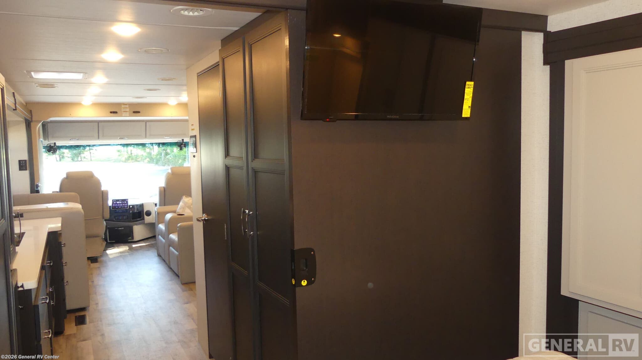 Experience the open road like never before with the 2026 Thor Motor Coach Palazzo GT 33.6. This diesel-powered marvel offers a perfect blend of luxury and functionality, making it your ideal travel companion. With a length of nearly 35 feet, this RV is designed to accommodate up to eight sleepers comfortably, featuring a full-size bed, a queen bed with a Tilt-A-View inclining system, and convertible sleeping areas. The spacious interior layout includes a front living area and a center kitchen, ensuring that you have all the comforts of home while on the move. The Palazzo GT 33.6 is crafted for convenience and style. The center kitchen is equipped with a full-size electric refrigerator, convection cooking, and a two-burner cooktop, allowing you to prepare delicious meals with ease. The living area features an 80" Dream Dinette and a 67" jackknife sofa, perfect for entertaining or relaxing after a day of adventure. With thoughtful touches like the stackable washer/dryer prep, you’ll find everything you need for extended journeys. The powered retractable awning provides an excellent outdoor space, while the exterior TV adds entertainment options for those warm evenings under the stars. Built on a sturdy Freightliner XC-Series chassis and powered by a Cummins I6 Diesel Pusher engine, the Palazzo GT promises a smooth and powerful ride. With a towing capacity of 10,000 pounds and a fuel capacity of 90 gallons, your adventures are limitless. Visit your nearest General RV dealership to explore this remarkable motorhome and start planning your next adventure today!