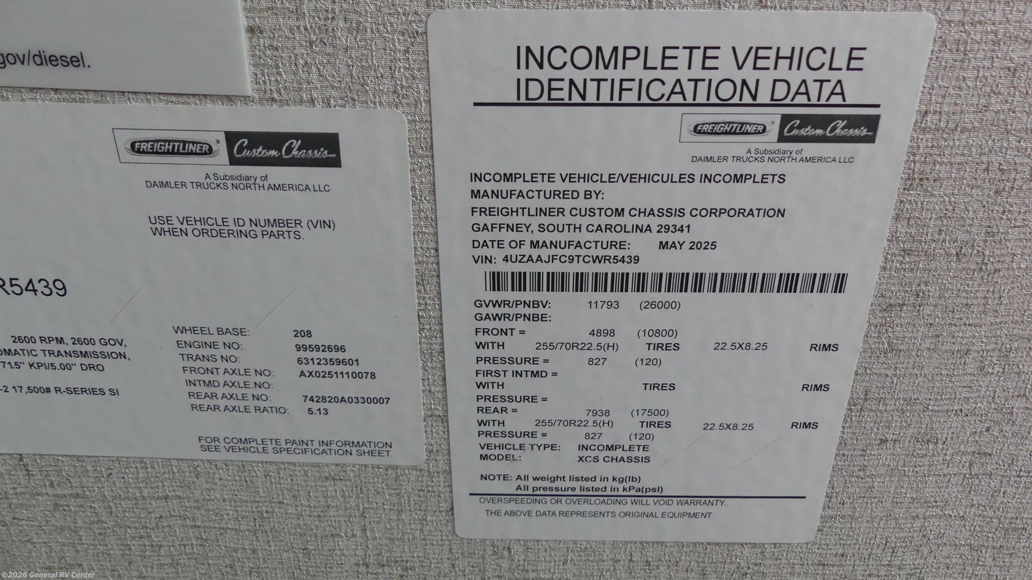 - VIN4UZAAJFC9TCWR5439