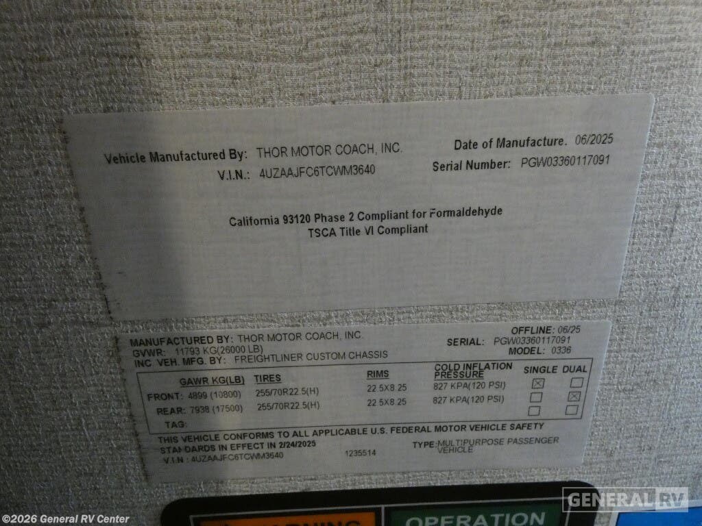 Request More Info on this 2026 Thor Motor Coach Palazzo GT 33.6 Offered for sale by General RV Center