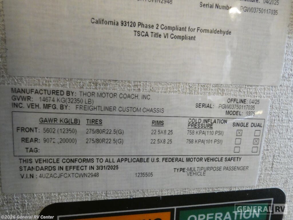 Request More Info on this 2026 Thor Motor Coach Palazzo GT 37.5 Offered for sale by General RV Center