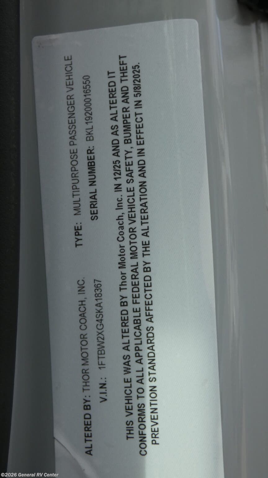 Request More Info on this 2026 Thor Motor Coach Palladium 1920 Offered for sale by General RV Center
