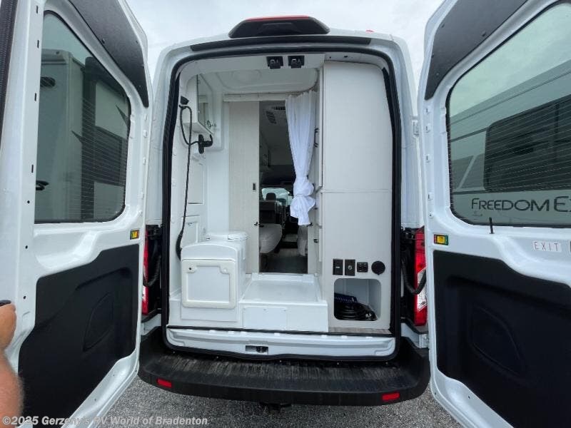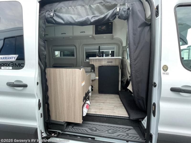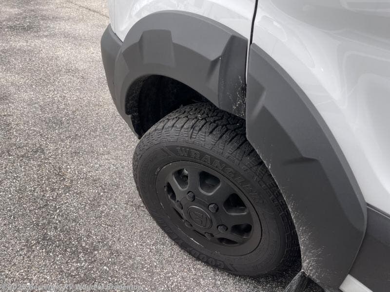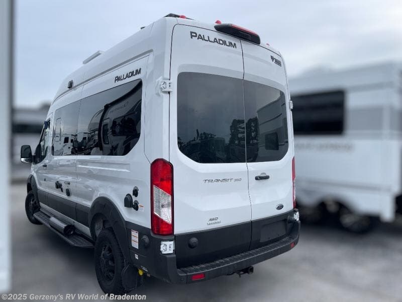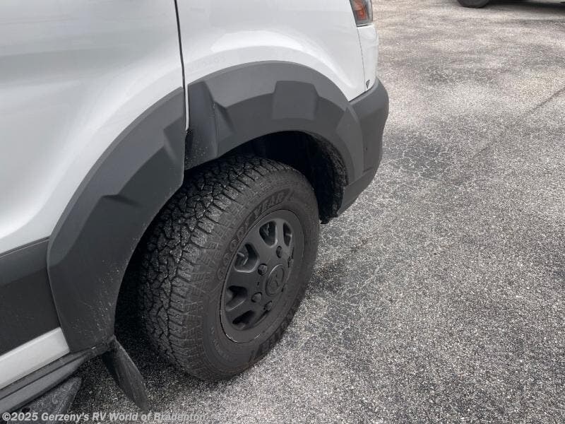 With any Palladium Class B gas motorhome by Thor Motor Coach, you can plan to go off-road with the Ford Transit Trail all-wheel drive chassis with a 3.5" body lift and Goodyear Wrangler Workhorse all-terrain tires. There is invisible front paint protection, a sliding door with an opening window, plus a 6,000 lb. trailer hitch for towing purposes. You will love the Thule lateral arm power awning with integrated LED lighting that will create an inviting outdoor space, and you can add the optional bike rack on the rear door if you plan to hit some trails! These camper vans include vinyl flooring inside, along with flat panel upper cabinet doors, Encompass Shades (cassette shades), large opening side windows, and many more comforts. You will also appreciate the solar charge controller with a 200W solar panel, the Combi Eco (LP) furnace and water heating system, and the FireFly multiplex wiring control system to name a few hassle-free amenities!