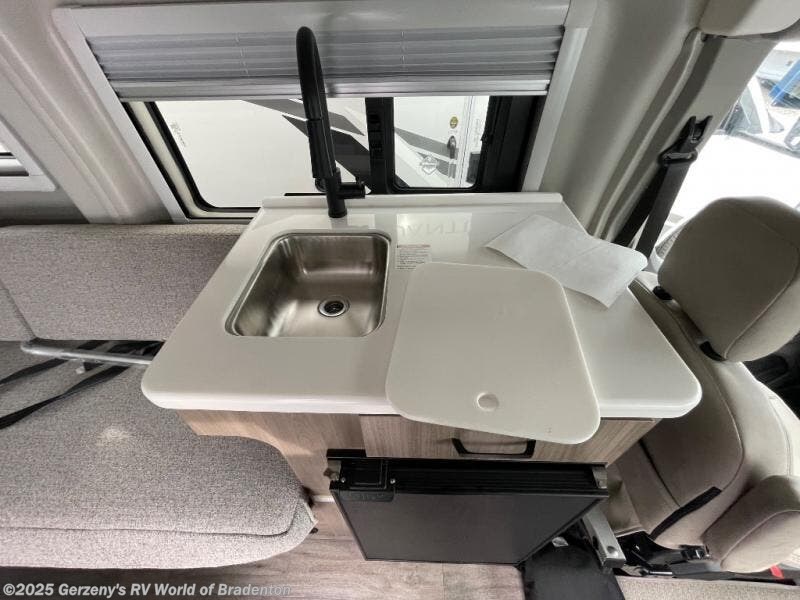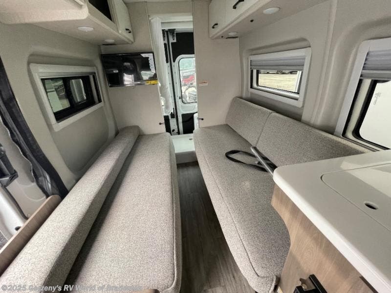 Go on your greatest adventures with this motorhome! After you've been driving all day, you can freshen up in the rear wet bath that includes a closet to keep everything tidy. There is a single burner induction portable cooktop and microwave oven to prepare meals, plus a single door 12V electric refrigerator for food storage. You will also appreciate the 10' Thule awning with LED lights to protect you rain or shine. Inside, you'll find 51" x 74" twin bed sleeper sofas with a lagun table system to move the table where you like it, and there is a 24" Smart TV so you can watch a movie if you choose.