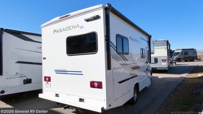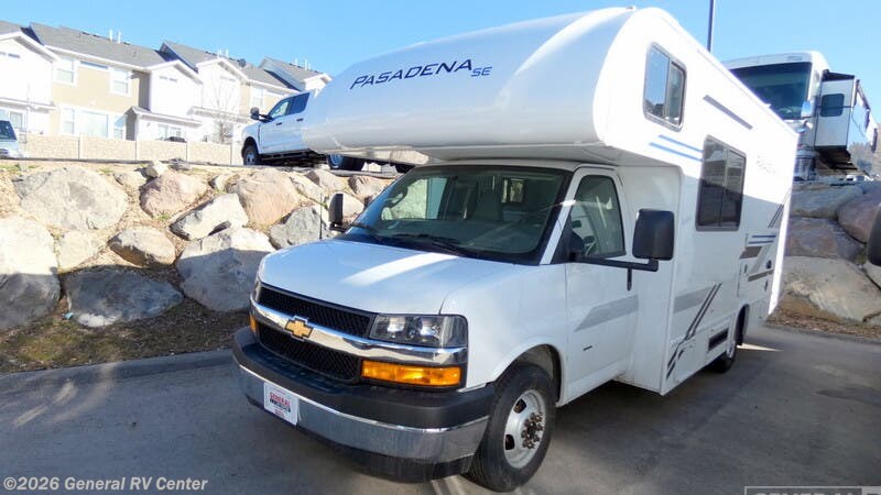 **Thor Motor Coach Pasadena SE Class C gas motorhome SE21 Chevy highlights:** - Full-Size Bed - Closet - Dream Dinette - Cab-Over Bunk It won't be hard to find comfort in this coach for five! You can freshen up in the rear corner full bath once you've set up camp, then make lunch on the two burner gas cooktop or convection microwave with an air fryer. There is also a 12V refrigerator for cold items and a flip-up countertop for more space. Whether you dine at the Dream Dinette or take your plate outdoors under the 15' power awning, you're sure to have a great time in this motorhome. The rear corner full-size bed will provide a comfy place to rest your head at night, while your guests take the dinette and cab-over bunk! With any Pasadena SE Class C gas motorhome by Thor Motor Coach, you will find convenient amenities, a modern interior, and a reliable Chevy chassis. There is a one-piece fiberglass front cap, and premium one-piece roofing for added strength. Residential vinyl flooring will be easy to keep clean, and you'll love the LED lighting, pressed laminate countertops throughout, and full-extensions ball-bearing drawer guides. These motorhomes also include a generator and a 30-amp shoreline power cord to keep you going, along with a tankless water heater to ensure your comfort!