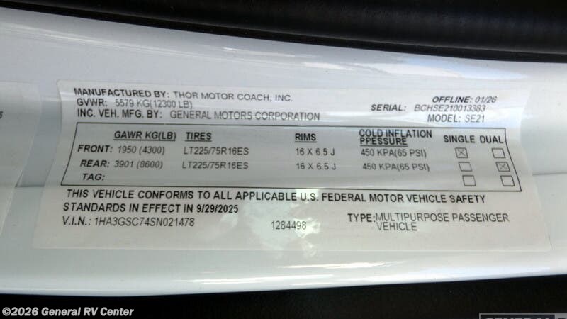 Request More Info on this 2026 Thor Motor Coach Pasadena SE SE21 Chevy Offered for sale by General RV Center