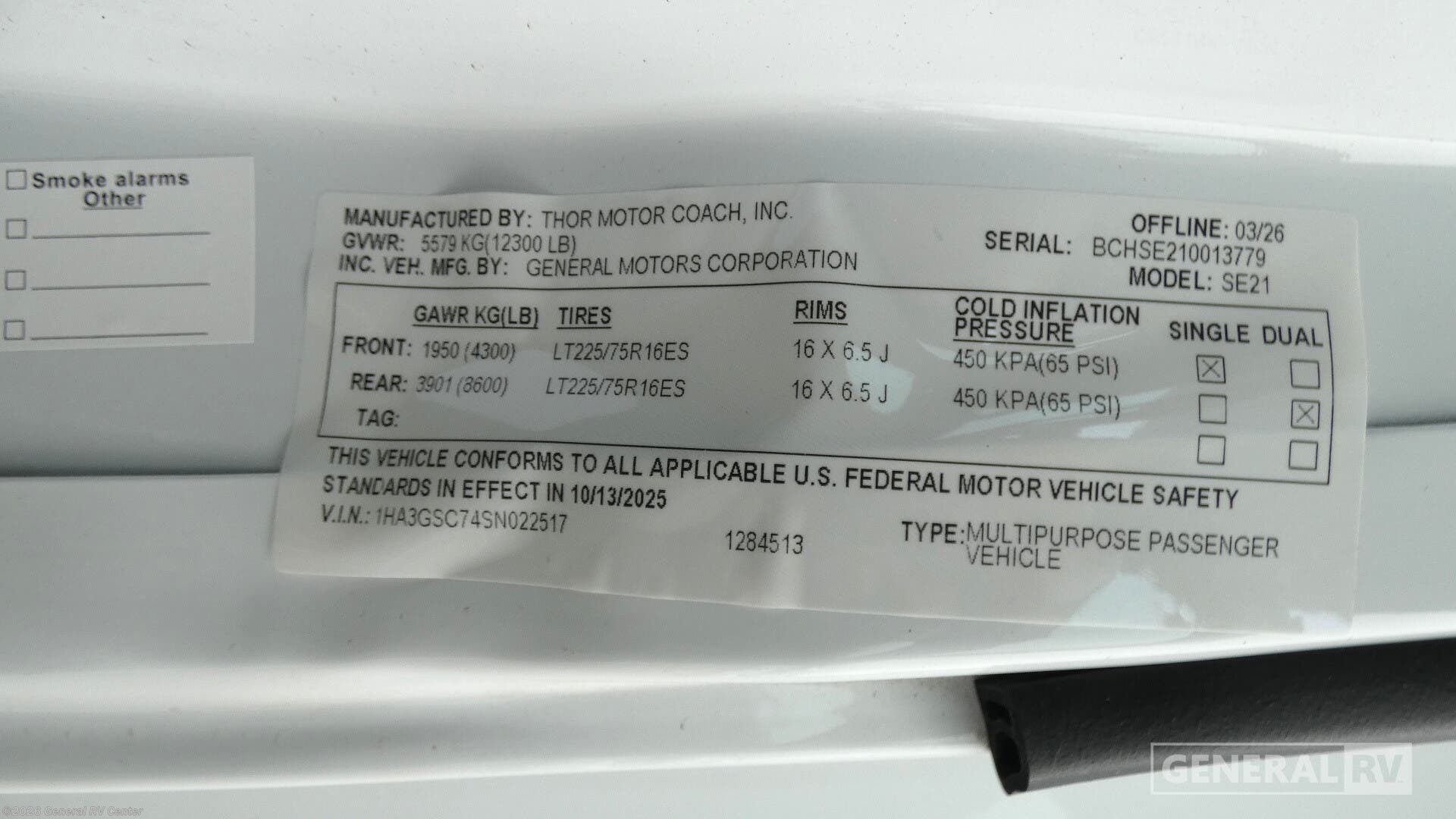 2026 Thor Motor Coach Pasadena SE SE21 Chevy Features