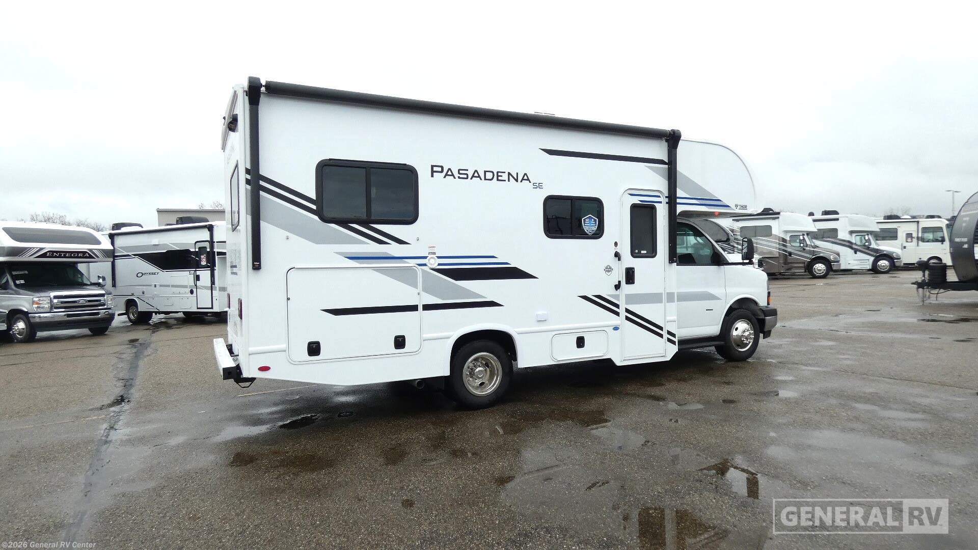 **Thor Motor Coach Pasadena SE Class C gas motorhome SE21 Chevy highlights:** - Full-Size Bed - Closet - Dream Dinette - Cab-Over Bunk It won't be hard to find comfort in this coach for five! You can freshen up in the rear corner full bath once you've set up camp, then make lunch on the two burner gas cooktop or convection microwave with an air fryer. There is also a 12V refrigerator for cold items and a flip-up countertop for more space. Whether you dine at the Dream Dinette or take your plate outdoors under the 15' power awning, you're sure to have a great time in this motorhome. The rear corner full-size bed will provide a comfy place to rest your head at night, while your guests take the dinette and cab-over bunk! With any Pasadena SE Class C gas motorhome by Thor Motor Coach, you will find convenient amenities, a modern interior, and a reliable Chevy chassis. There is a one-piece fiberglass front cap, and premium one-piece roofing for added strength. Residential vinyl flooring will be easy to keep clean, and you'll love the LED lighting, pressed laminate countertops throughout, and full-extensions ball-bearing drawer guides. These motorhomes also include a generator and a 30-amp shoreline power cord to keep you going, along with a tankless water heater to ensure your comfort!