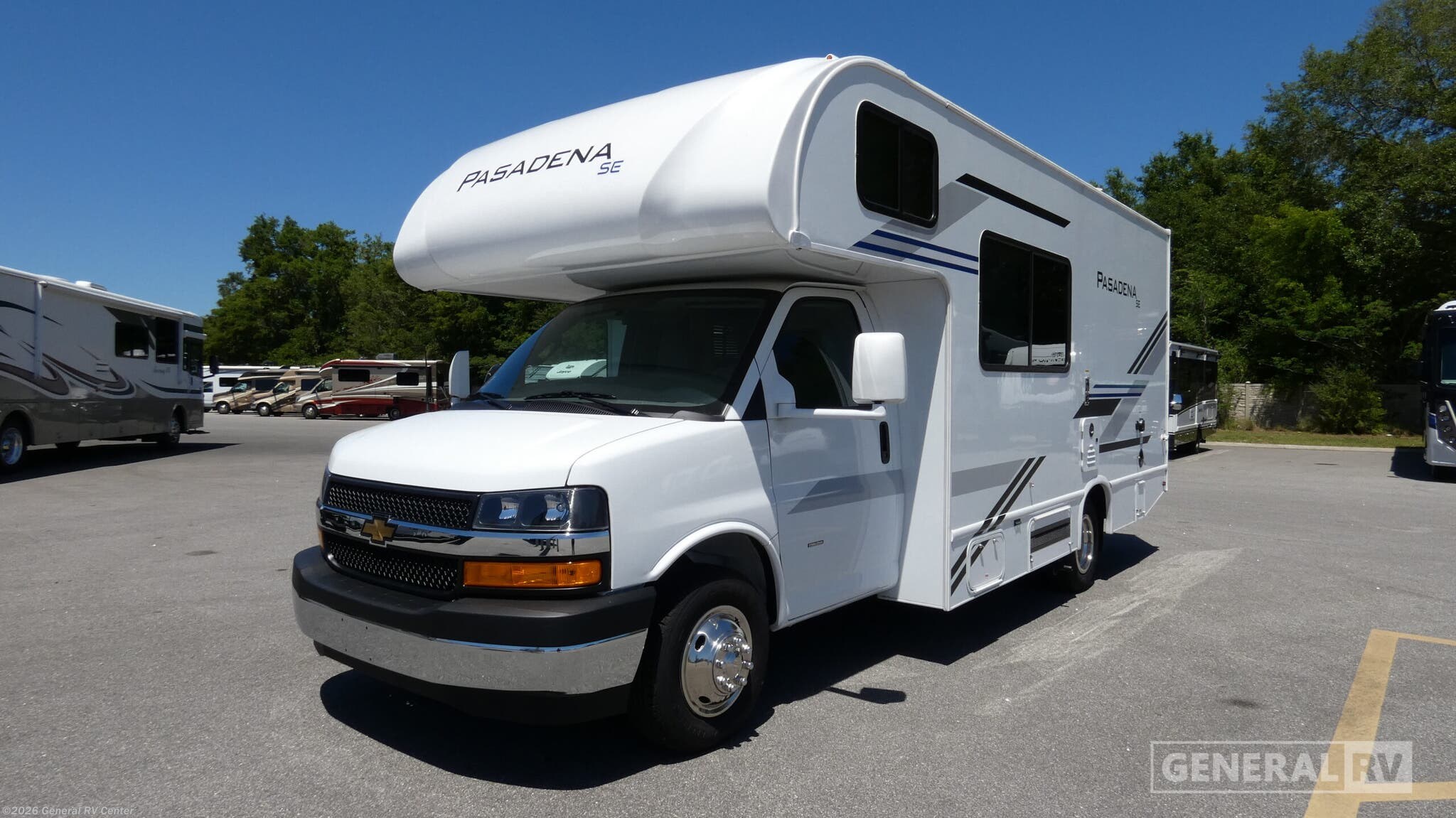 **Thor Motor Coach Pasadena SE Class C gas motorhome SE21 highlights: - Full-Size Bed - Closet - Dream Dinette - Cab-Over Bunk It won't be hard to find comfort in this coach for five! You can freshen up in the rear corner full bath once you've set up camp, then make lunch on the two burner gas cooktop or convection microwave with an air fryer. There is also a 12V refrigerator for cold items and a flip-up countertop for more space. Whether you dine at the Dream Dinette or take your plate outdoors under the 15' power awning, you're sure to have a great time in this motorhome. The rear corner full-size bed will provide a comfy place to rest your head at night, while your guests take the dinette and cab-over bunk! With any Pasadena SE Class C gas motorhome by Thor Motor Coach, you will find convenient amenities, a modern interior, and a reliable Ford E-Series chassis, with an optional Chevy chassis on select models to power your adventures. There is a one-piece fiberglass front cap, and premium one-piece roofing for added strength. Residential vinyl flooring will be easy to keep clean, and you'll love the LED lighting, pressed laminate countertops throughout, and full-extensions ball-bearing drawer guides. These motorhomes also include a 4.0 kW gas generator and a 30-amp shoreline power cord to keep you going, along with a tankless water heater to ensure your comfort!