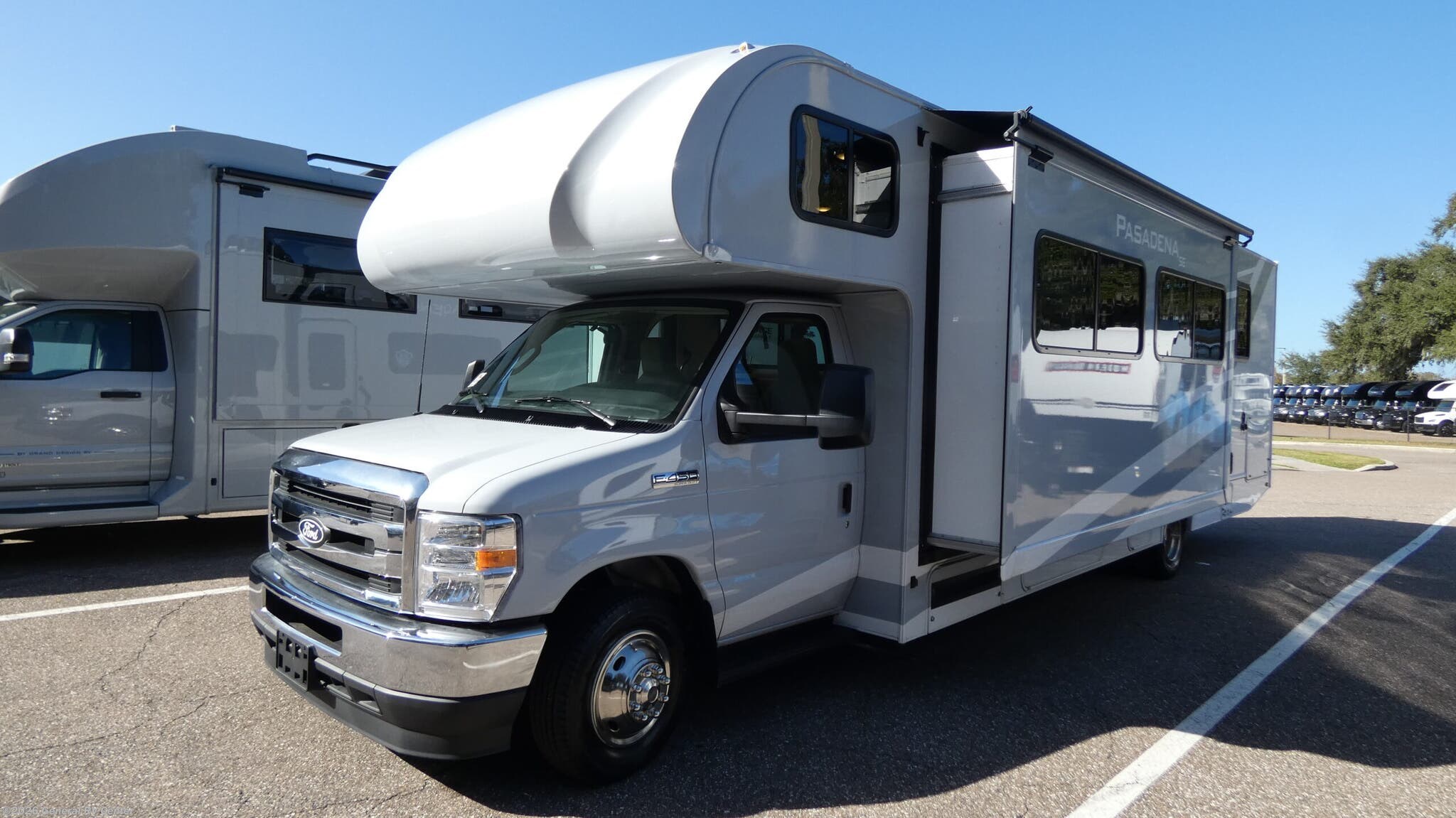 Thor Motor Coach Pasadena SE Class C gas motorhome SH31 highlights: Rear Bedroom 71" Dream Dinette 24" x 36" Shower 12V Refrigerator Exterior Kitchen You're sure to have a great time in this coach that can sleep six each night! The rear bedroom includes an RV queen bed and dual closets to keep your things organized, plus the bath is close by for easy nighttime use. Here, you'll find a private toilet and sink, with the independent shower right across the hall. Your guests can sleep on the dream dinette within the large slide out, or the cab-over bunk up front! A three burner gas cooktop and microwave oven will let you make meals for your crew, and a 12V refrigerator will keep perishables fresh. This unit also includes an exterior kitchen, allowing you to cook in the open fresh air! With any Pasadena SE Class C gas motorhome by Thor Motor Coach, you will find convenient amenities, a modern interior, and a reliable Ford E-Series chassis on select models to power your adventures. There is a one-piece fiberglass front cap, and premium one-piece roofing for added strength. Residential vinyl flooring will be easy to keep clean, and you'll love the LED lighting, pressed laminate countertops throughout, and full-extensions ball-bearing drawer guides. These motorhomes also include a generator and a 30-amp shoreline power cord to keep you going, along with a tankless water heater to ensure your comfort!