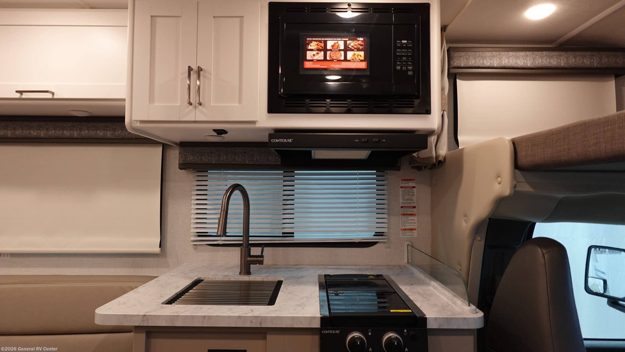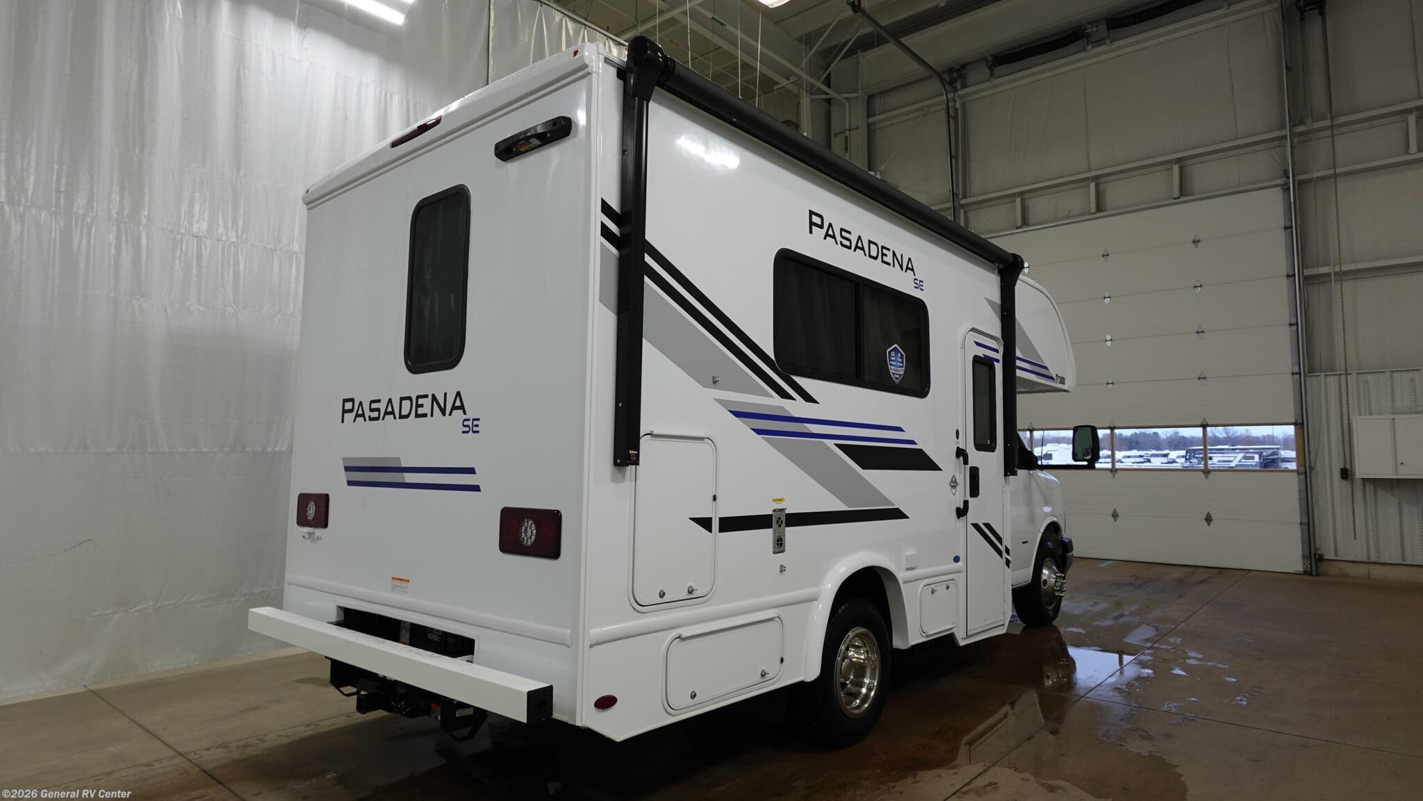 Thor Motor Coach Pasadena SE Class C gas motorhome SX19 Chevy highlights: Twin Beds - Converts to Full Wetbath Cab-Over Bunk Solar Prep It won't be hard to find comfort in this coach for three! You can freshen up in the rear wetbath once you've set up camp, then make lunch on the two burner gas cooktop or convection microwave with an air fryer. There is also a 12V refrigerator for cold items and a flip-up countertop for more space. Whether you dine at the removable tables or take your plate outdoors under the 12' power patio awning with integrated LED lighting, you're sure to have a great time in this motorhome. The mid-coach bedroom boasts two twin beds with a full-size bed conversion, plus there is a 32" Smart TV on manual swivel over the cab if you want the option to watch shows in bed. And any guests you may have can sleep on the 52" x 91" cab-over sleeping space! With any Pasadena SE Class C gas motorhome by Thor Motor Coach, you will find convenient amenities, a modern interior, and a reliable Chevy chassis. There is a one-piece fiberglass front cap, and premium one-piece roofing for added strength. Residential vinyl flooring will be easy to keep clean, and you'll love the LED lighting, pressed laminate countertops throughout, and full-extensions ball-bearing drawer guides. These motorhomes also include a generator and a 30-amp shoreline power cord to keep you going, along with a tankless water heater to ensure your comfort!