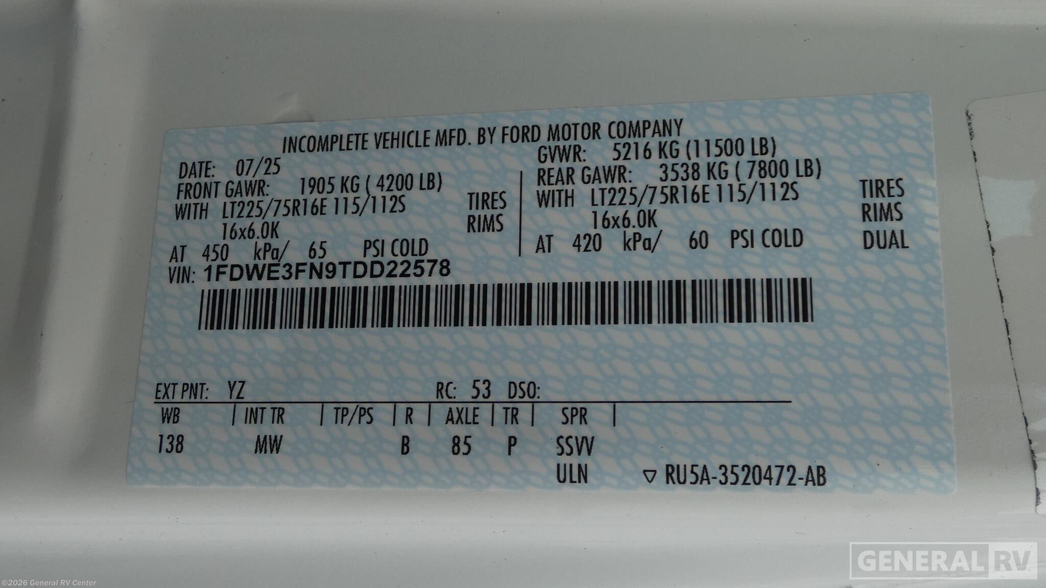 - VIN1FDWE3FN9TDD22578