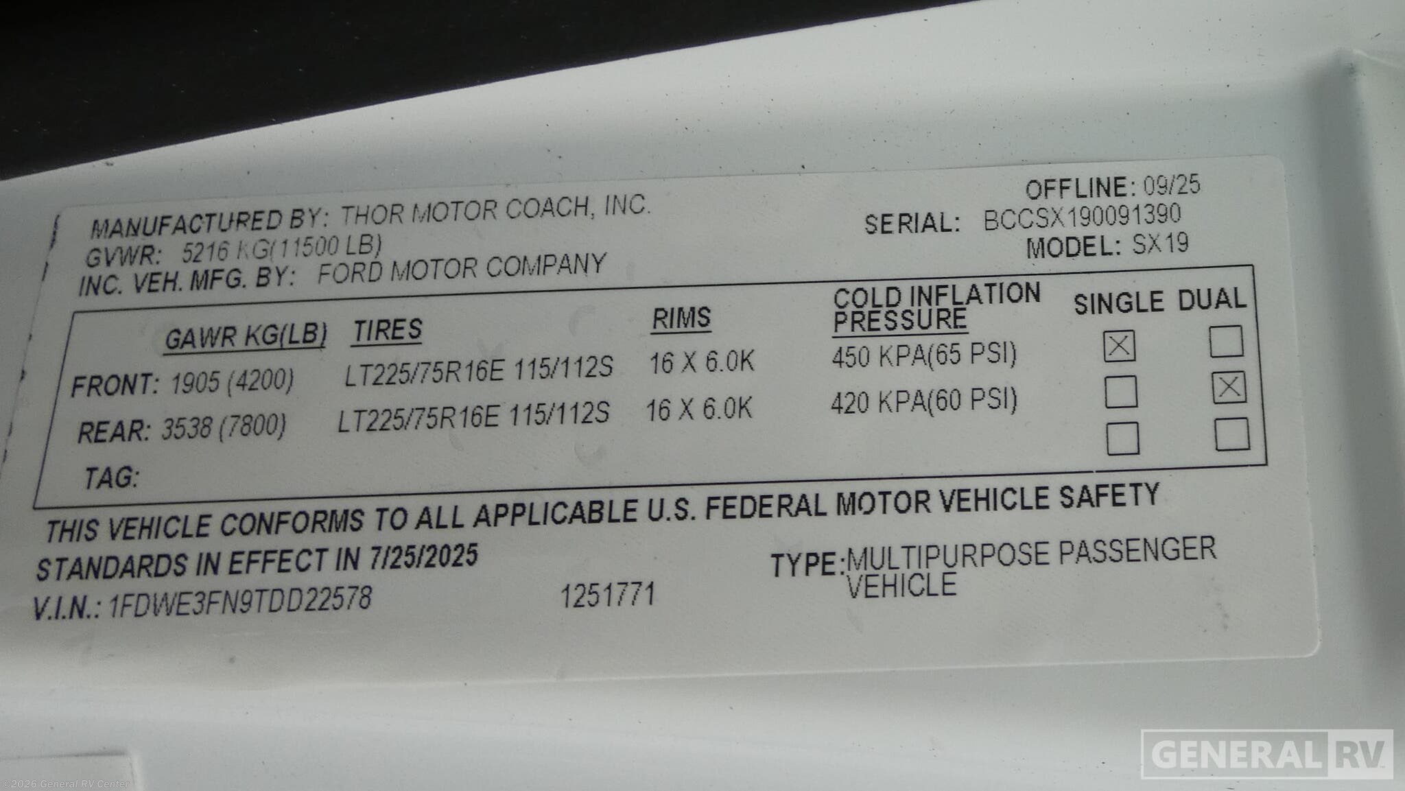 Request More Info on this 2026 Thor Motor Coach Pasadena SE SX19 Ford Offered for sale by General RV Center