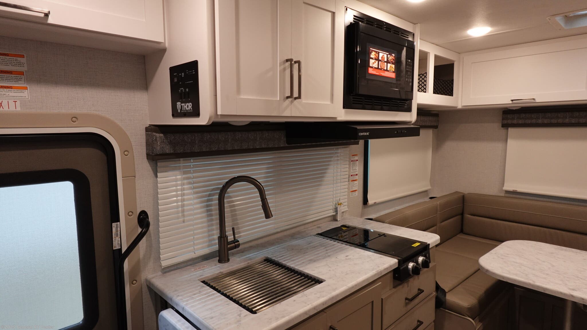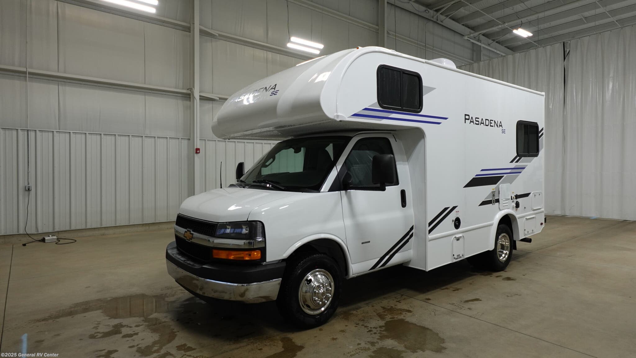 Thor Motor Coach Pasadena SE Class C gas motorhome SE19 Chevy highlights: U-Shaped Dinette with Bed Conversion Wet Bath Flip-Up Countertop Cab TV with Swivel This compact, yet cozy coach is perfect for trips to the campground each weekend! Once you've reached your destination, you can set up the 11' power awning, unload the exterior storage compartments, and relax in your camp chairs. The two burner gas cooktop and convection microwave with an air fryer will let you make meals each day, and there is a 12V refrigerator to keep food fresh. A flip-up counter is another great feature that will give you more prep space! You can freshen up in the wet bath, grab your night clothes from the closet, then convert the U-shaped dinette into a 54" x 77" bed for a great night's rest! With any Pasadena SE Class C gas motorhome by Thor Motor Coach, you will find convenient amenities, a modern interior, and a reliable Ford E-Series chassis, with an optional Chevy chassis on select models to power your adventures. There is a one-piece fiberglass front cap, and premium one-piece roofing for added strength. Residential vinyl flooring will be easy to keep clean, and you'll love the LED lighting, pressed laminate countertops throughout, and full-extensions ball-bearing drawer guides. These motorhomes also include a 4.0 kW gas generator and a 30-amp shoreline power cord to keep you going, along with a tankless water heater to ensure your comfort!