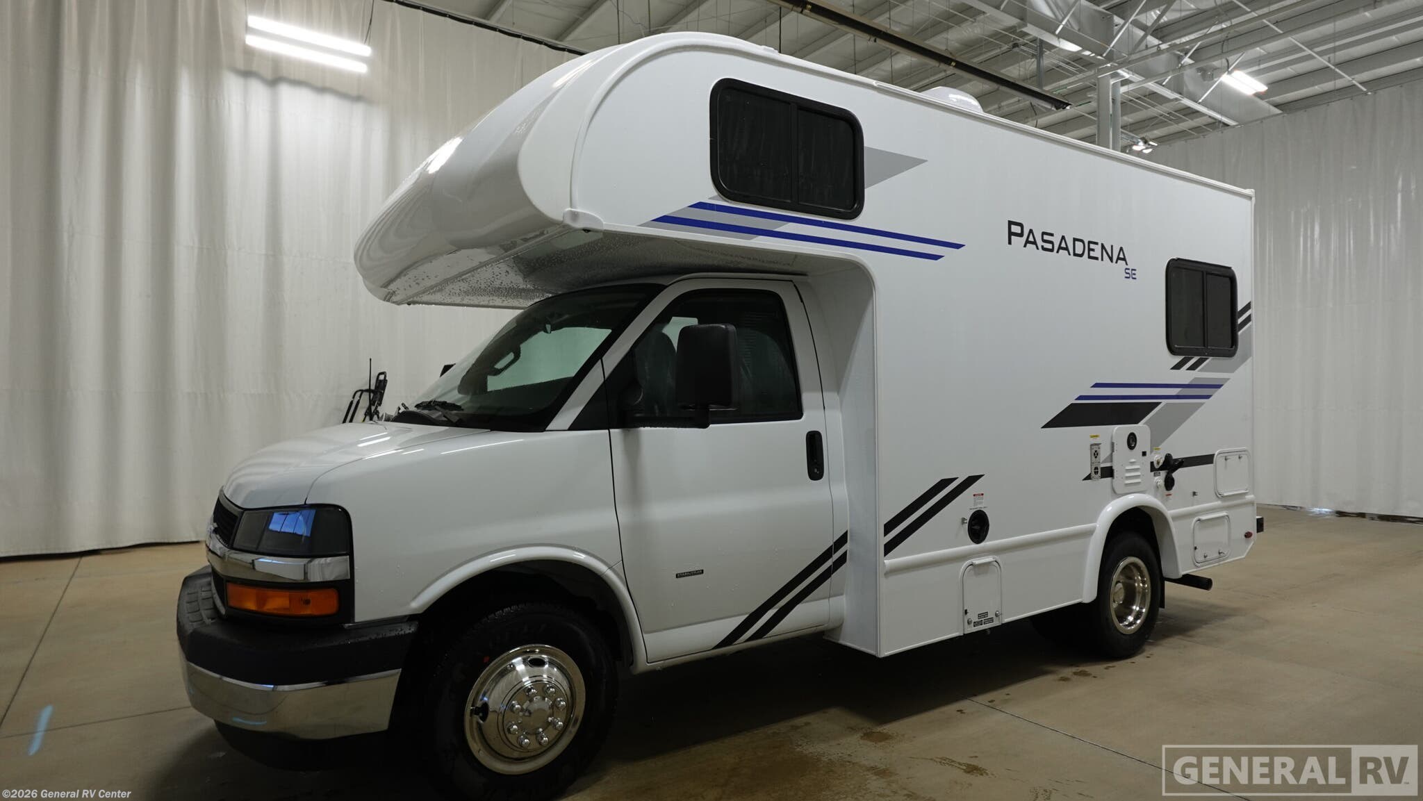 Thor Motor Coach Pasadena SE Class C gas motorhome SE19 Chevy highlights: U-Shaped Dinette with Bed Conversion Wet Bath Flip-Up Countertop Cab TV with Swivel This compact, yet cozy coach is perfect for trips to the campground each weekend! Once you've reached your destination, you can set up the 11' power awning, unload the exterior storage compartments, and relax in your camp chairs. The two burner gas cooktop and convection microwave with an air fryer will let you make meals each day, and there is a 12V refrigerator to keep food fresh. A flip-up counter is another great feature that will give you more prep space! You can freshen up in the wet bath, grab your night clothes from the closet, then convert the U-shaped dinette into a 54" x 77" bed for a great night's rest! With any Pasadena SE Class C gas motorhome by Thor Motor Coach, you will find convenient amenities, a modern interior, and a reliable Ford E-Series chassis, with an optional Chevy chassis on select models to power your adventures. There is a one-piece fiberglass front cap, and premium one-piece roofing for added strength. Residential vinyl flooring will be easy to keep clean, and you'll love the LED lighting, pressed laminate countertops throughout, and full-extensions ball-bearing drawer guides. These motorhomes also include a 4.0 kW gas generator and a 30-amp shoreline power cord to keep you going, along with a tankless water heater to ensure your comfort!