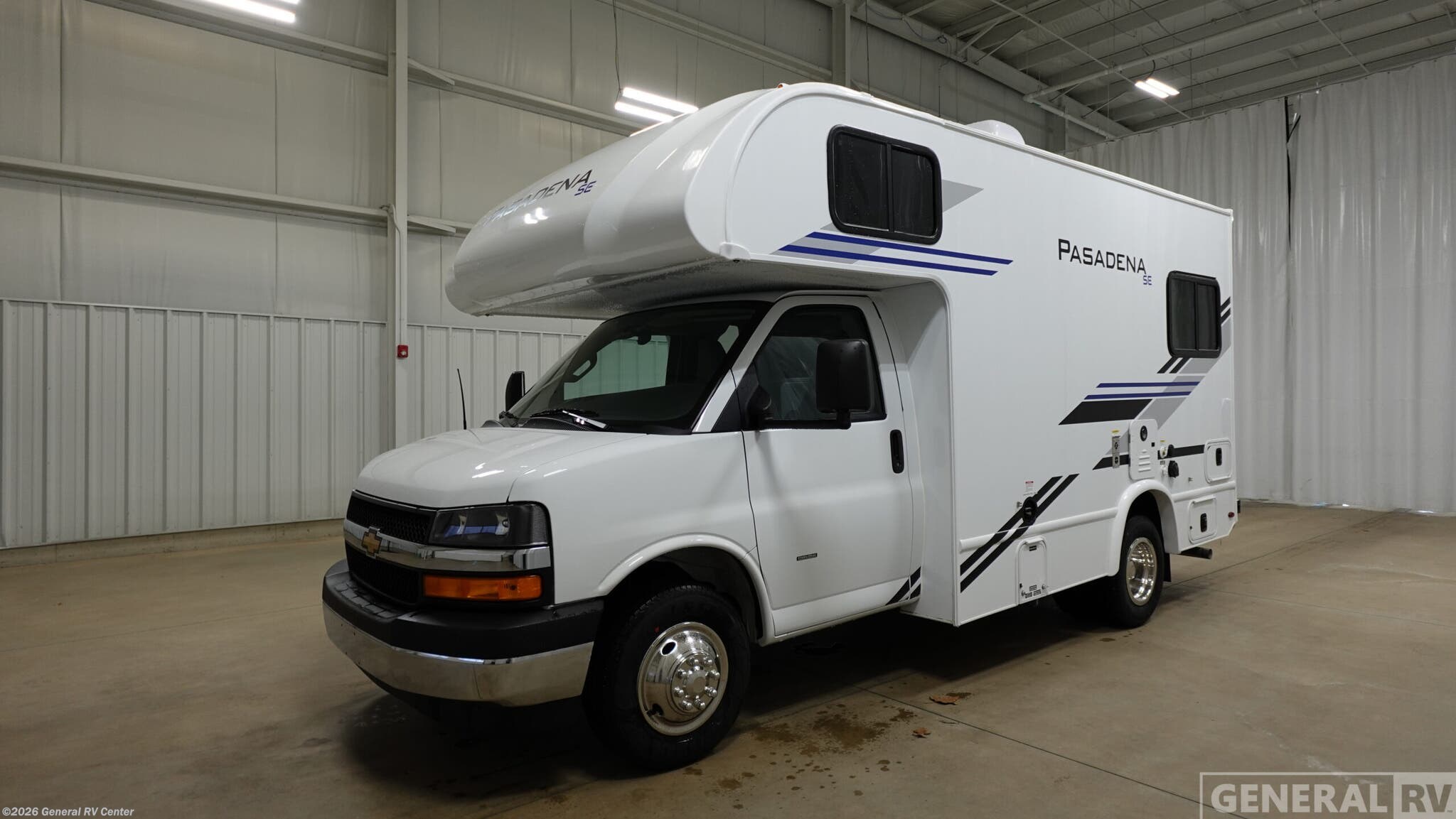 **Thor Motor Coach Pasadena SE Class C gas motorhome SE19 Chevy highlights:** * U-Shaped Dinette with Bed Conversion * Wet Bath * Flip-Up Countertop * Cab TV with Swivel This compact, yet cozy coach is perfect for trips to the campground each weekend! Once you've reached your destination, you can set up the 11' power awning, unload the exterior storage compartments, and relax in your camp chairs. The two burner gas cooktop and convection microwave with an air fryer will let you make meals each day, and there is a 12V refrigerator to keep food fresh. A flip-up counter is another great feature that will give you more prep space! You can freshen up in the wet bath, grab your night clothes from the closet, then convert the U-shaped dinette into a 54" x 77" bed for a great night's rest! With any Pasadena SE Class C gas motorhome by Thor Motor Coach, you will find convenient amenities, a modern interior, and a reliable Ford E-Series chassis, with an optional Chevy chassis on select models to power your adventures. There is a one-piece fiberglass front cap, and premium one-piece roofing for added strength. Residential vinyl flooring will be easy to keep clean, and you'll love the LED lighting, pressed laminate countertops throughout, and full-extensions ball-bearing drawer guides. These motorhomes also include a 4.0 kW gas generator and a 30-amp shoreline power cord to keep you going, along with a tankless water heater to ensure your comfort!