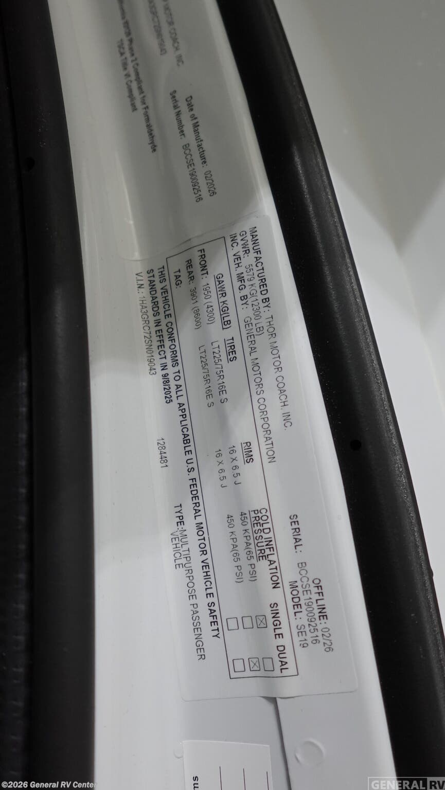 Request More Info on this 2026 Thor Motor Coach Pasadena SE19 Offered for sale by General RV Center
