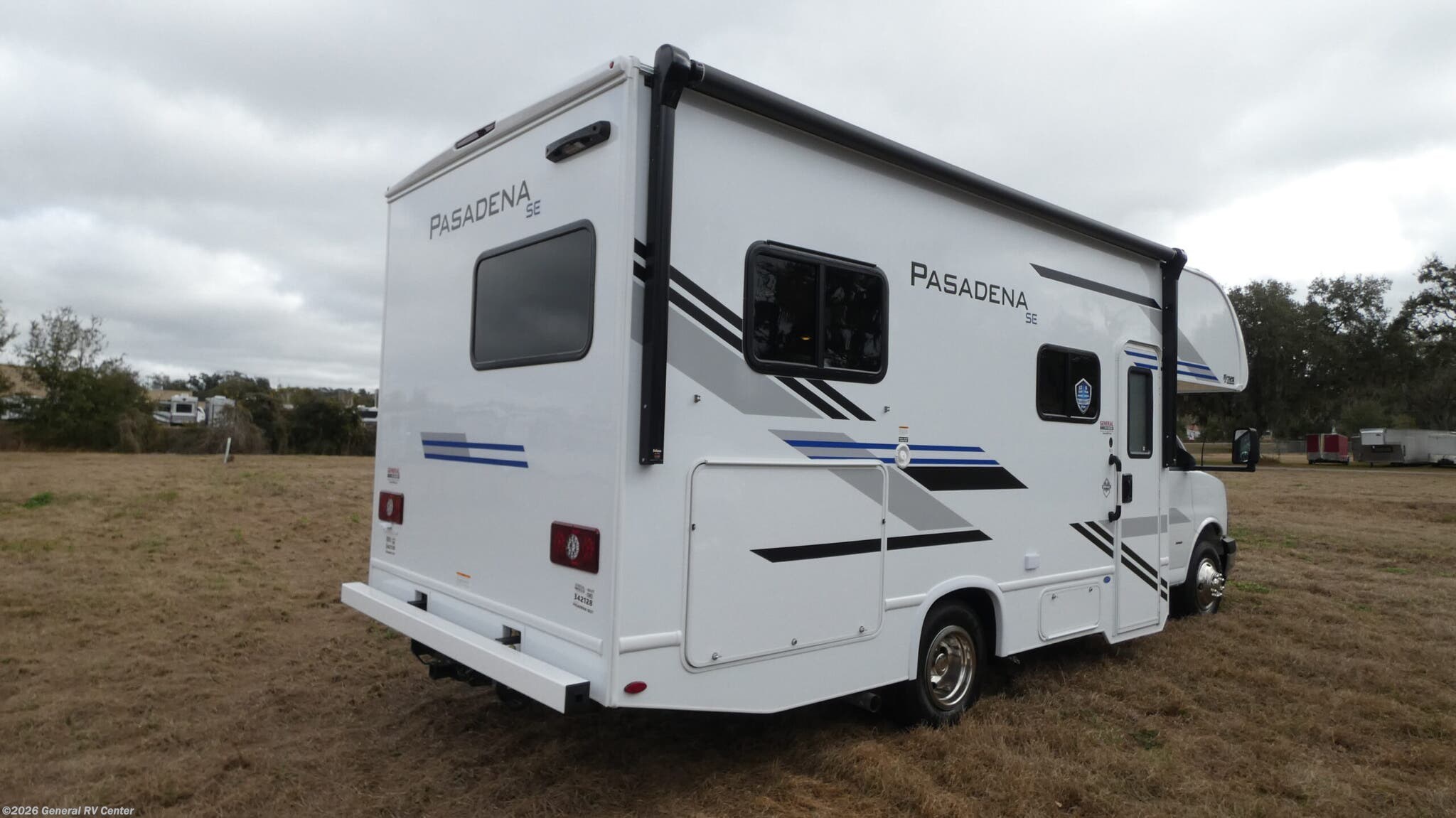 Thor Motor Coach Pasadena SE Class C gas motorhome SE21 Chevy highlights: Full-Size Bed Closet Dream Dinette Cab-Over Bunk It won't be hard to find comfort in this coach for five! You can freshen up in the rear corner full bath once you've set up camp, then make lunch on the two burner gas cooktop or convection microwave with an air fryer. There is also a 12V refrigerator for cold items and a flip-up countertop for more space. Whether you dine at the Dream Dinette or take your plate outdoors under the 15' power awning, you're sure to have a great time in this motorhome. The rear corner full-size bed will provide a comfy place to rest your head at night, while your guests take the dinette and cab-over bunk! With any Pasadena SE Class C gas motorhome by Thor Motor Coach, you will find convenient amenities, a modern interior, and a reliable Chevy chassis. There is a one-piece fiberglass front cap, and premium one-piece roofing for added strength. Residential vinyl flooring will be easy to keep clean, and you'll love the LED lighting, pressed laminate countertops throughout, and full-extensions ball-bearing drawer guides. These motorhomes also include a generator and a 30-amp shoreline power cord to keep you going, along with a tankless water heater to ensure your comfort!