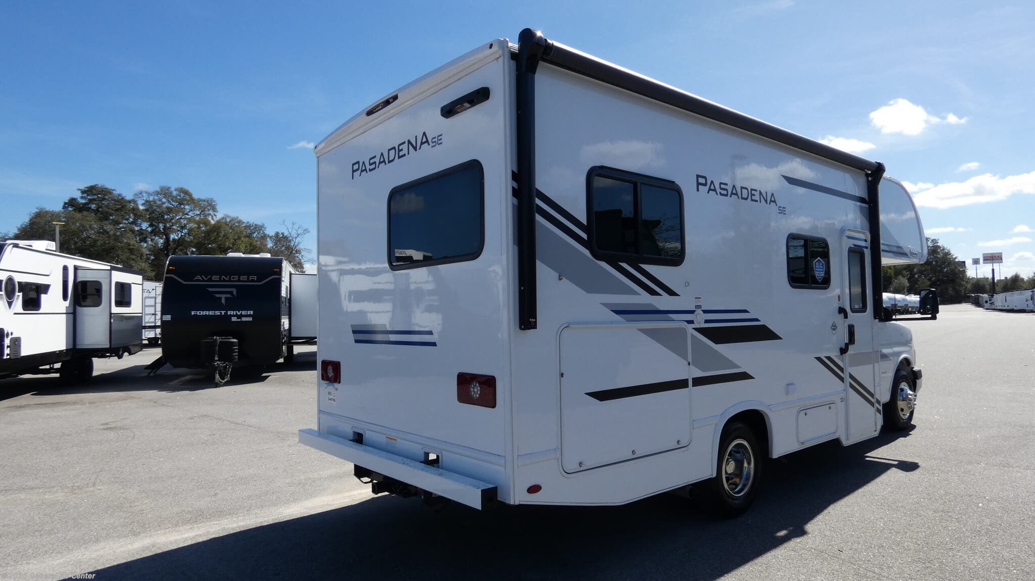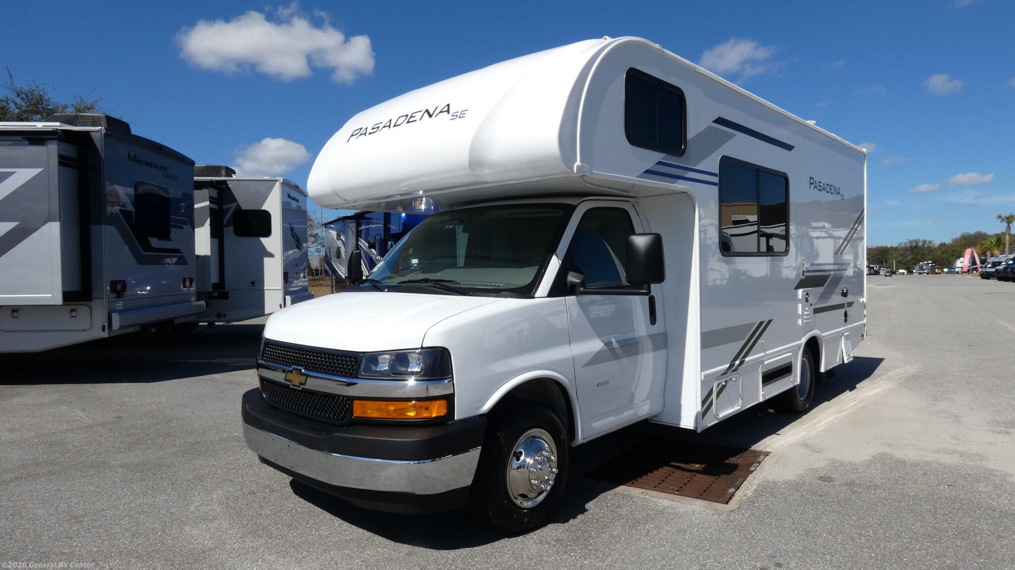 **Thor Motor Coach Pasadena SE Class C gas motorhome SE21 highlights: - Full-Size Bed - Closet - Dream Dinette - Cab-Over Bunk It won't be hard to find comfort in this coach for five! You can freshen up in the rear corner full bath once you've set up camp, then make lunch on the two burner gas cooktop or convection microwave with an air fryer. There is also a 12V refrigerator for cold items and a flip-up countertop for more space. Whether you dine at the Dream Dinette or take your plate outdoors under the 15' power awning, you're sure to have a great time in this motorhome. The rear corner full-size bed will provide a comfy place to rest your head at night, while your guests take the dinette and cab-over bunk! With any Pasadena SE Class C gas motorhome by Thor Motor Coach, you will find convenient amenities, a modern interior, and a reliable Ford E-Series chassis, with an optional Chevy chassis on select models to power your adventures. There is a one-piece fiberglass front cap, and premium one-piece roofing for added strength. Residential vinyl flooring will be easy to keep clean, and you'll love the LED lighting, pressed laminate countertops throughout, and full-extensions ball-bearing drawer guides. These motorhomes also include a 4.0 kW gas generator and a 30-amp shoreline power cord to keep you going, along with a tankless water heater to ensure your comfort!