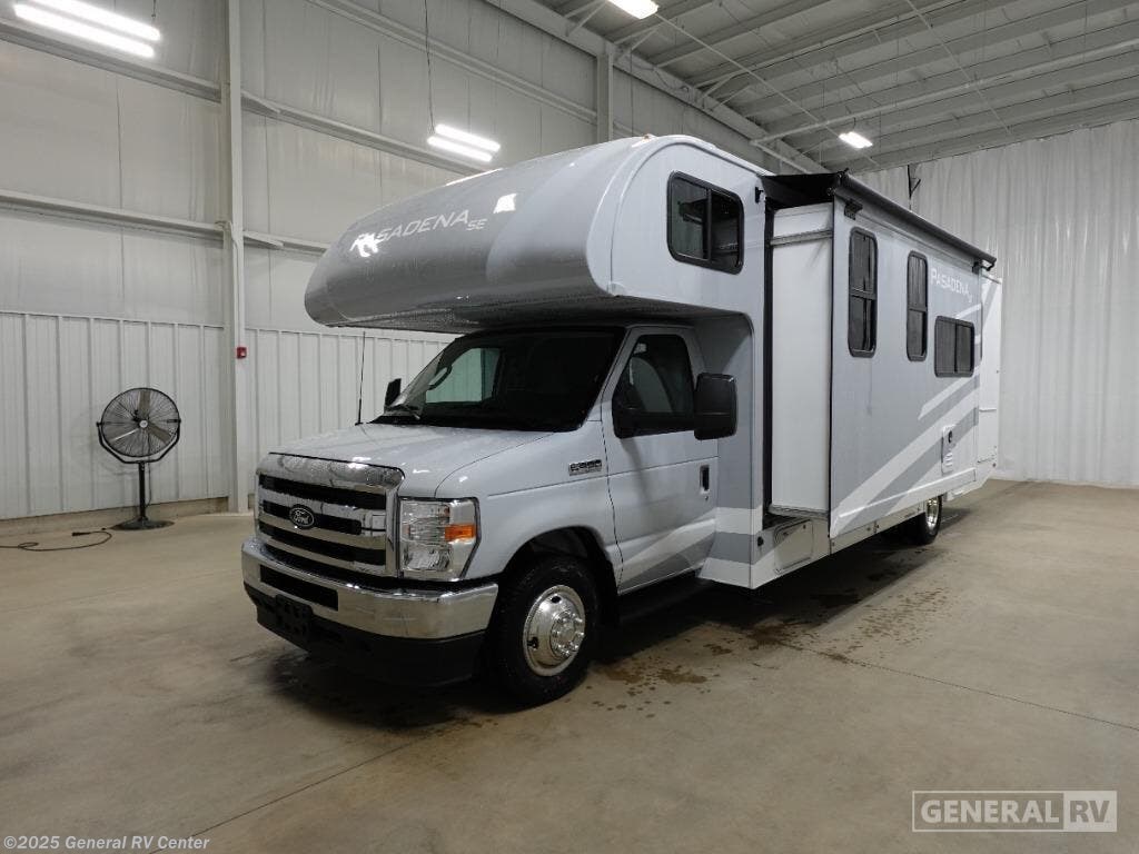 Thor Motor Coach Pasadena SE Class C gas motorhome SE28 highlights: Theater Seating Cab-Over Bunk Rear Private Bedroom Exterior Kitchen Plan to stay awhile in this spacious coach for five. Once you park for the day, you can start lunch on the three burner cooktop or in the microwave oven. There is a Dream dinette where you can dine at plus 68" theater seating to relax after your meal. A full bath includes a 24" x 36" shower to freshen up each day, and you'll feel right at home in the rear private bedroom. Here, you'll find an RV queen bed, dual bedside closets, and TV prep if you want the option to watch movies in bed. With any Pasadena SE Class C gas motorhome by Thor Motor Coach, you will find convenient amenities, a modern interior, and a reliable Ford E-Series chassis, to power your adventures. There is a one-piece fiberglass front cap, and premium one-piece roofing for added strength. Residential vinyl flooring will be easy to keep clean, and you'll love the LED lighting, pressed laminate countertops throughout, and full-extensions ball-bearing drawer guides. These motorhomes also include a generator and a 30-amp shoreline power cord to keep you going, along with a tankless water heater to ensure your comfort!
