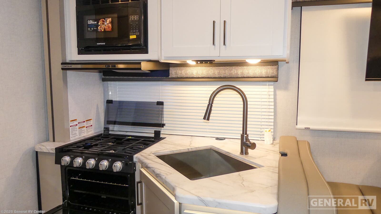 Perfect for visiting State and National Parks! Once you park for the day, you can start lunch on the three burner cooktop or in the microwave oven. There is a Dream dinette where you can dine, plus 68" theater seating to relax after your meal. A full bath includes a 24" x 36" shower to freshen up each day, and you'll feel right at home in the rear private bedroom. Here, you'll find an RV queen bed, dual bedside closets, and prepped for the TV of your choosing. With any Pasadena SE Class C gas motorhome by Thor Motor Coach, you will find convenient amenities, a modern interior, and a reliable Ford E-Series chassis to power your adventures. There is a one-piece fiberglass front cap, and premium one-piece roofing for added strength. Residential vinyl flooring will be easy to keep clean, and you'll love the LED lighting, pressed laminate countertops throughout, and full-extensions ball-bearing drawer guides. These motorhomes also include a generator and a 30-amp shoreline power cord to keep you powered up along with a tankless water heater to ensure your comfort!