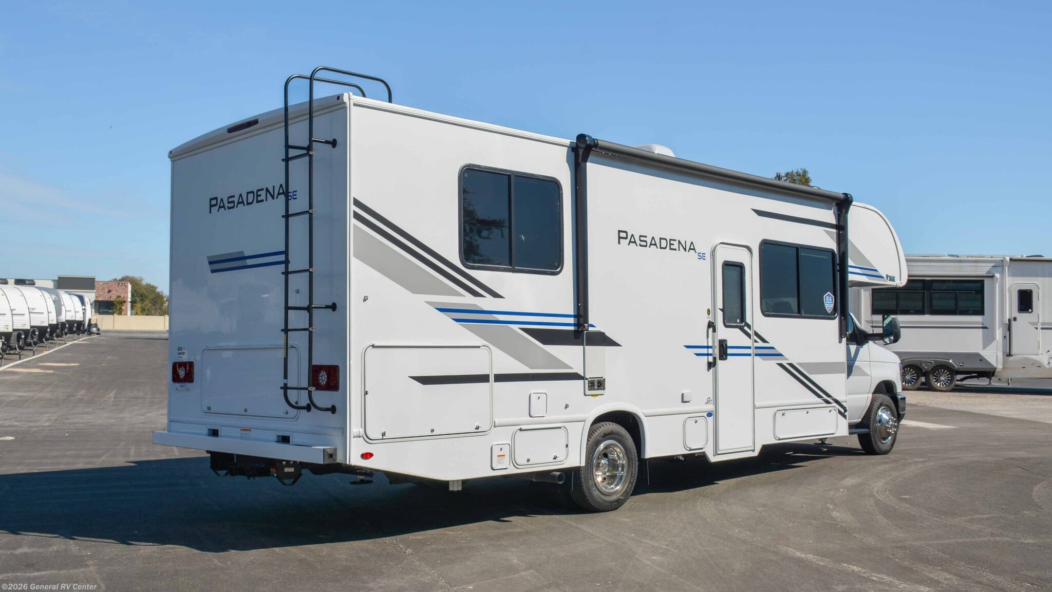 **Thor Motor Coach Pasadena SE Class C gas motorhome SE28 highlights:** * Theater Seating * Cab-Over Bunk * Rear Private Bedroom * Exterior Kitchen Plan to stay awhile in this spacious coach for five. Once you park for the day, you can start lunch on the three burner cooktop or in the microwave oven. There is a Dream dinette where you can dine at plus 68" theater seating to relax after your meal. A full bath includes a 24" x 36" shower to freshen up each day, and you'll feel right at home in the rear private bedroom. Here, you'll find an RV queen bed, dual bedside closets, and TV prep if you want the option to watch movies in bed. With any Pasadena SE Class C gas motorhome by Thor Motor Coach, you will find convenient amenities, a modern interior, and a reliable Ford E-Series chassis, to power your adventures. There is a one-piece fiberglass front cap, and premium one-piece roofing for added strength. Residential vinyl flooring will be easy to keep clean, and you'll love the LED lighting, pressed laminate countertops throughout, and full-extensions ball-bearing drawer guides. These motorhomes also include a generator and a 30-amp shoreline power cord to keep you going, along with a tankless water heater to ensure your comfort!