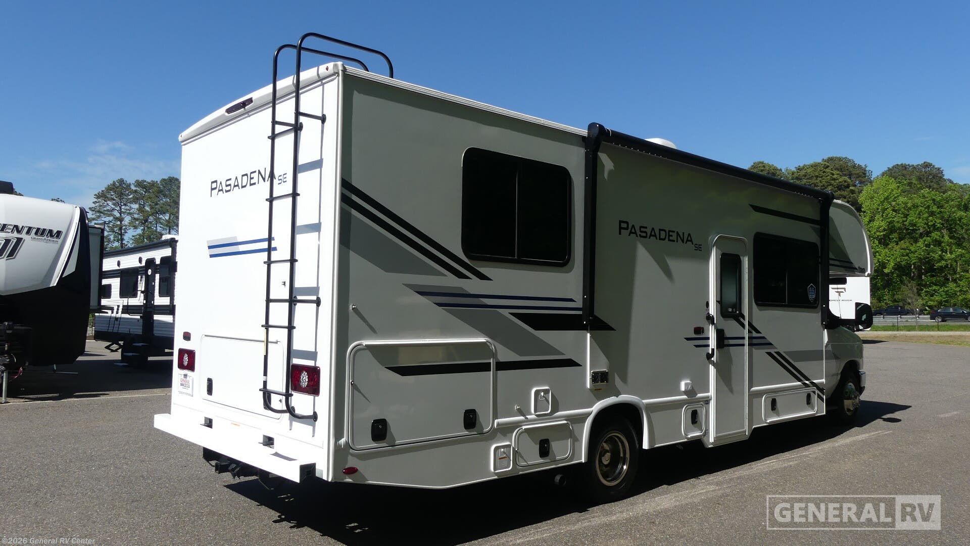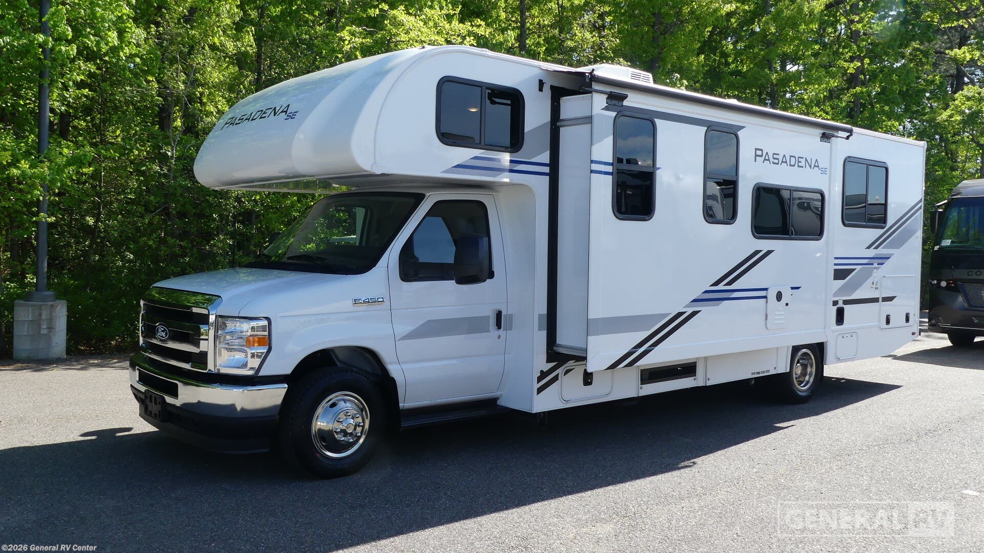 **Thor Motor Coach Pasadena SE Class C gas motorhome SE28 highlights:** * Theater Seating * Cab-Over Bunk * Rear Private Bedroom * Exterior Kitchen Plan to stay awhile in this spacious coach for five. Once you park for the day, you can start lunch on the three burner cooktop or in the microwave oven. There is a Dream dinette where you can dine at plus 68" theater seating to relax after your meal. A full bath includes a 24" x 36" shower to freshen up each day, and you'll feel right at home in the rear private bedroom. Here, you'll find an RV queen bed, dual bedside closets, and TV prep if you want the option to watch movies in bed. With any Pasadena SE Class C gas motorhome by Thor Motor Coach, you will find convenient amenities, a modern interior, and a reliable Ford E-Series chassis, to power your adventures. There is a one-piece fiberglass front cap, and premium one-piece roofing for added strength. Residential vinyl flooring will be easy to keep clean, and you'll love the LED lighting, pressed laminate countertops throughout, and full-extensions ball-bearing drawer guides. These motorhomes also include a generator and a 30-amp shoreline power cord to keep you going, along with a tankless water heater to ensure your comfort!