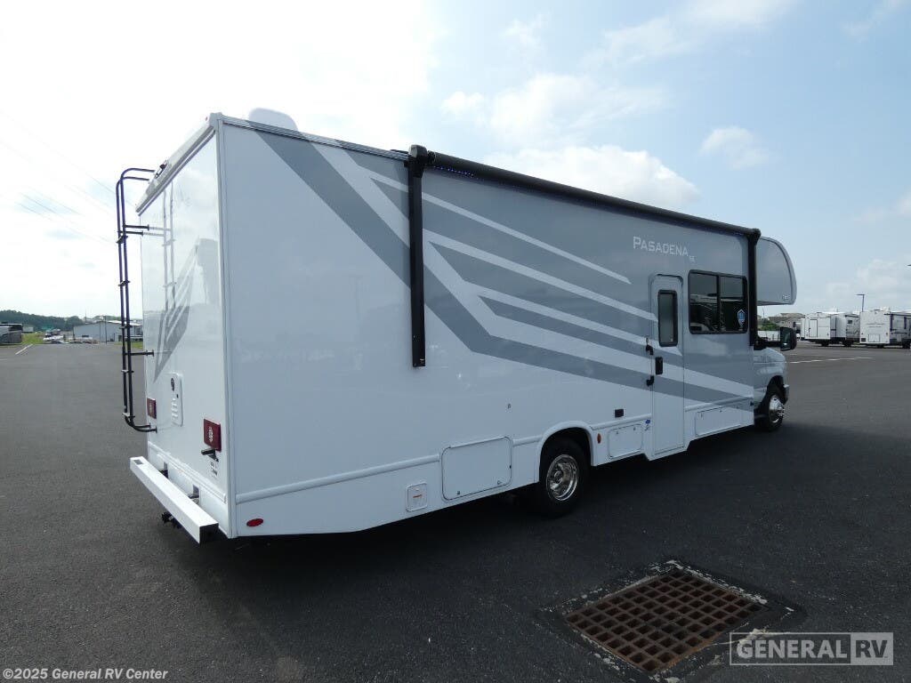 Thor Motor Coach Pasadena SE Class C gas motorhome SE29 highlights: - King Bed Slide - Cab-Over Bunk - Full Bath - Flip-Up Countertop Pack your bags and head across the country in this double slide out coach. The Dream dinette and theater seating provide a place to dine, relax, and even let extra guests sleep over who don't claim the cab-over bunk. A three burner gas cooktop and microwave oven will let you create meals each day, and a 12V refrigerator will keep your drinks cold! The rear of this coach is shared with the full bath and semi-private bedroom with a privacy curtain. You're sure to get a great night's rest on the king bed, and there is a large bedroom closet to keep your clothes wrinkle-free. There is also a second closet with washer and dryer prep if you choose to add these appliances. With any Pasadena SE Class C gas motorhome by Thor Motor Coach, you will find convenient amenities, a modern interior, and a reliable Ford E-Series chassis, with an optional Chevy chassis on select models to power your adventures. There is a one-piece fiberglass front cap, and premium one-piece roofing for added strength. Residential vinyl flooring will be easy to keep clean, and you'll love the LED lighting, pressed laminate countertops throughout, and full-extensions ball-bearing drawer guides. These motorhomes also include a 4.0 kW gas generator and a 30-amp shoreline power cord to keep you going, along with a tankless water heater to ensure your comfort!