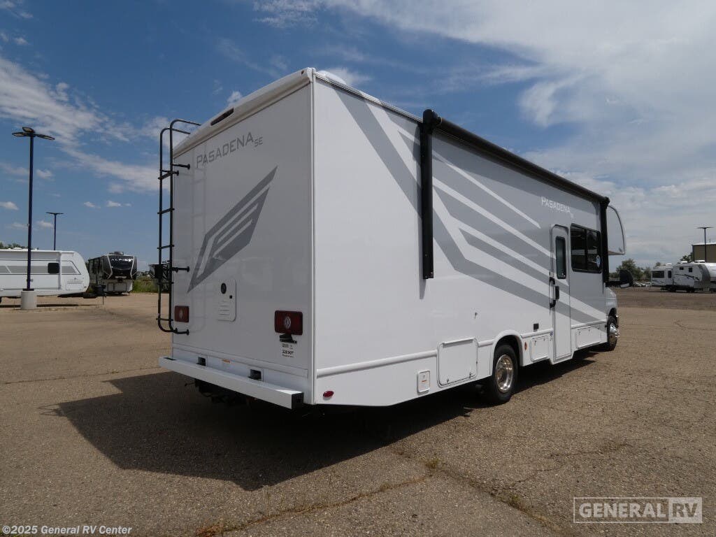 Thor Motor Coach Pasadena SE Class C gas motorhome SE29 highlights: - King Bed Slide - Cab-Over Bunk - Full Bath - Flip-Up Countertop Pack your bags and head across the country in this double slide out coach. The Dream dinette and theater seating provide a place to dine, relax, and even let extra guests sleep over who don't claim the cab-over bunk. A three burner gas cooktop and microwave oven will let you create meals each day, and a 12V refrigerator will keep your drinks cold! The rear of this coach is shared with the full bath and semi-private bedroom with a privacy curtain. You're sure to get a great night's rest on the king bed, and there is a large bedroom closet to keep your clothes wrinkle-free. There is also a second closet with washer and dryer prep if you choose to add these appliances. With any Pasadena SE Class C gas motorhome by Thor Motor Coach, you will find convenient amenities, a modern interior, and a reliable Ford E-Series chassis, with an optional Chevy chassis on select models to power your adventures. There is a one-piece fiberglass front cap, and premium one-piece roofing for added strength. Residential vinyl flooring will be easy to keep clean, and you'll love the LED lighting, pressed laminate countertops throughout, and full-extensions ball-bearing drawer guides. These motorhomes also include a 4.0 kW gas generator and a 30-amp shoreline power cord to keep you going, along with a tankless water heater to ensure your comfort!