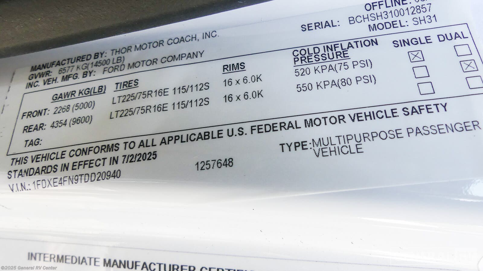 Request More Info on this 2026 Thor Motor Coach Pasadena SH31 Offered for sale by General RV Center